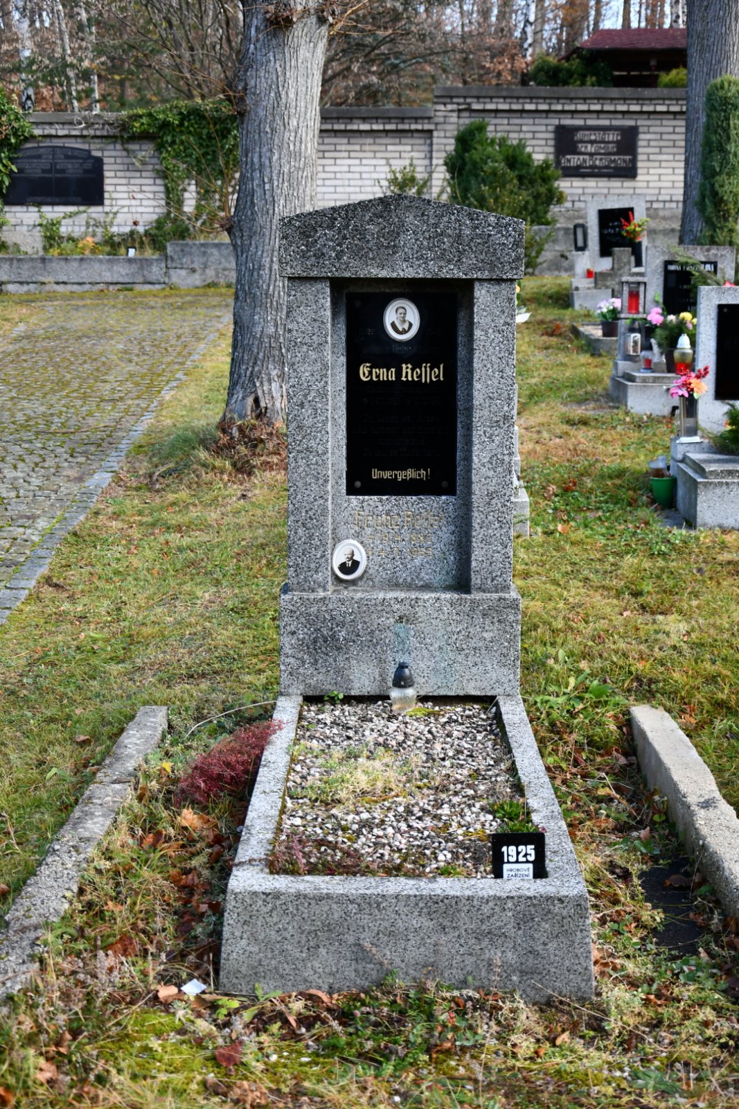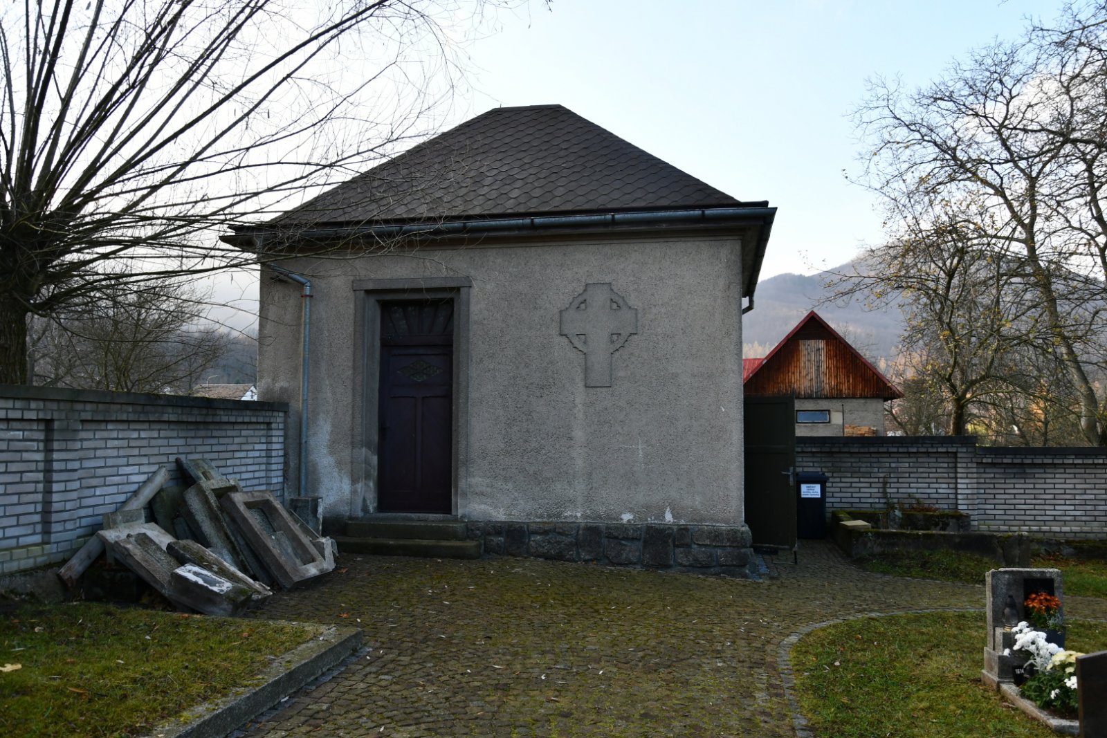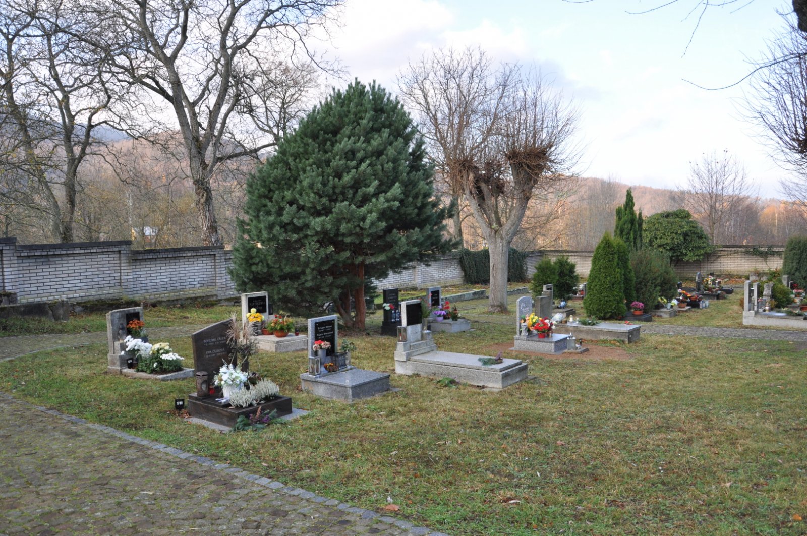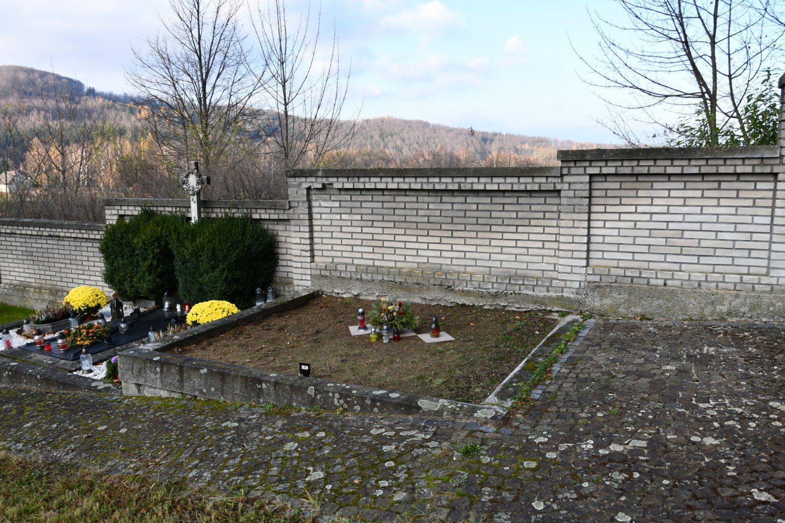 - Obnovena vč. náhrobků a desek na/u zdi