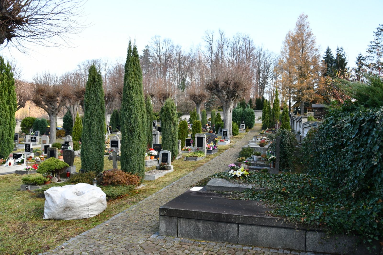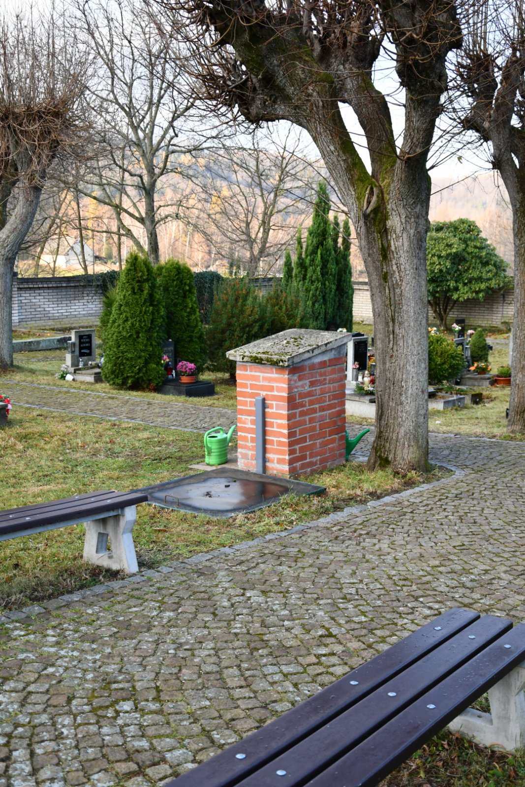 - Vyčištěná plocha hřbitova