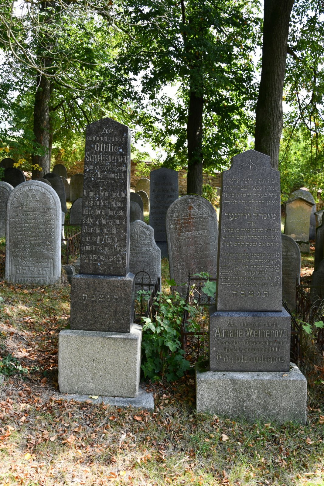 Na nový židovský hřbitov byly přestěhovány náhrobky včetně nejstaršího čitelného z roku 1684 ze starého židovského hřbitova v centru města nedaleko synagogy v ulici Prácheňská. Starý židovský hřbitov byl založen 1. polovině 17. století a fungoval do poloviny 20. století (údajně do roku 1936), v 60. letech 20. století už byla plocha hřbitova prázdná.