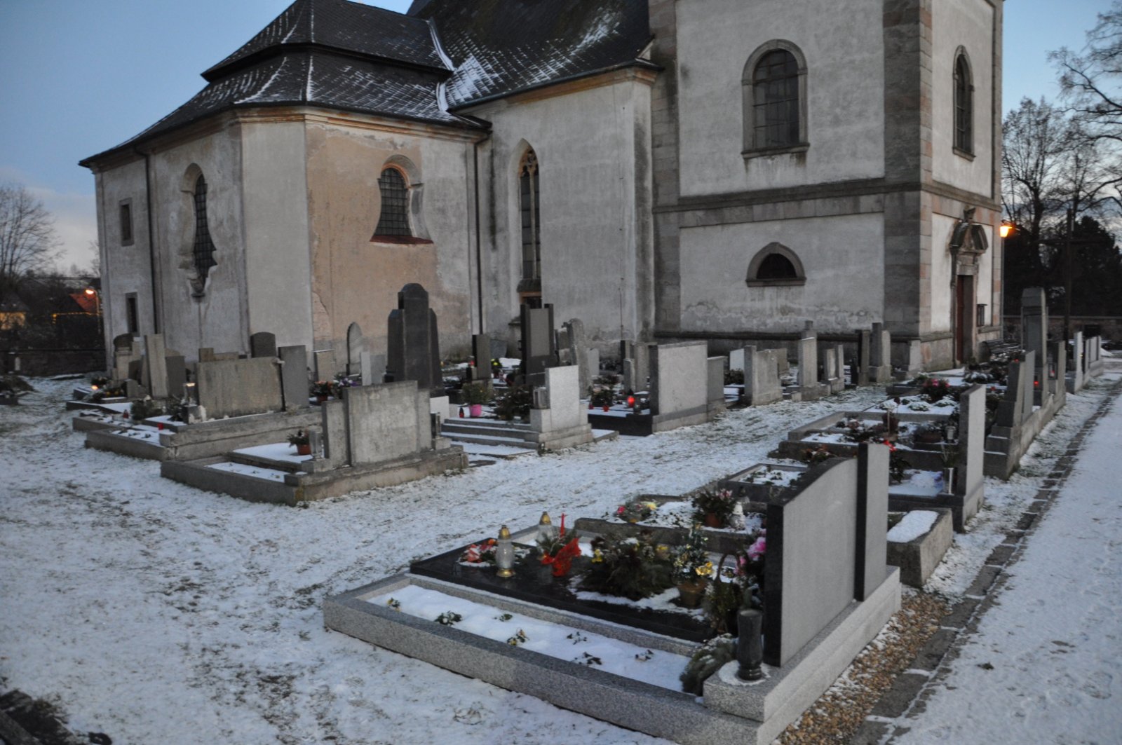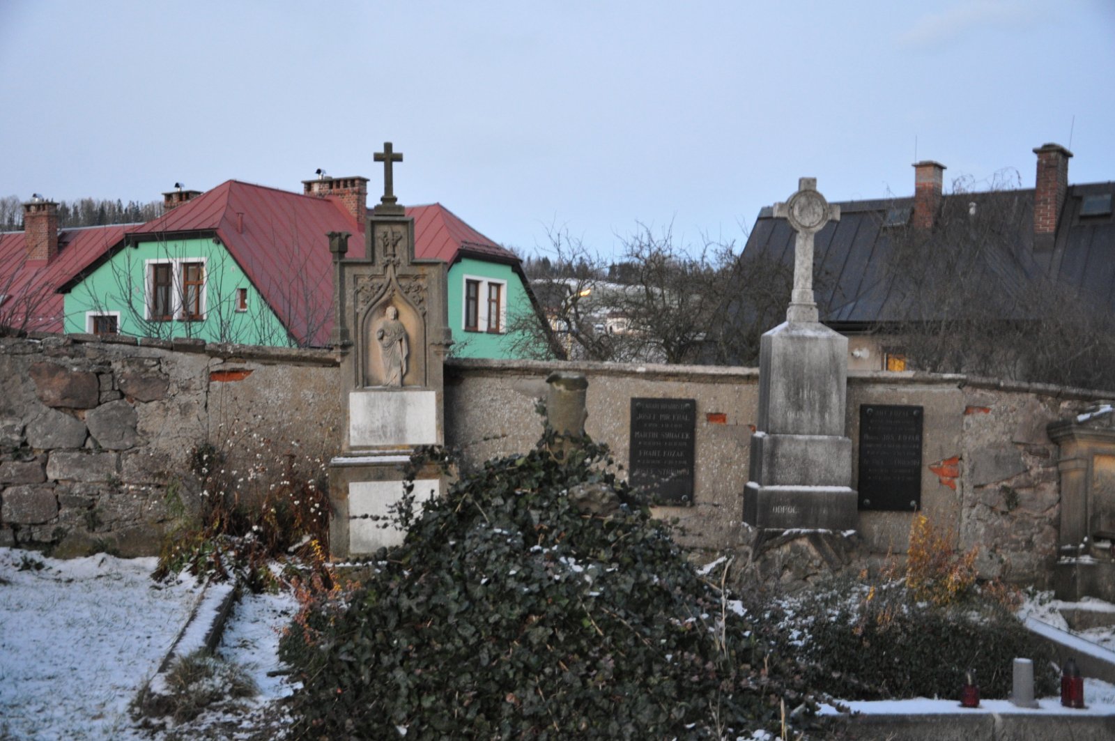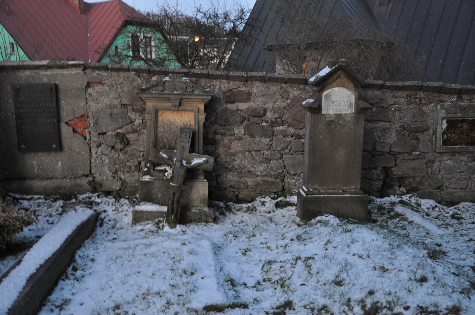 - Obnovena vč. náhrobků a desek na/u zdi