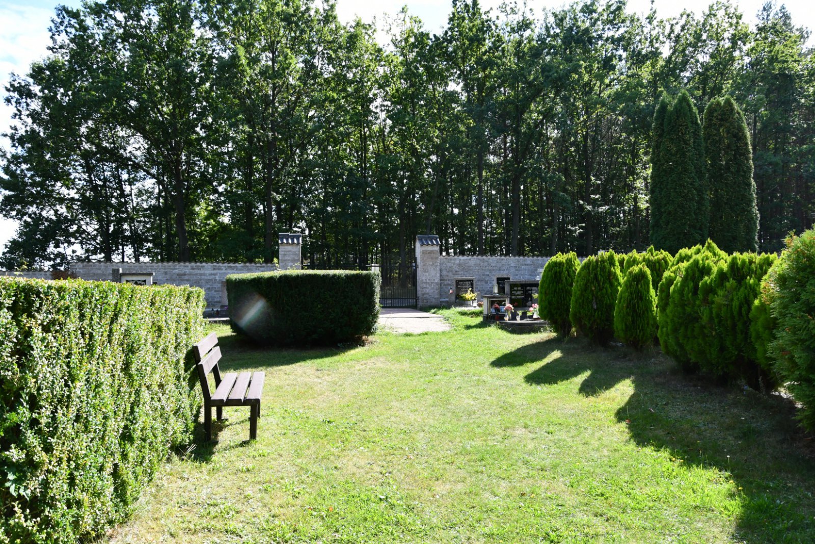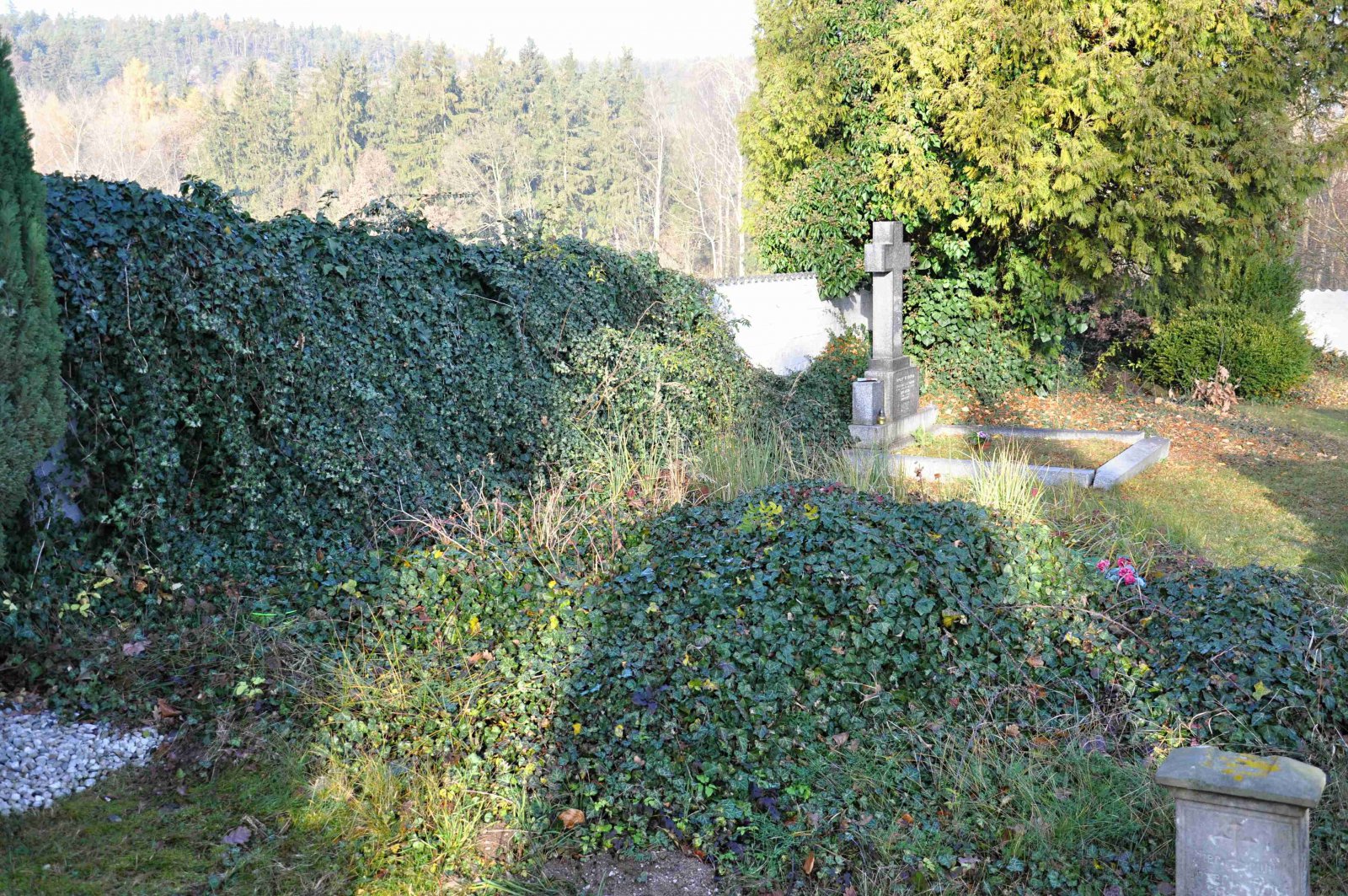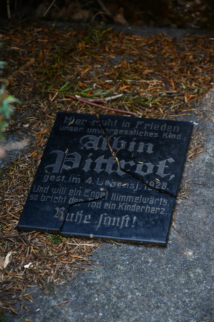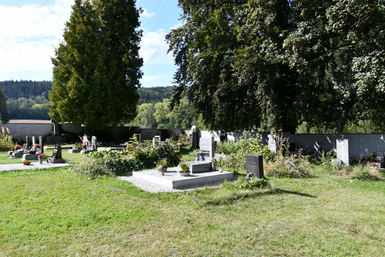 Udržovaný a fungující hřbitov se nachází za obcí směrem na Chyši. Německé náhrobky nejsou likvidovány.