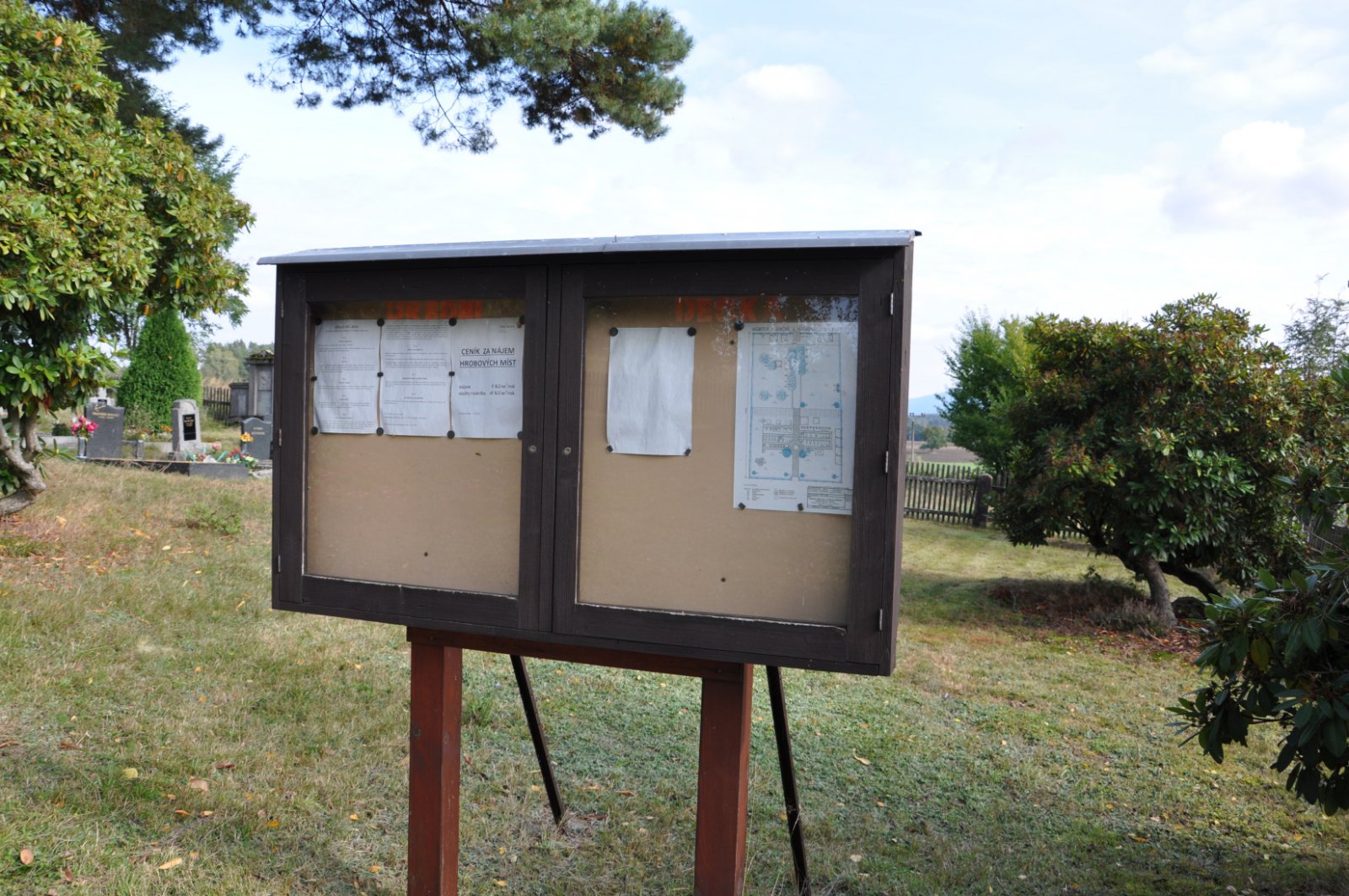 - Kontakt na správce hřbitova na místě
