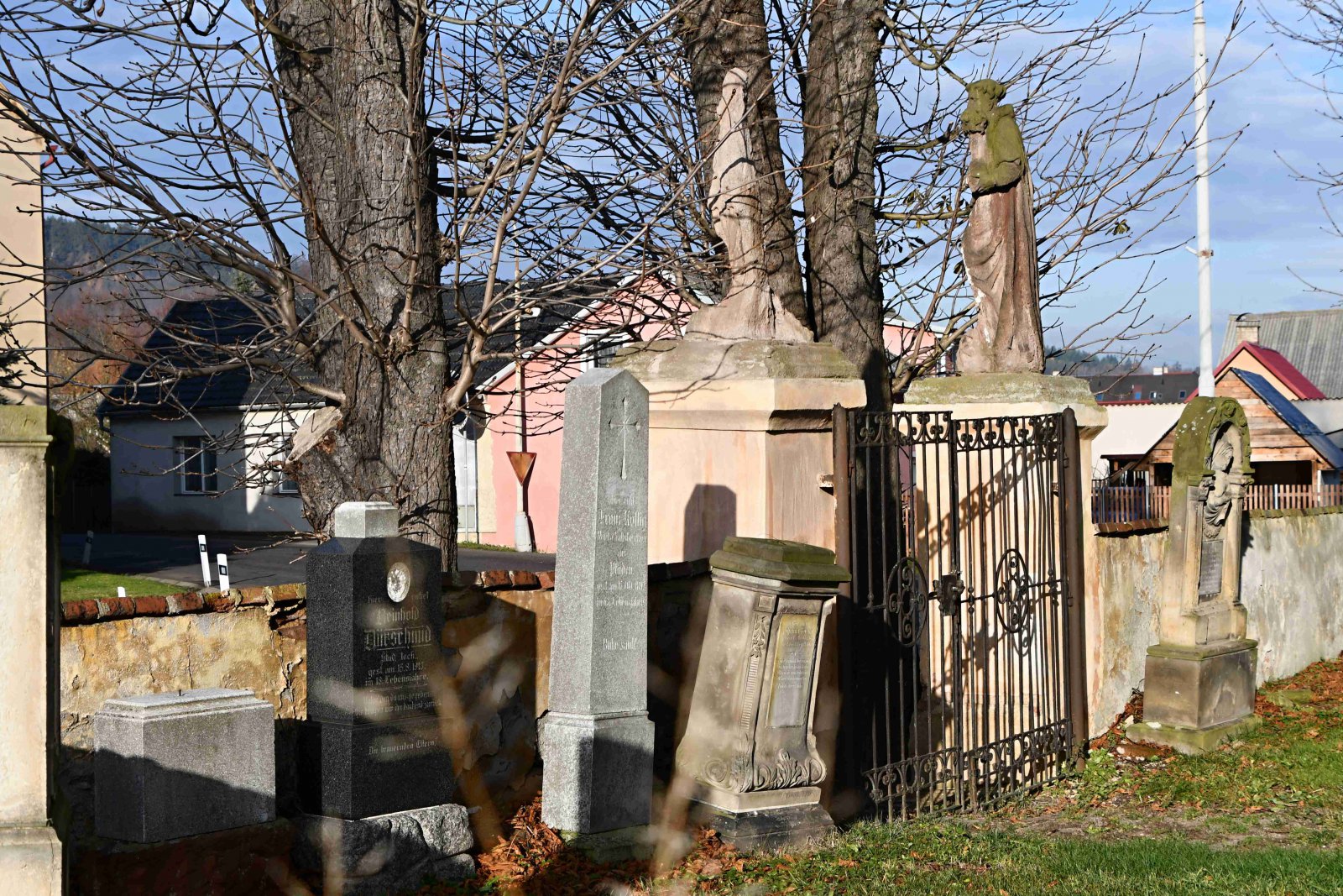 Bývalý hřbitov s ohradní zdí obklopuje barokní kostel sv. Michaela Archanděla. V bráně se nacházejí pilířky, na kterých stojí sochy sv. Jana Nepomuckého, která je však velmi poničená, a sv. Antonína, která je rovněž součástí kostelního areálu. Vstup na hřbitov je uzamčený. Náhrobky nejsou udržovány.