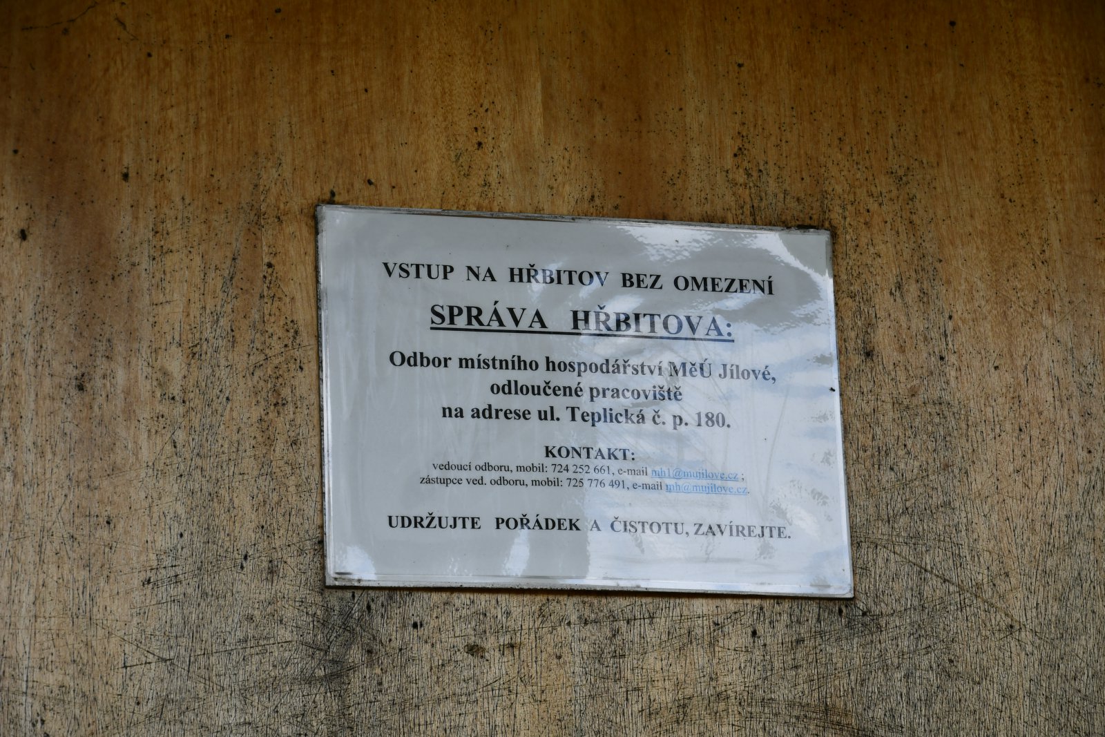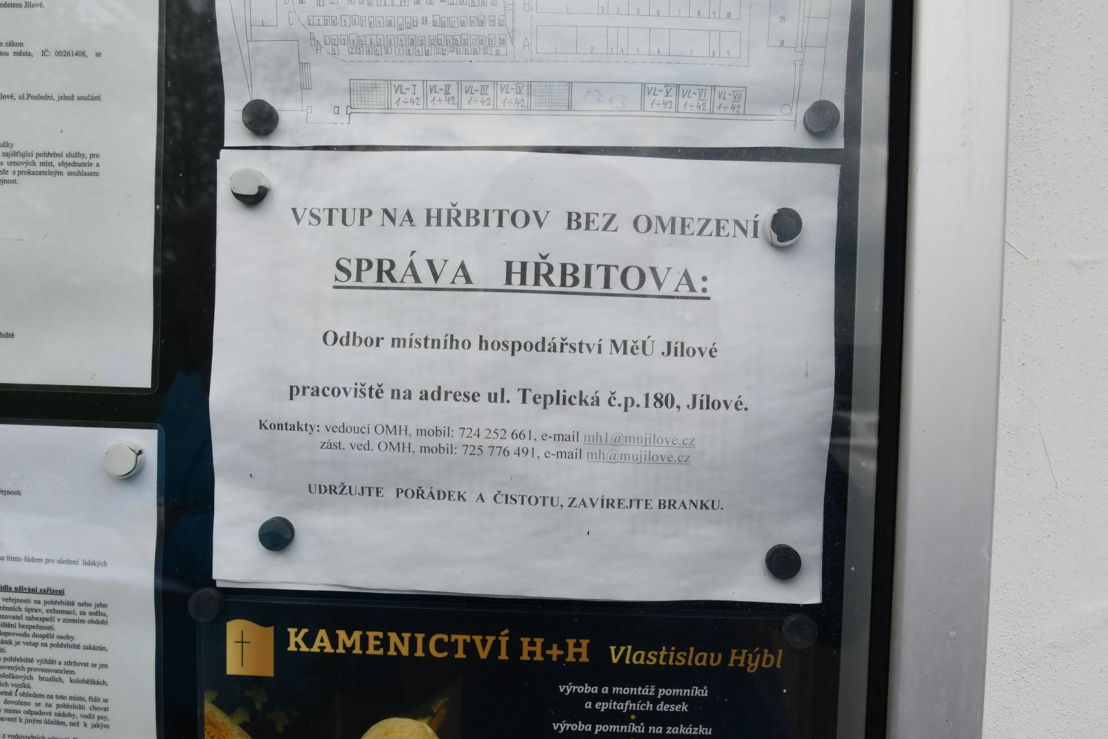 - Kontakt na správce hřbitova na místě