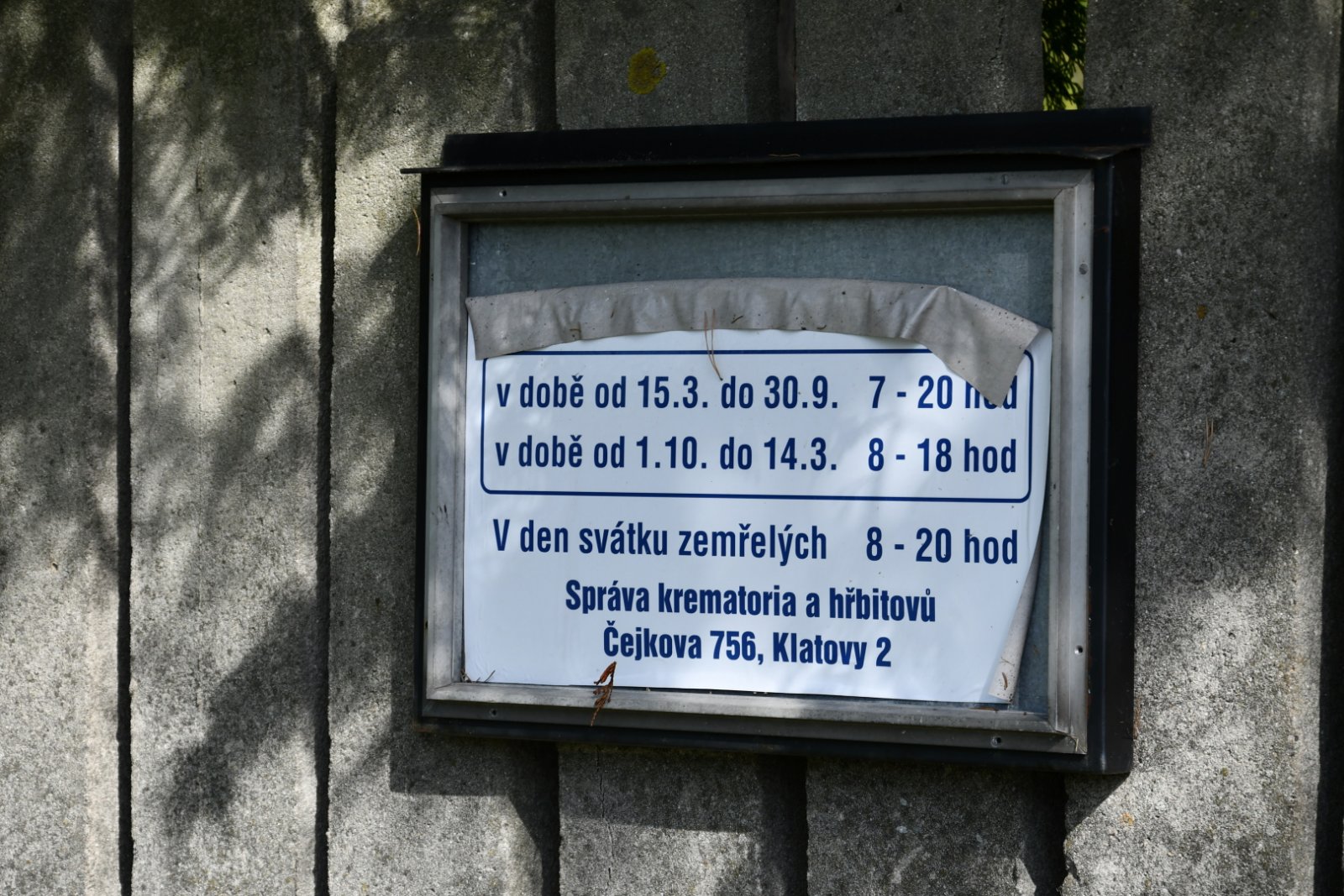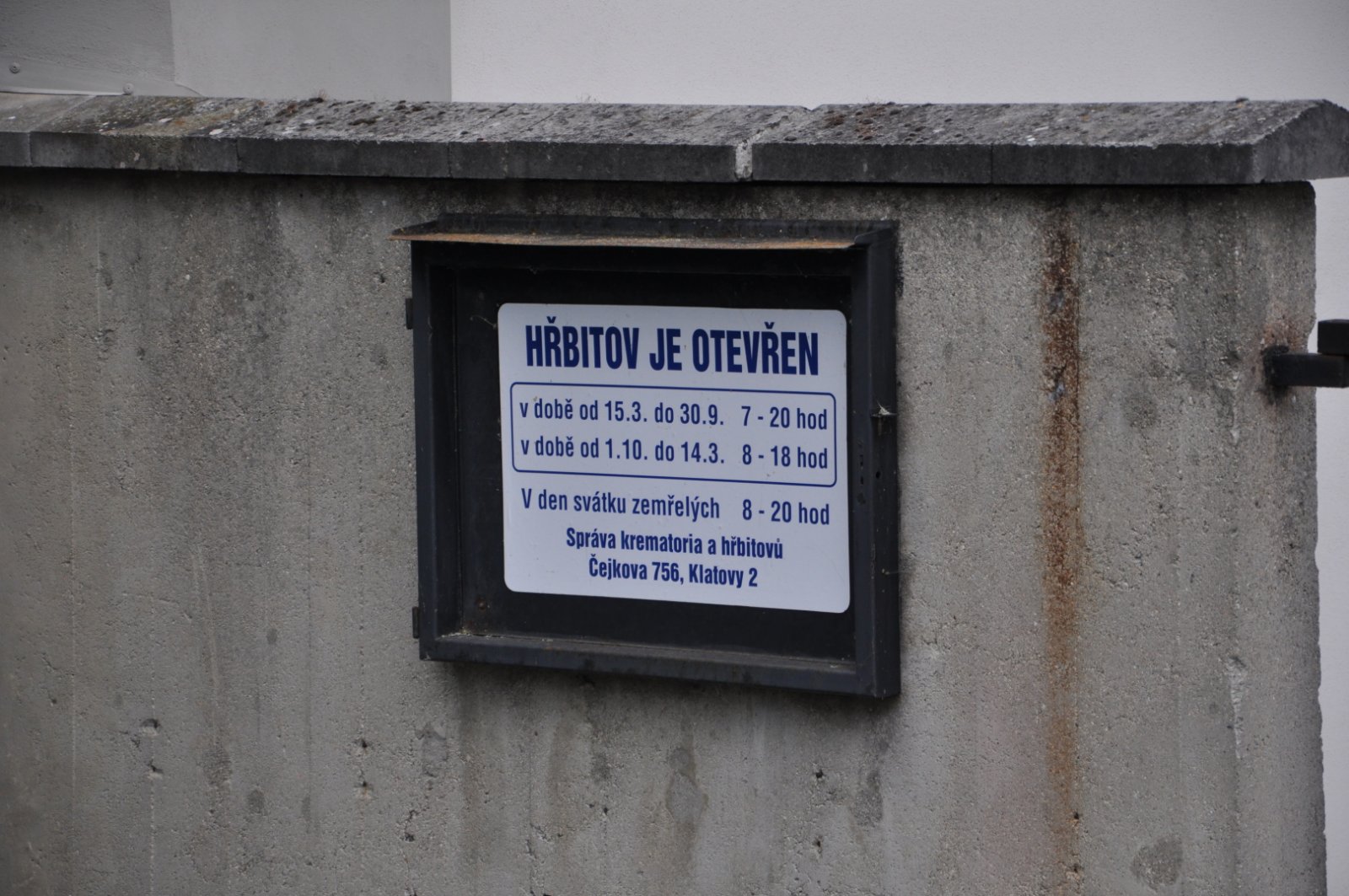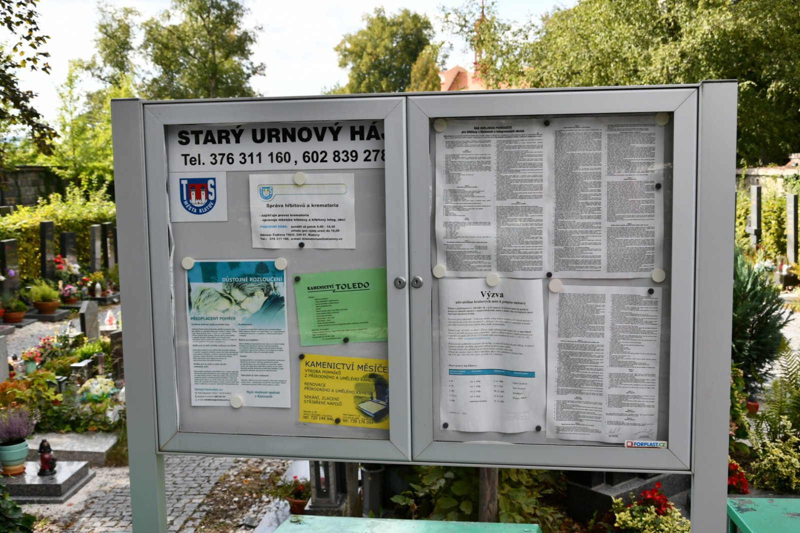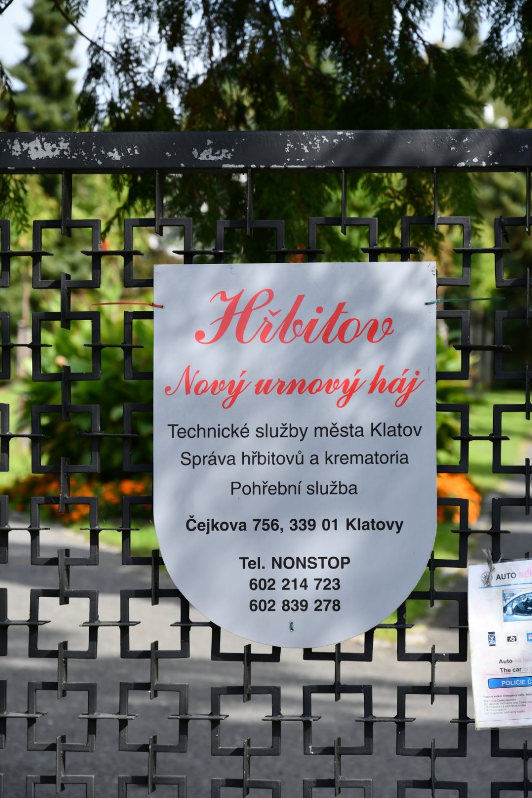 - Otevírací doba hřbitova vyvěšena