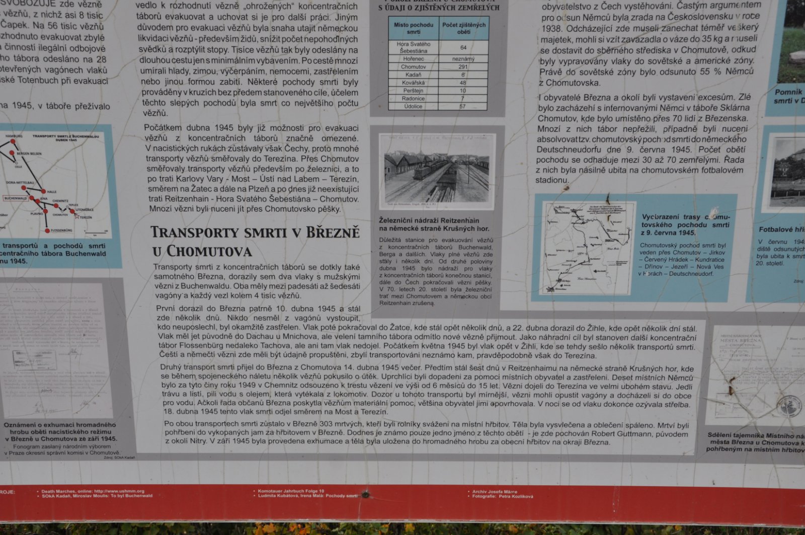 V dubnu 1945 se ve stanici na dobu jednoho a dvou týdnů zastavily dva vlaky s transportem vězňů z koncentračních táborů. Oba vlaky měly 55 vagónů, z nichž v každém bylo uzavřeno čtyřicet až padesát vězňů. Podle obecní kroniky jich během pobytu ve stanici 306 zemřelo. Mrtví byli pohřbíváni do společných hrobů, které byly 19. září 1945 exhumovány a anonymní ostatky pohřbeny do samostatných hrobů.