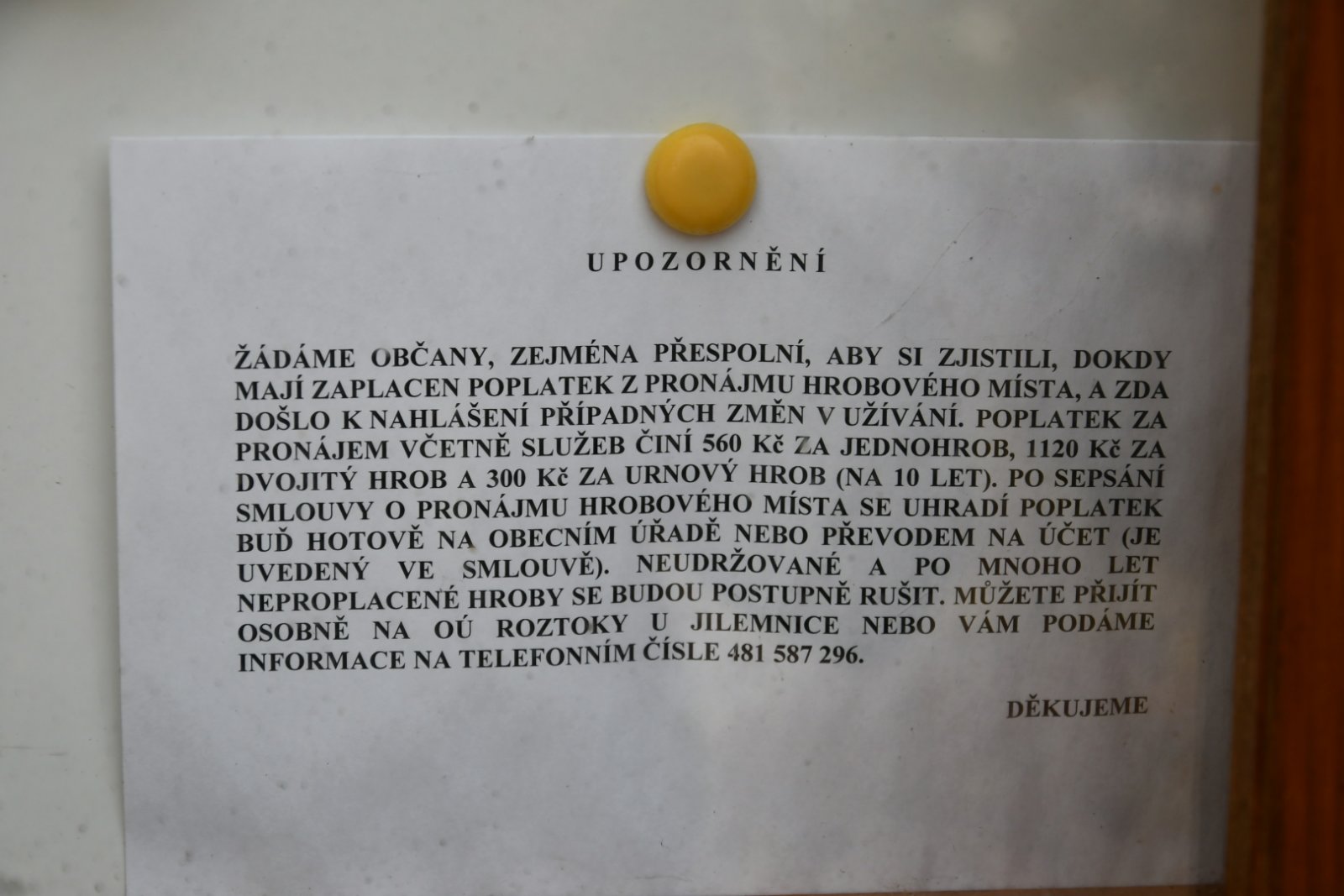 - Kontakt na správce hřbitova na místě
