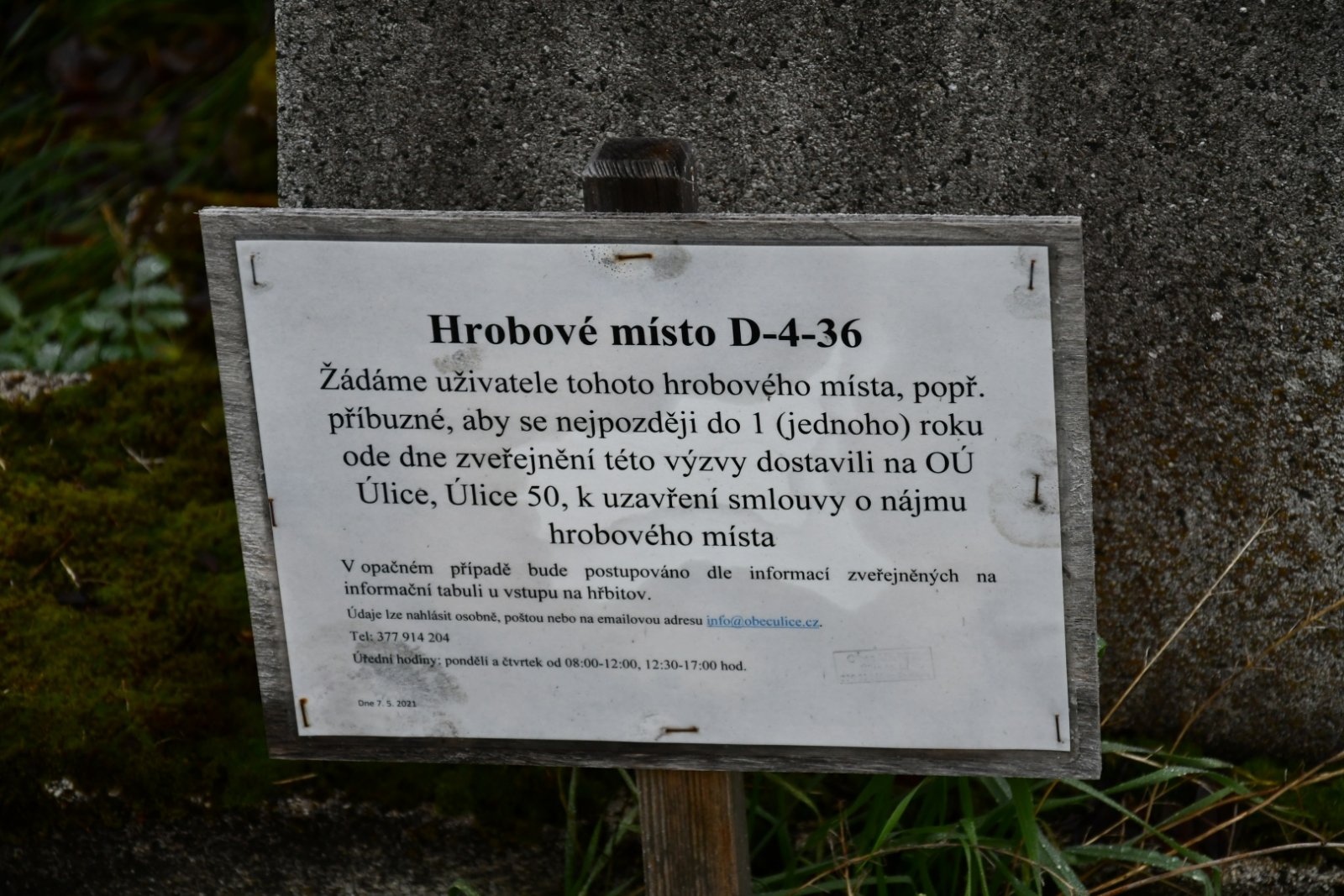• Kontakt na správce hřbitova na místě