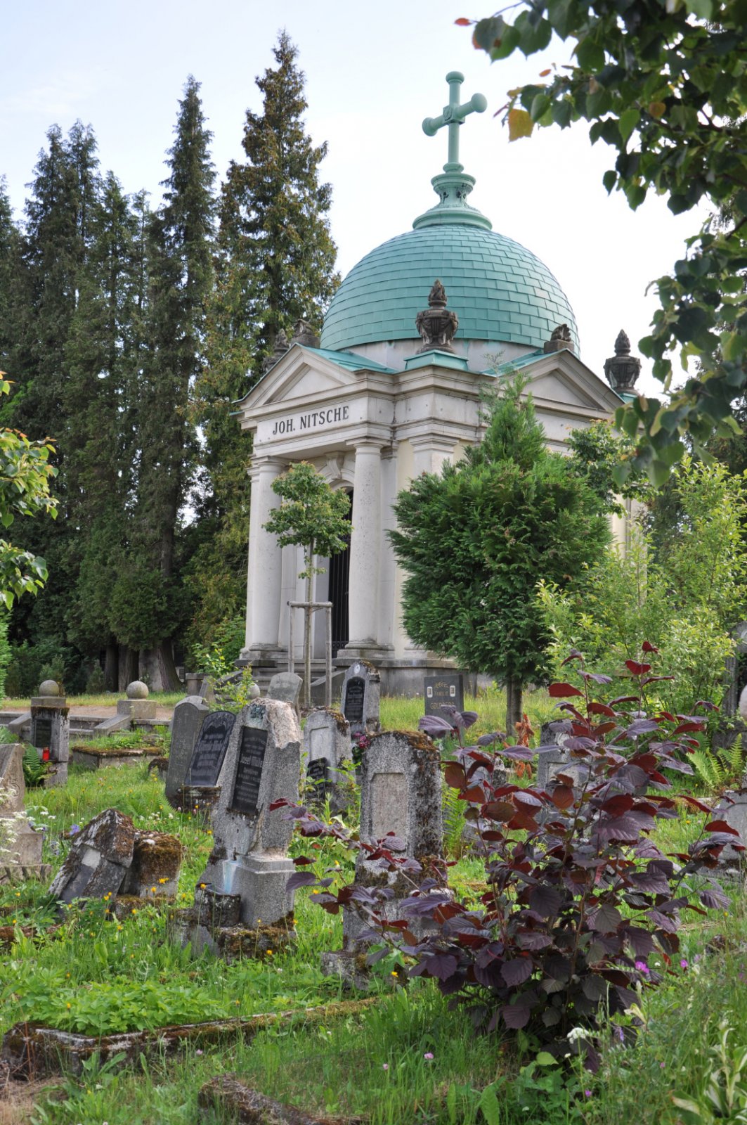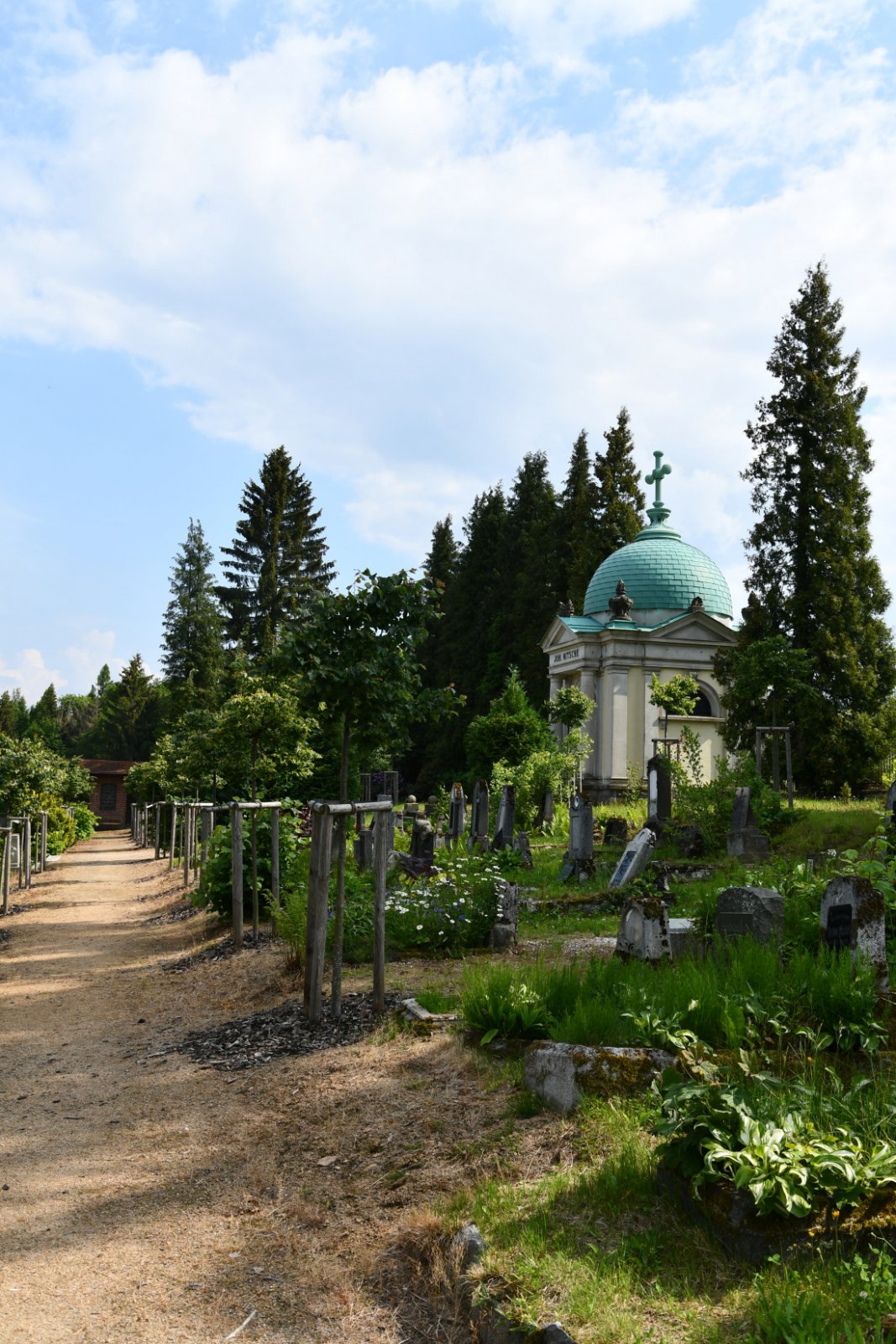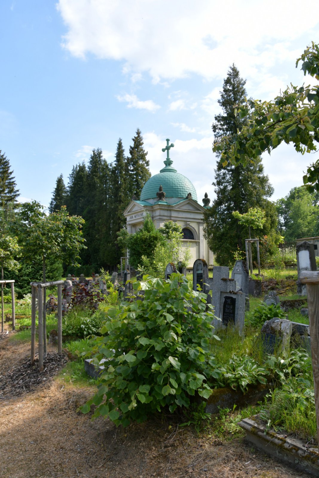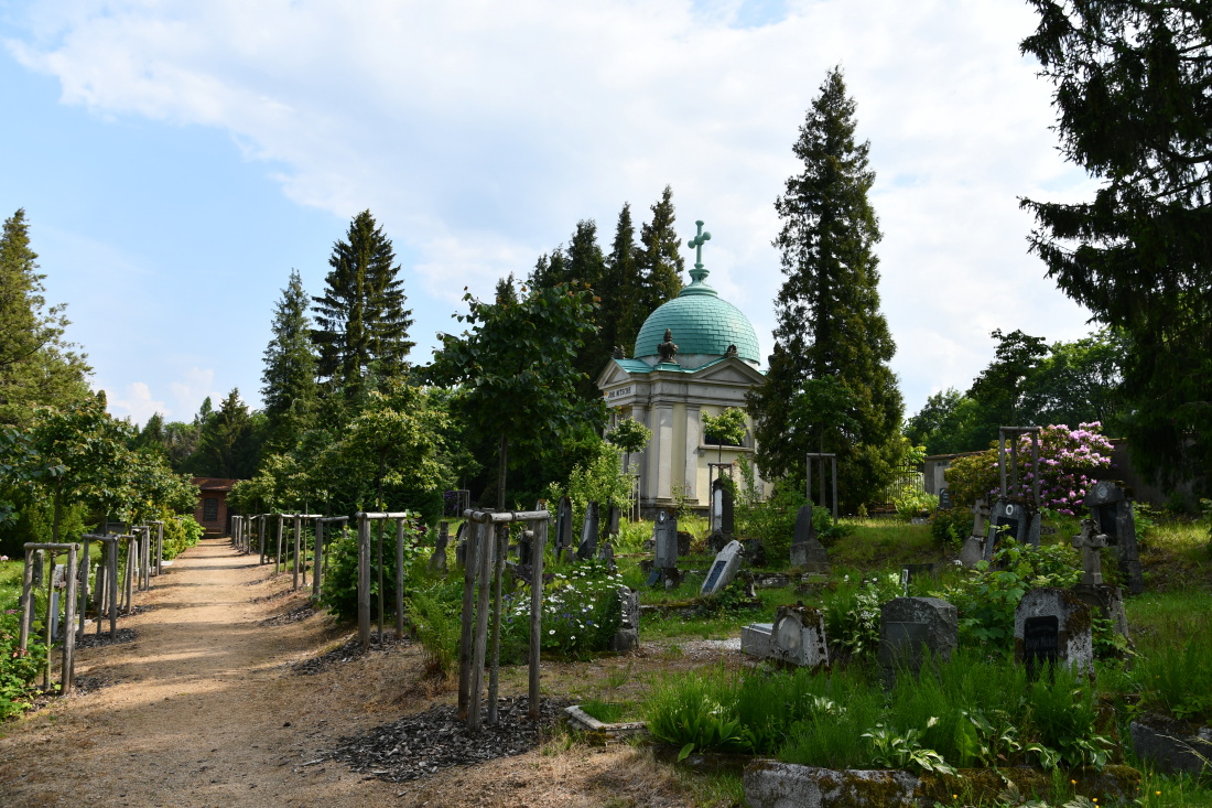 Areál hřbitova je vymezen ohradní zdí. Plocha hřbitova je udržována. Dominantní hrobka rodiny továrníka Johanna Nietsche.