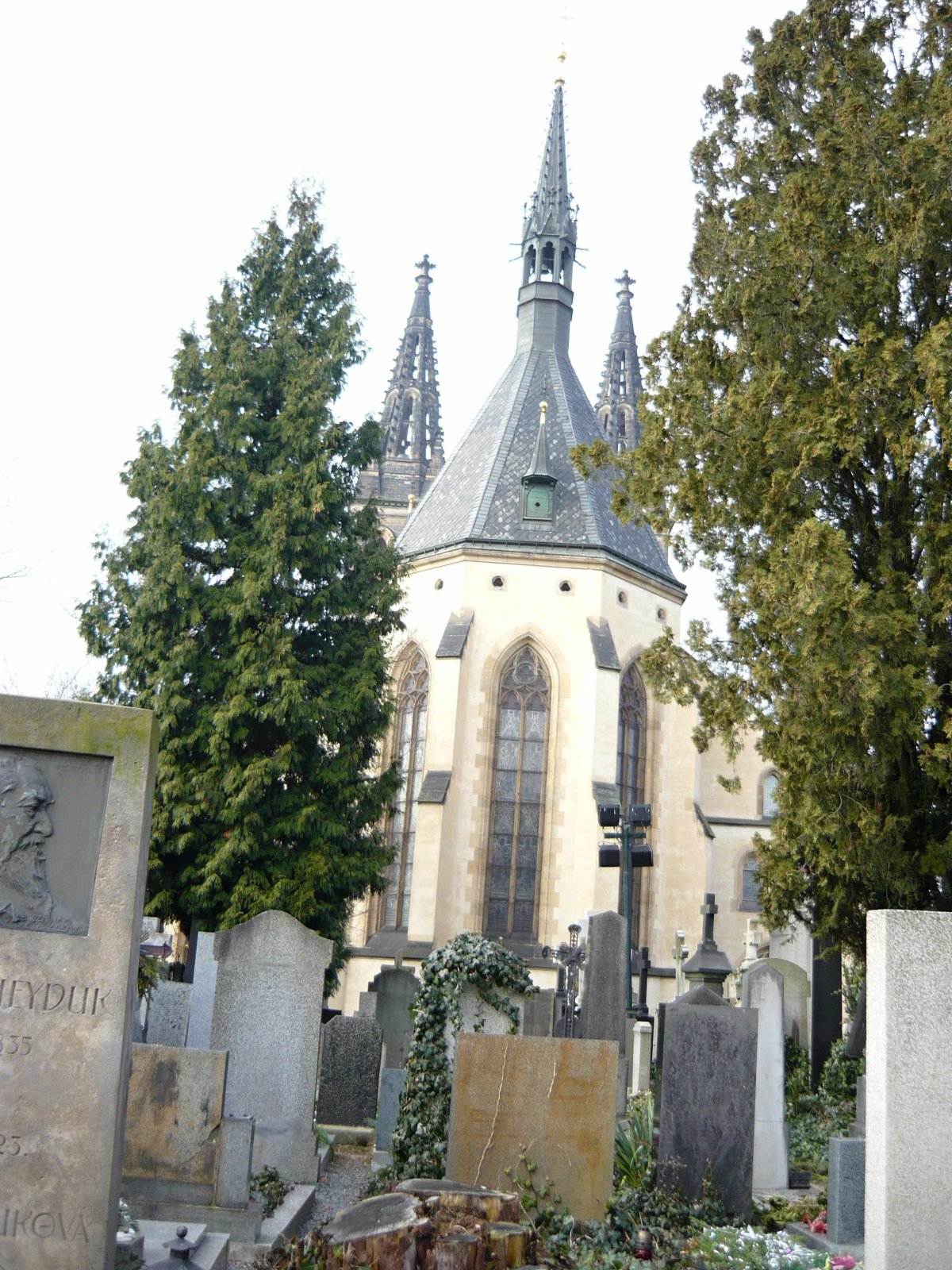Vyšehradský hřbitov při kostele sv. Petra a Pavla na Vyšehradě je od 19. století pohřebiště nejvýznamnějších českých osobností. Kromě hrobů různých významných osobností a jejich rodin se zde na východní straně hřbitova nalézá společná hrobka nejvýznamnějších národních osobností – Slavín. Rozloha hřbitova činí 0,81 ha. Na pozemku se nachází i márnice a kaple. U vchodu na západní straně se nalézá samostatné oddělení, kde jsou pohřbeny řádové sestry (voršilky, bartolomějky, redemptoristky). Hřbitov byl na tomto místě již ve 13. století, přebudován na národní pohřebiště byl v roce 1869. V roce 1887 byly na severním a západním okraji hřbitova postaveny novorenesanční arkády. Hřbitov představoval výjimku mezi pražskými hřbitovy v tom, že zde bylo v roce 1785 zvláštním výnosem povoleno pohřbívání, ačkoliv ostatní hřbitovy u kostelů uvnitř města musely být zrušeny. V letech 1889 - 1893 byla podle projektu Antonína Wiehla postavena společná hrobka pro nejvýznamnější osobnosti české kultury, umění, vědy a techniky Slavín (Wiehl je též autorem novorenesančních arkád). Autorem plastik je sochař Josef Mauder. Proměnu hřbitova v „národní pohřebiště“ navrhl František Ladislav Rieger a zasloužil se o ni zejména Václav Štulc. Zdroj: Wikipedia