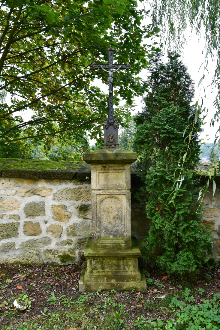 Hřbitov obklopuje kostel sv. Petra a Pavla ve středu obce. Barokní areál z let 1711 až 1712 vznikl na náklady hraběte Clary-Aldringena. Postaven byl teplickým stavitelem Kristianem Laglerem. Ke kostelu vede dvouramenné přístupové schodiště s terasou a plastikami sv. Vojtěcha, sv. Jana Nepomuckého, sv. Josefa a Immaculaty. Vedle kostela se nachází hranolová zvonice. Hřbitov je dnes běžně využíván.