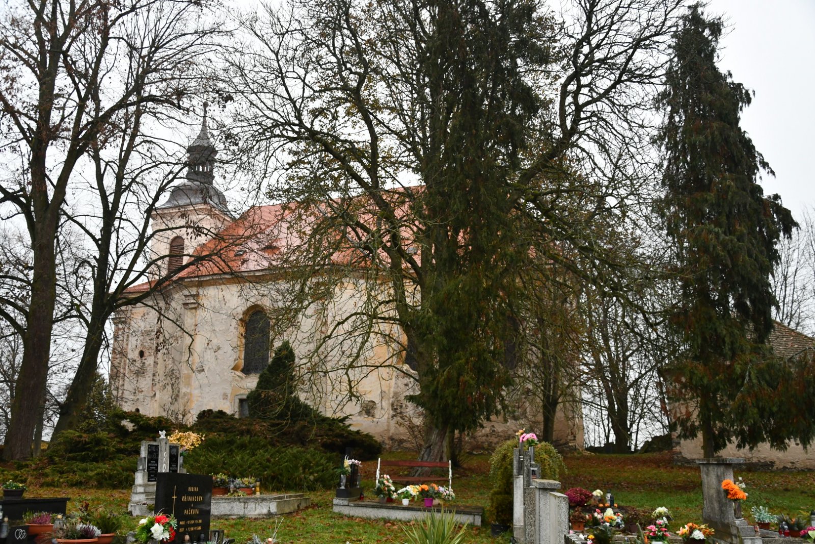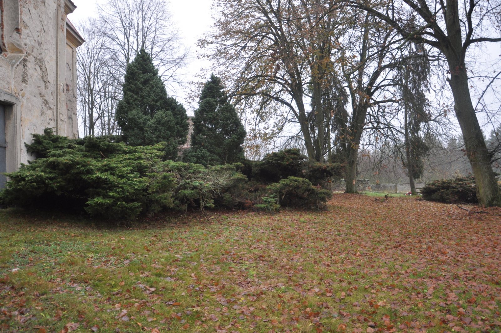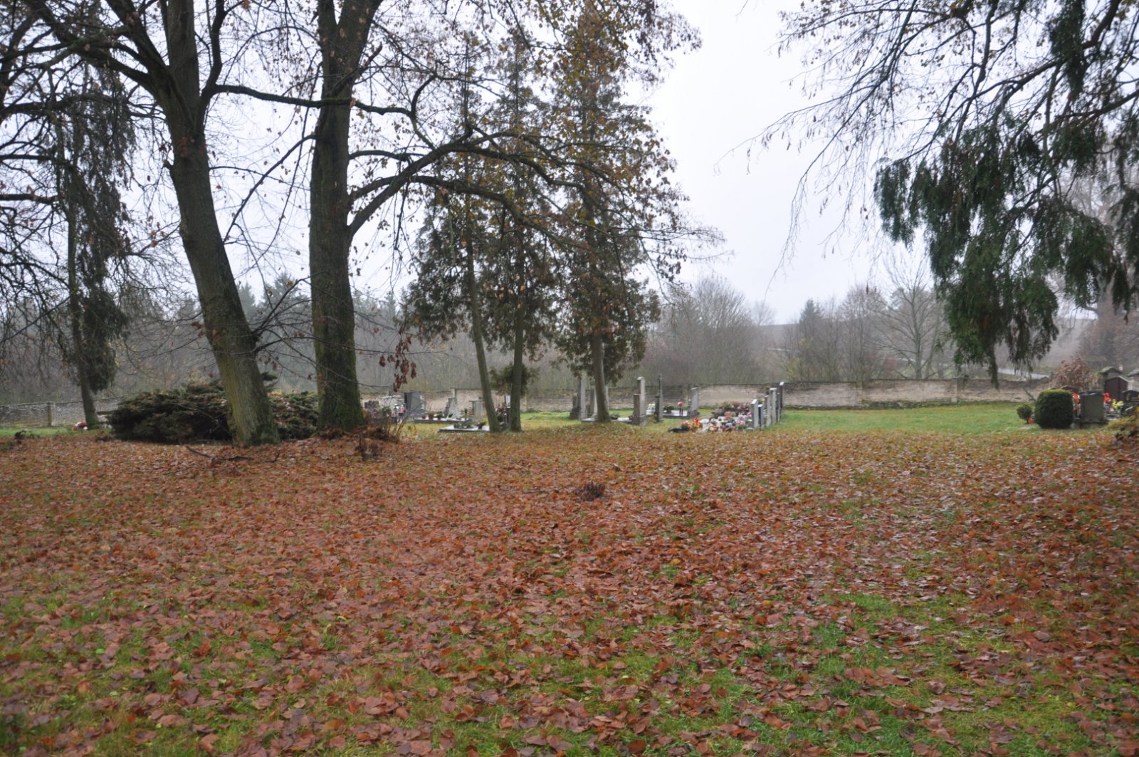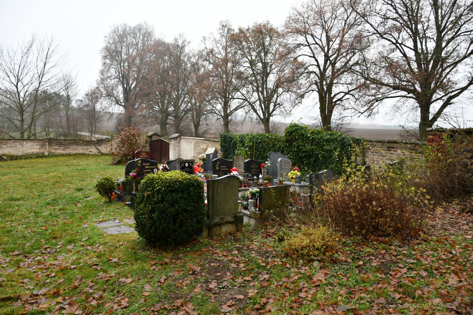 - Vyčištěná plocha hřbitova