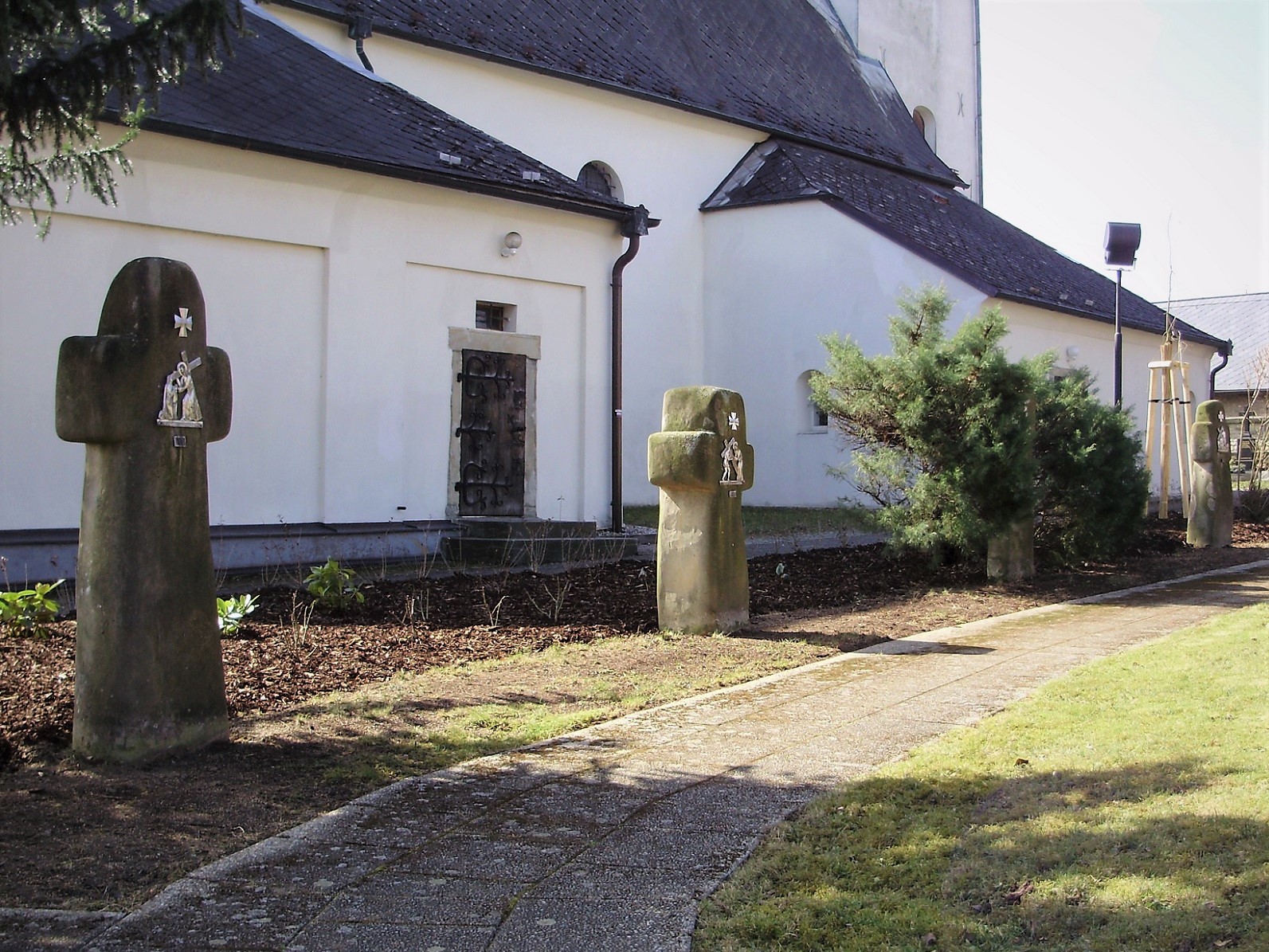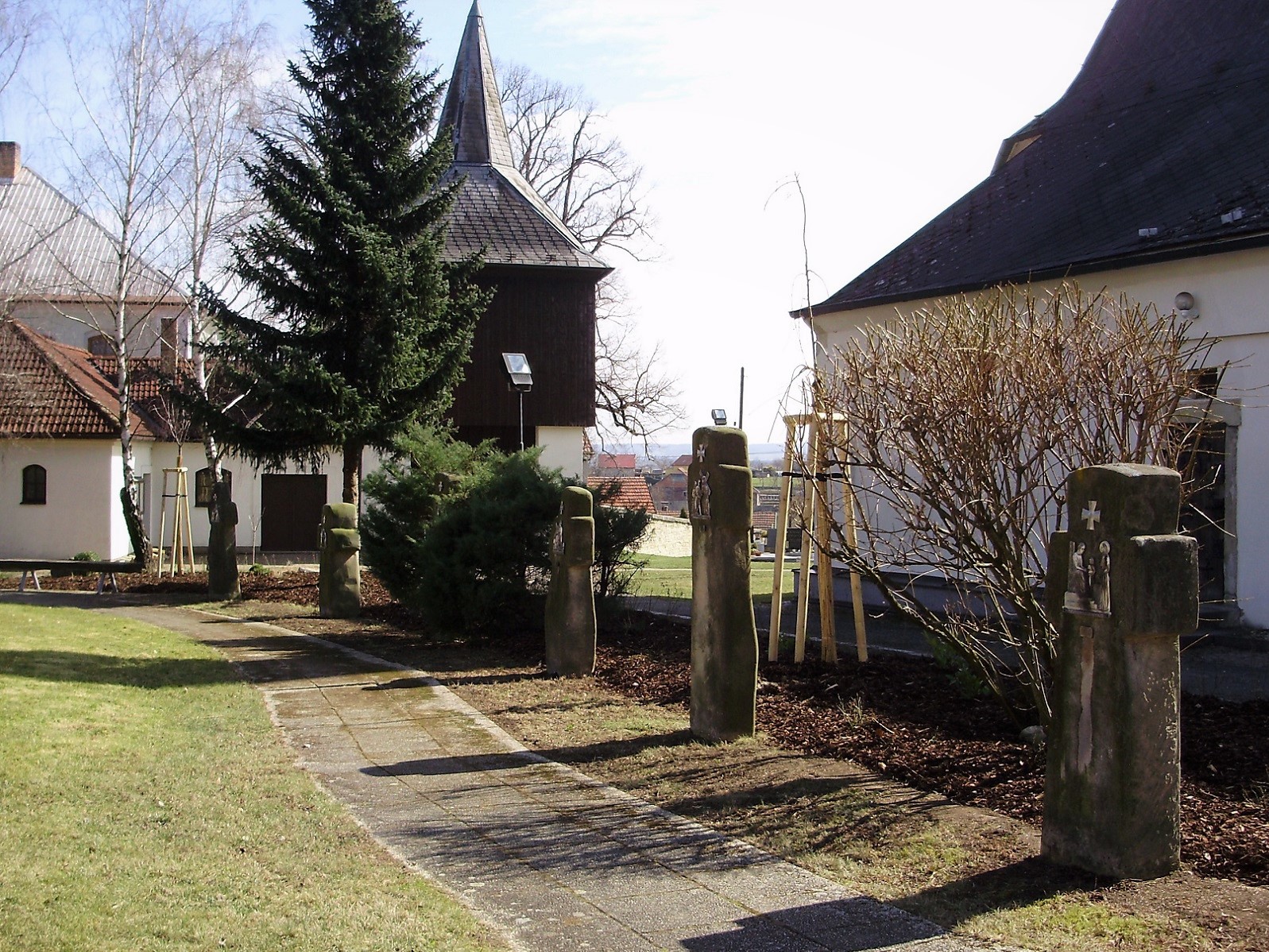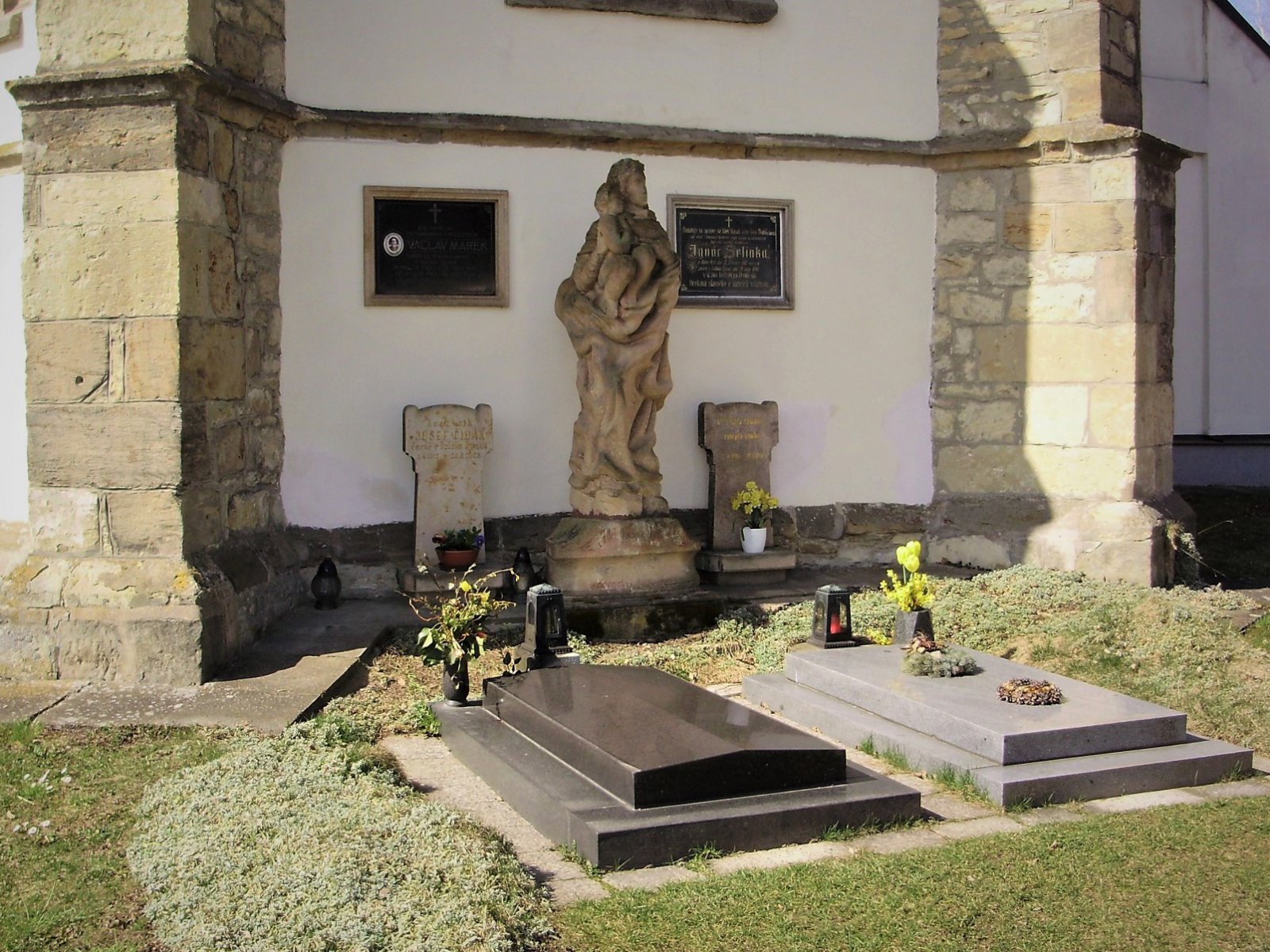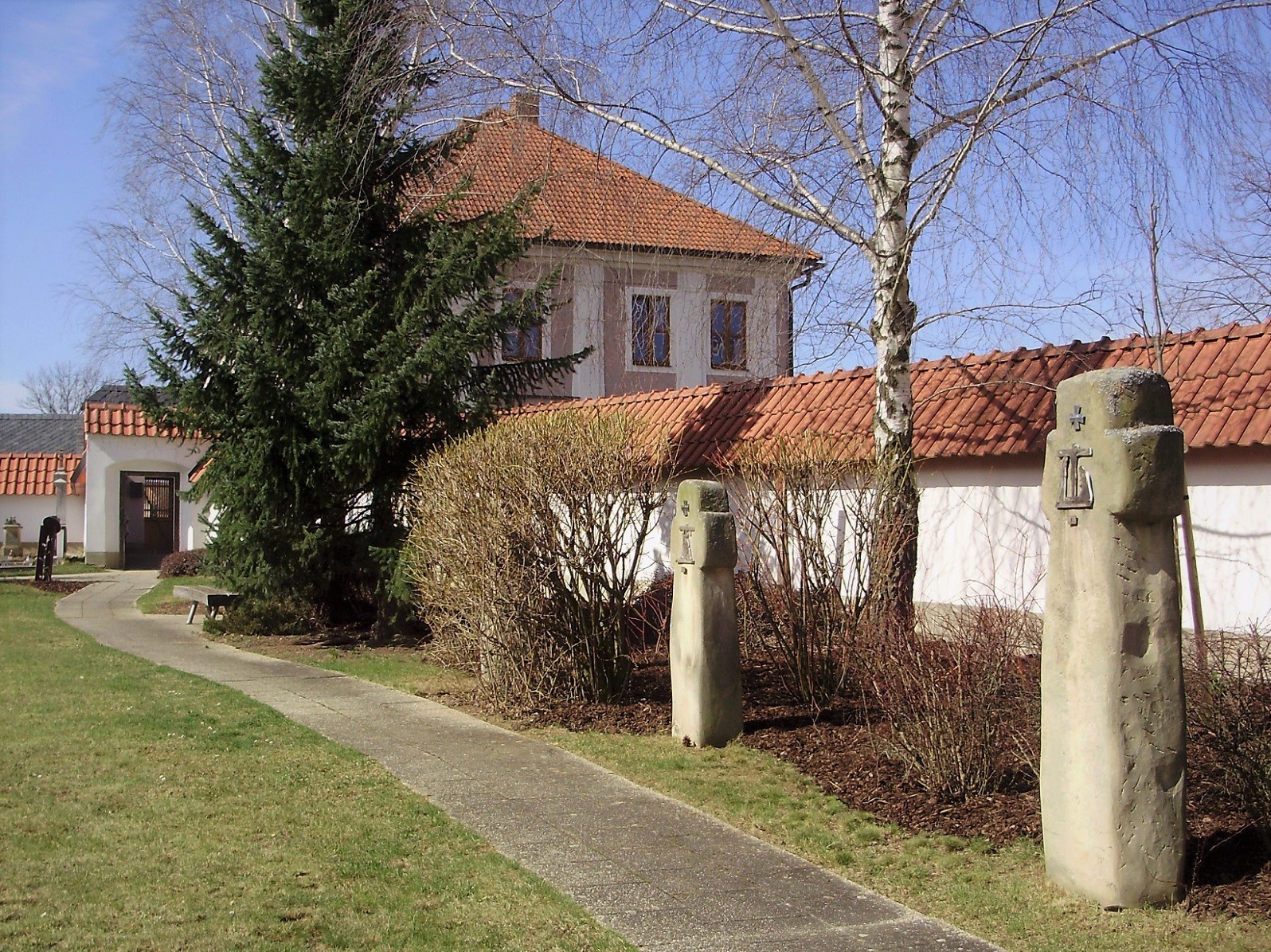 Historická část hřbitova kolem kostela se již k pohřbívání nevyužívá (zrušeno 1908), výjimkou jsou hroby duchovních u presbytáře a řada podél západní ohradní zdi. Prostor severně od kostela je nyní nápaditě upraven do podoby meditativní zahrady s ojediněle pojatou křížovou cestou a moderním pomníkem obětem 1. světové války.
