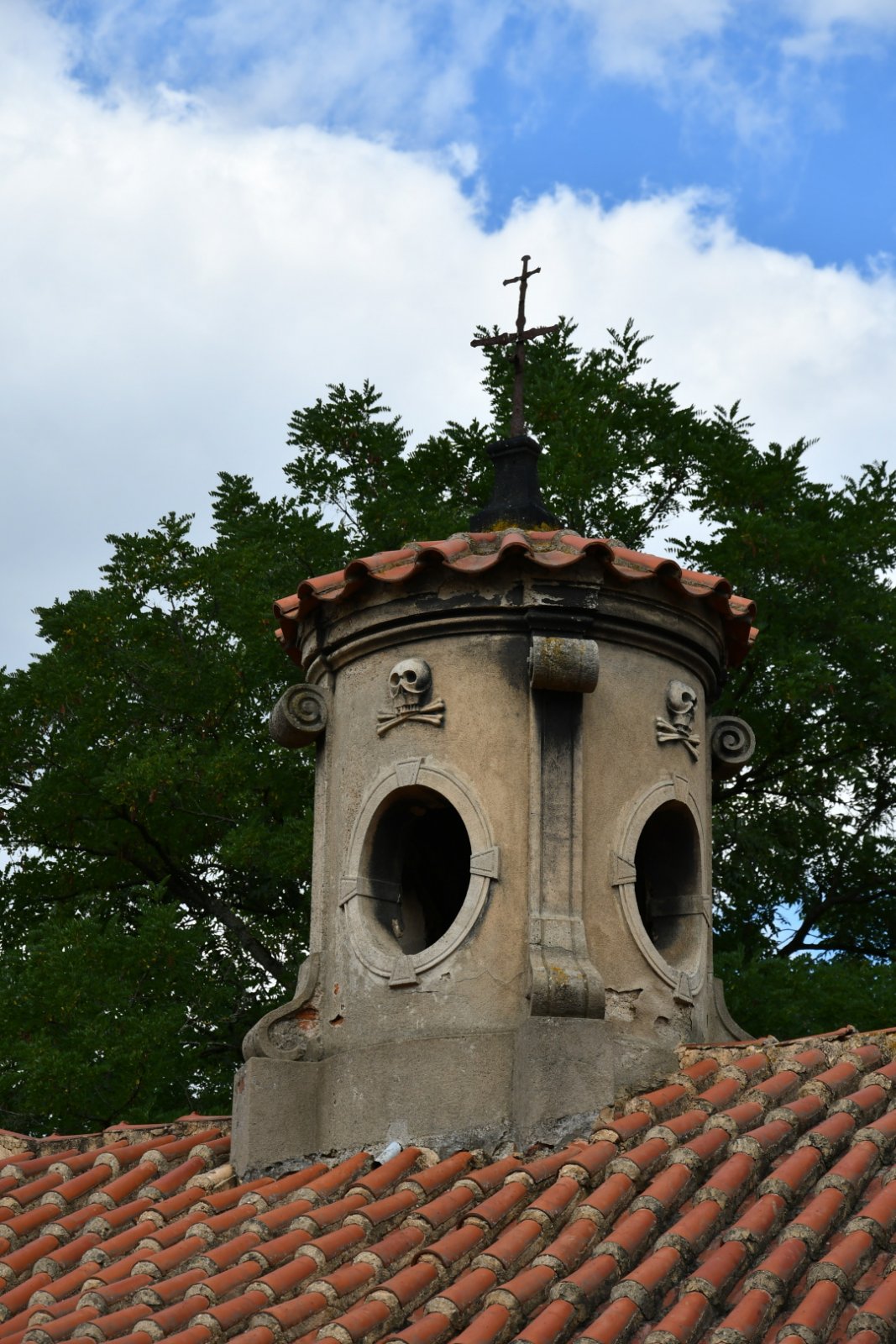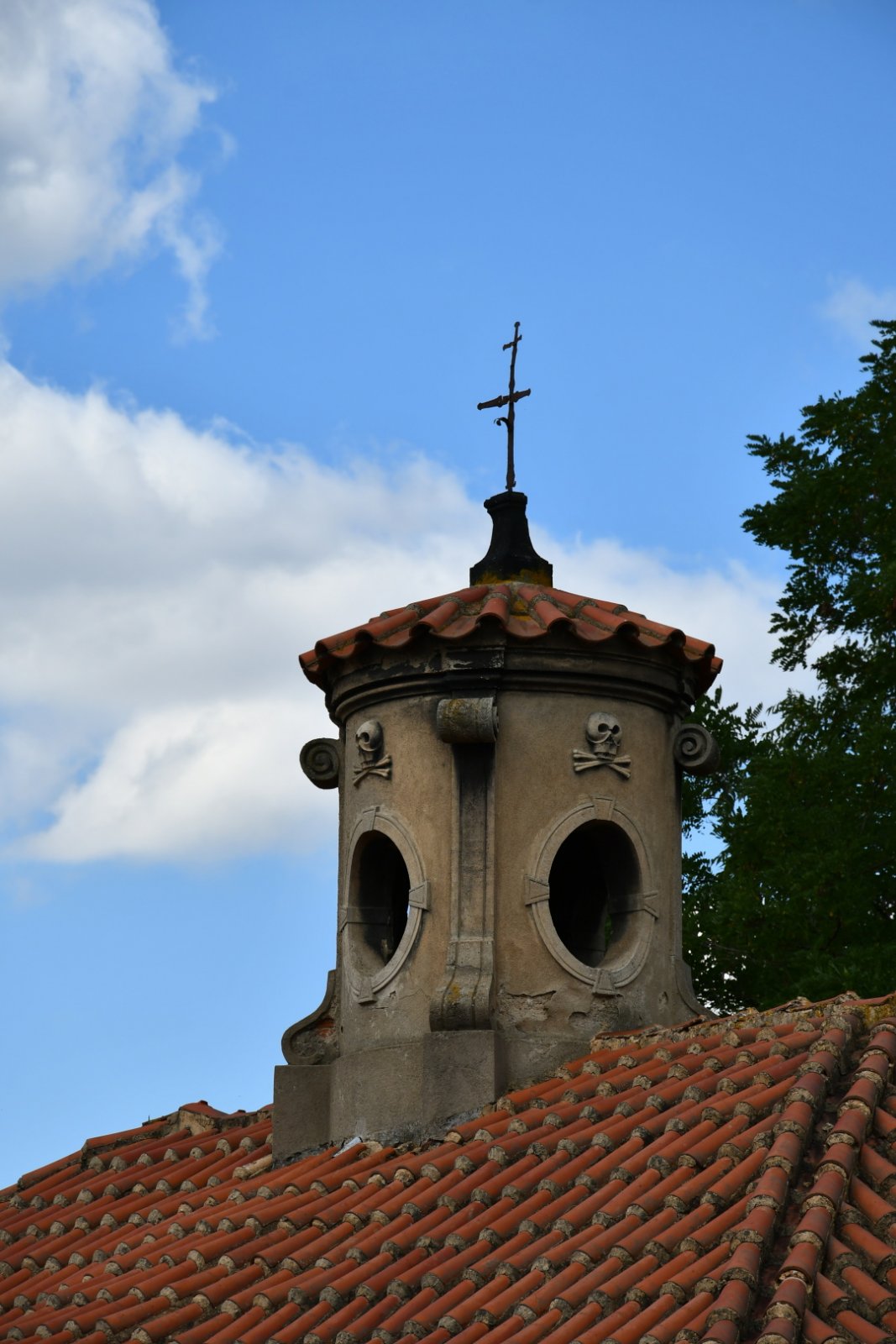 Zajímavostí zdejšího hřbitova je bezesporu barokní kostnice postavená kolem 1730 pravděpodobně Matějem Ondřejem Kondelem, který v té době prováděl přestavbu zdejšího kostela sv. Jiří. Jedná se o obdélníkovou stavbu, jejíž stěny jsou zdobeny lisenami a profilovanou okapní římsou. Delší stěna je prolomena oválnými okny s kovanou mříží, jejichž spodní strana byla v druhé polovině 19. století zazděna. Mezi okny se nachází jednoduchý vstupní portálek. Budova je kryta červenou prejzovou střechou, nad níž je vztyčena kulatá věžička podobná lucernám románských rotund a členěná čtyřmi polosloupky s volutovými motivy. Ve čtyřech polích mezi sloupky jsou oválná okénka a nad nimi štukové reliéfy s lebkou a zkříženými hnáty.