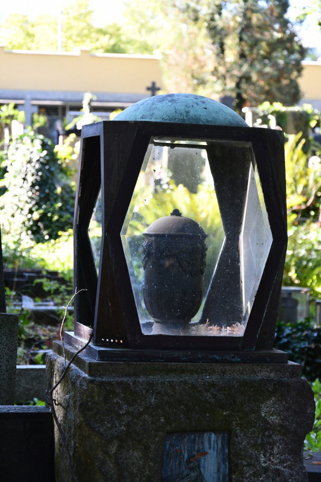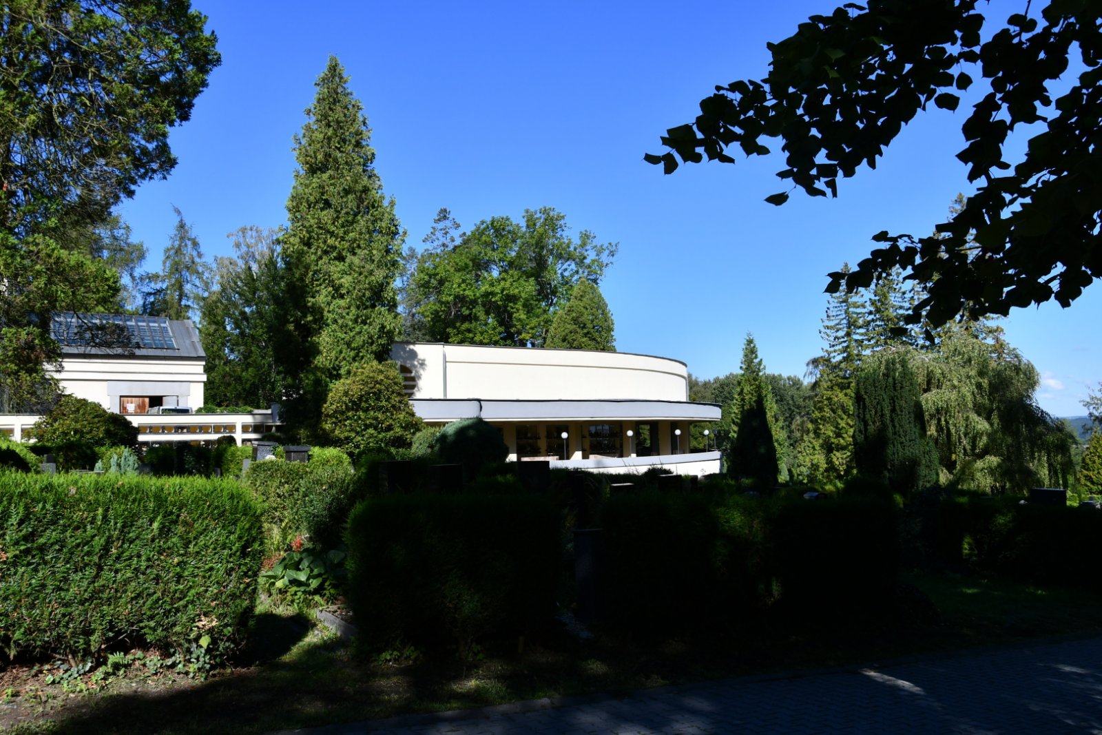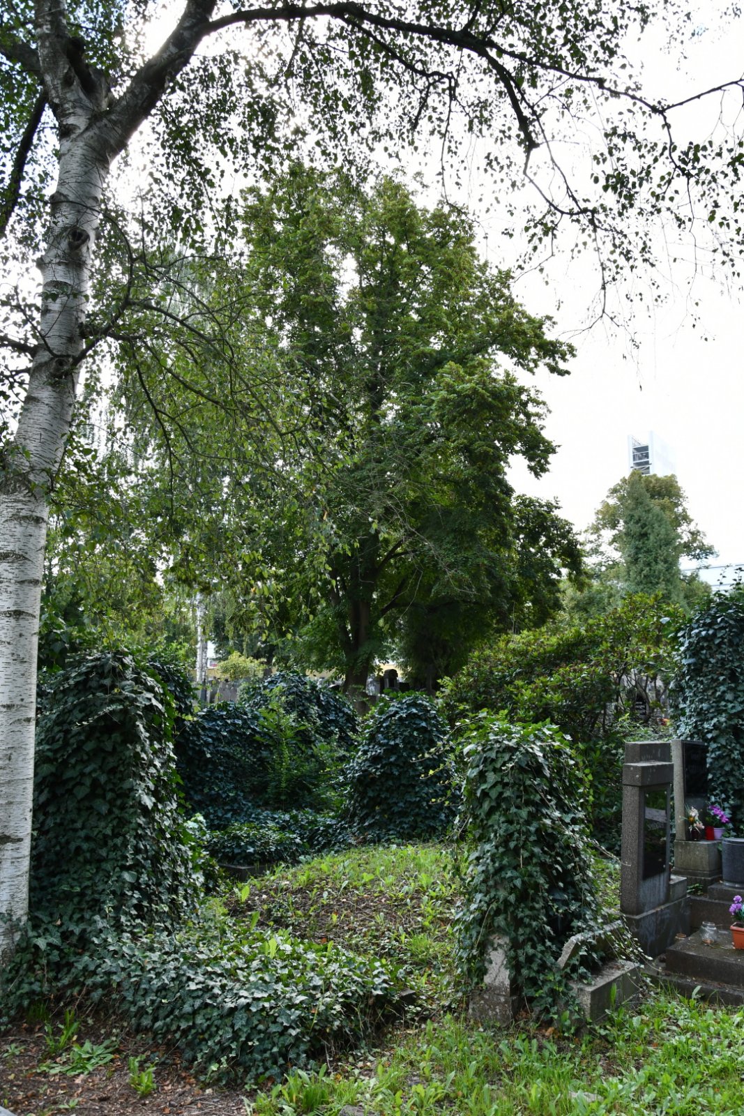 Zatímco původní část charakterizuje přísné geometrické členění plochy, doplněné zelení, meziválečná část je koncipována s opačnou logikou – v různorodých plochách zeleně jsou umístěny jednotlivé stavby a náhrobky.