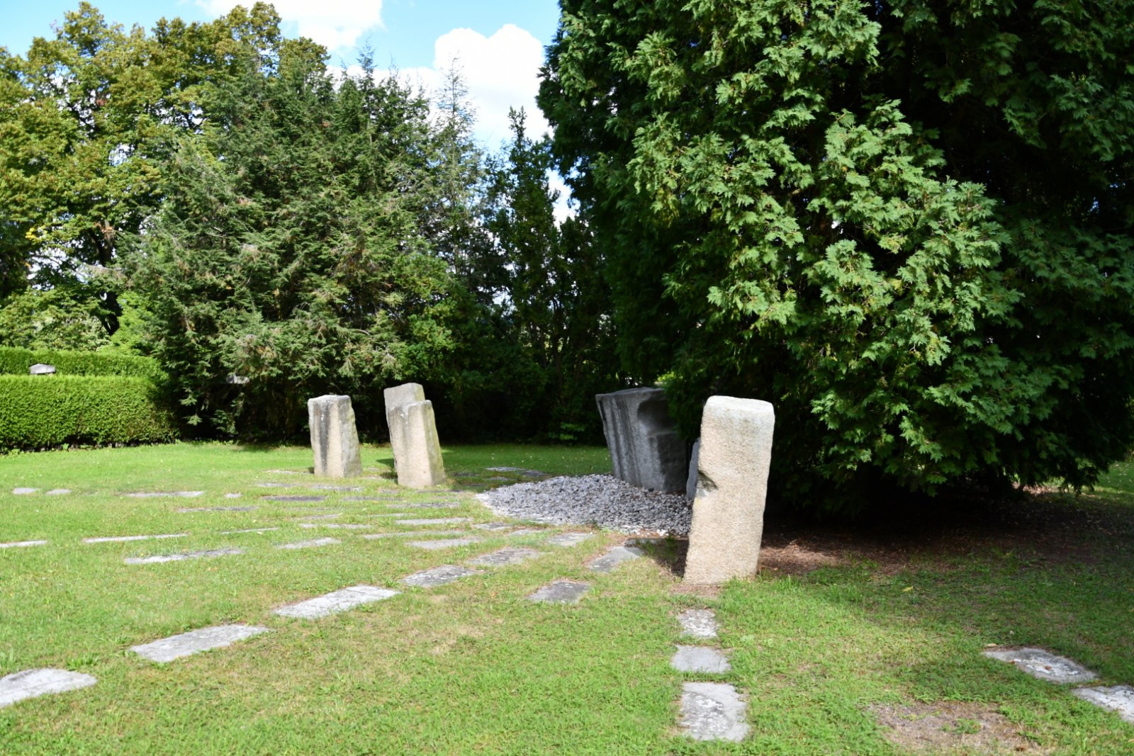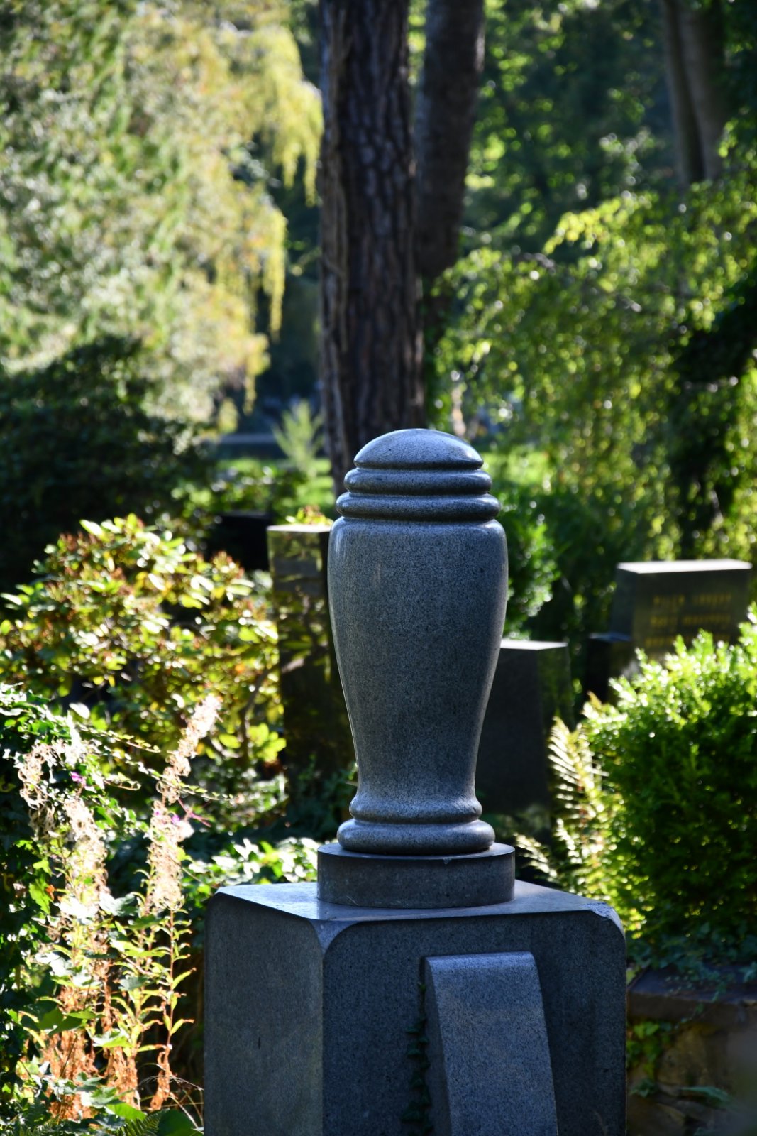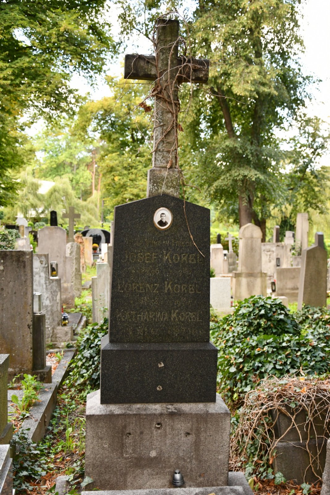 Zatímco původní část charakterizuje přísné geometrické členění plochy, doplněné zelení, meziválečná část je koncipována s opačnou logikou – v různorodých plochách zeleně jsou umístěny jednotlivé stavby a náhrobky.