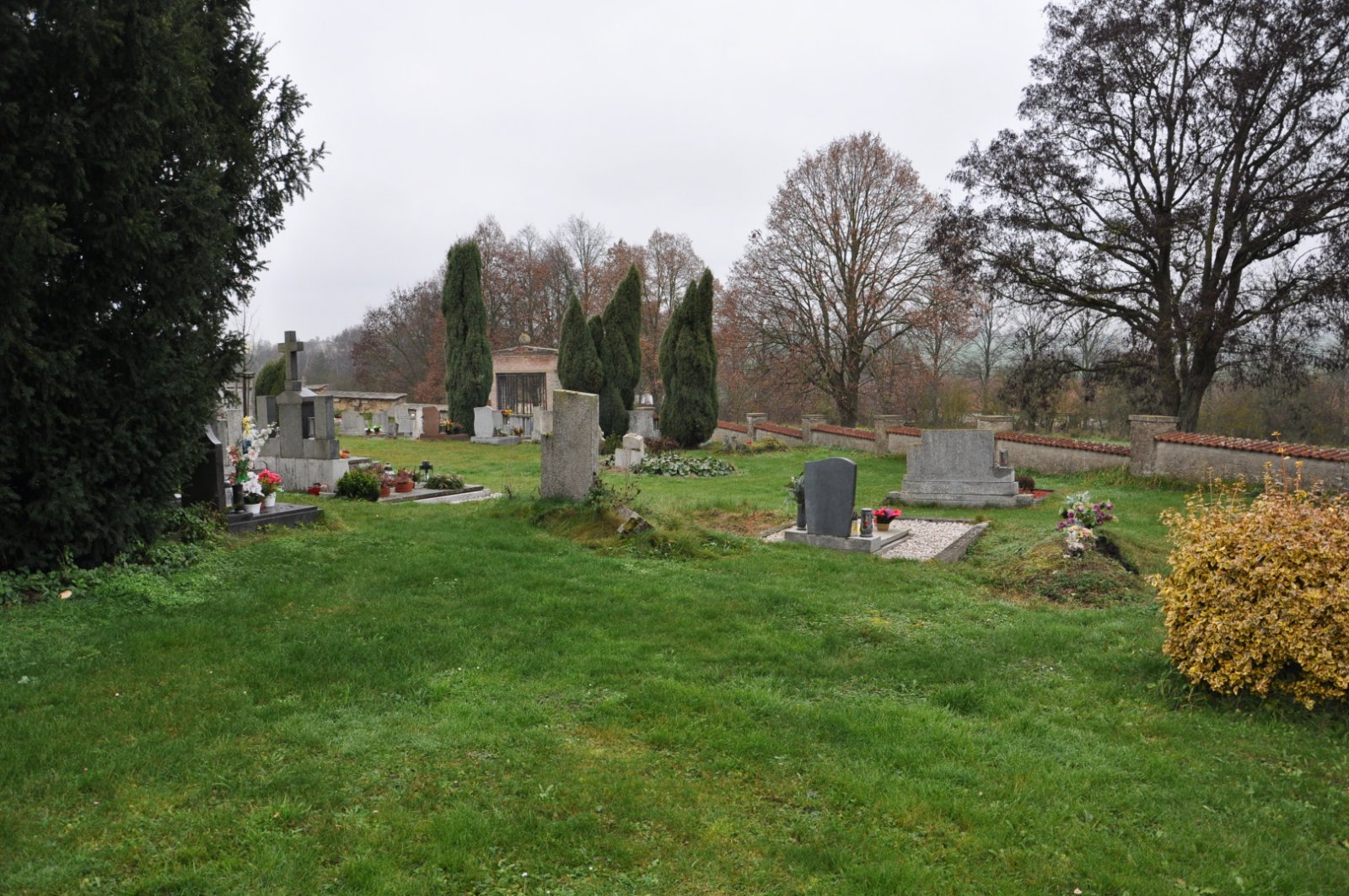 - Vyčištěná plocha hřbitova