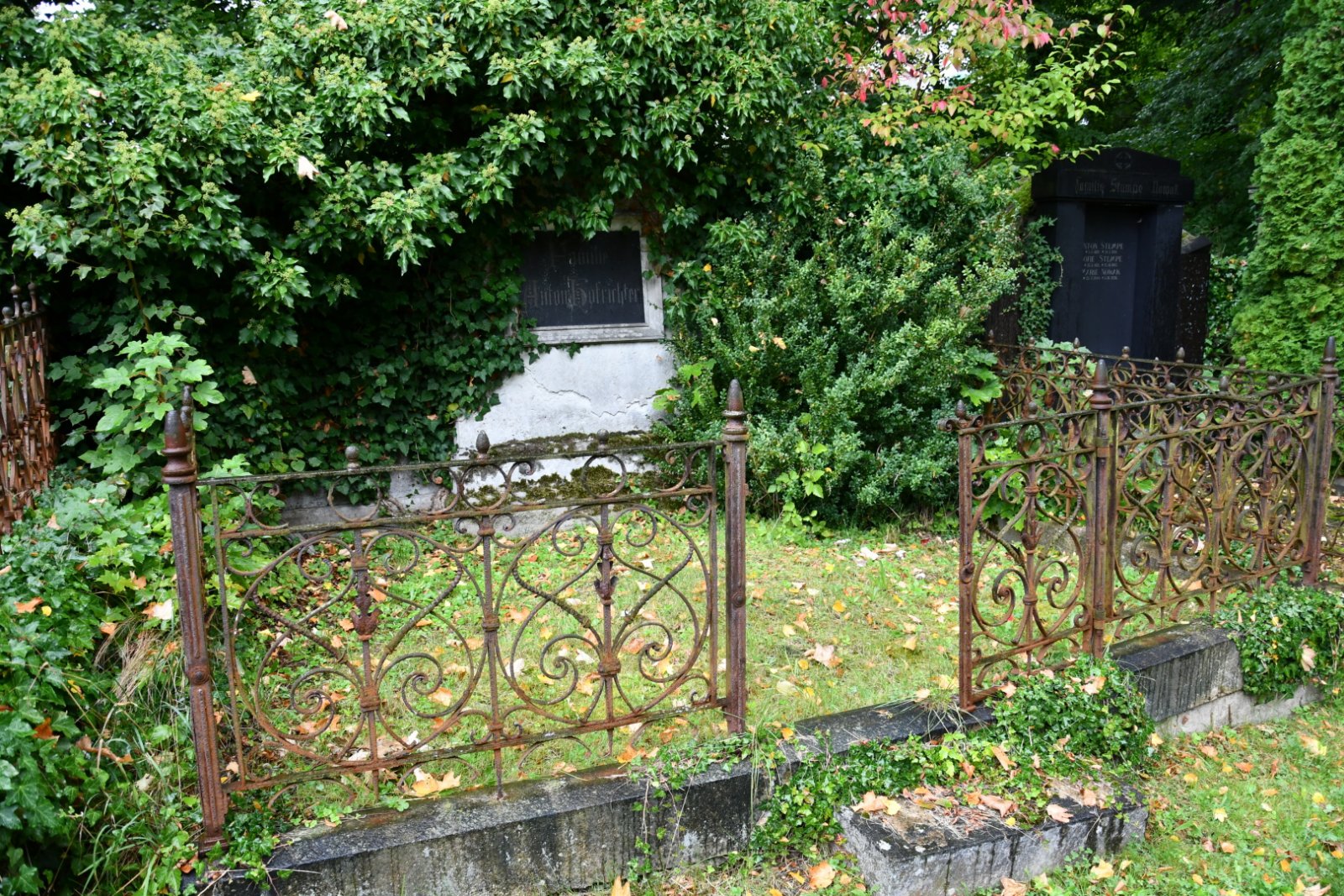 První pohřeb na nově založeném hřbitově proběhl v roce 1849. Hřbitov byl založen snad v souvislosti s epidemií tyfu v roce 1849. Na hřbitově je pohřben jeden ze zdejších nejbohatších podnikatelů, Ferdinand Xaver Unger (1796–1849). Jeho hrobka je na novém hřbitově ta největší a nejkrásnější, vypadá stejně jako Ungrův dům na náměstí. Rod Ungrů proslavil Hodkovice vývozem skla a bižuterie do celého světa, a také založil pivovar Rohozec. V pravé části hřbitova, přímo naproti Ungrově hrobce, se nacházejí monumentální náhrobky jejich příbuzných i konkurentů. Alegorické sochy, v tehdy novém klasicistním slohu, pocházejí z dílny pražského sochaře Josefa Maxe. Největší patří Vincenci Spietschkovi (1800–1854), sklářskému továrníkovi a starostovi Hodkovic, a jeho rodině. Zde také odpočívá nešťastný Theodor, známý z pověsti o Špičkově duchu. Sousední náhrobek s jedním andělem upomíná na obchodníka Vincence Spietschku st. (1763–1814) a jeho manželku Marii Annu Khittelovou (1765–1841), sestru výše zmíněného lékaře A. G. Khittela. Téměř všechny náhrobky podél zdí patřily slavným hodkovickým rodům jako jsou např. Blaschkové, Swobodové, Hofrichterové ad.