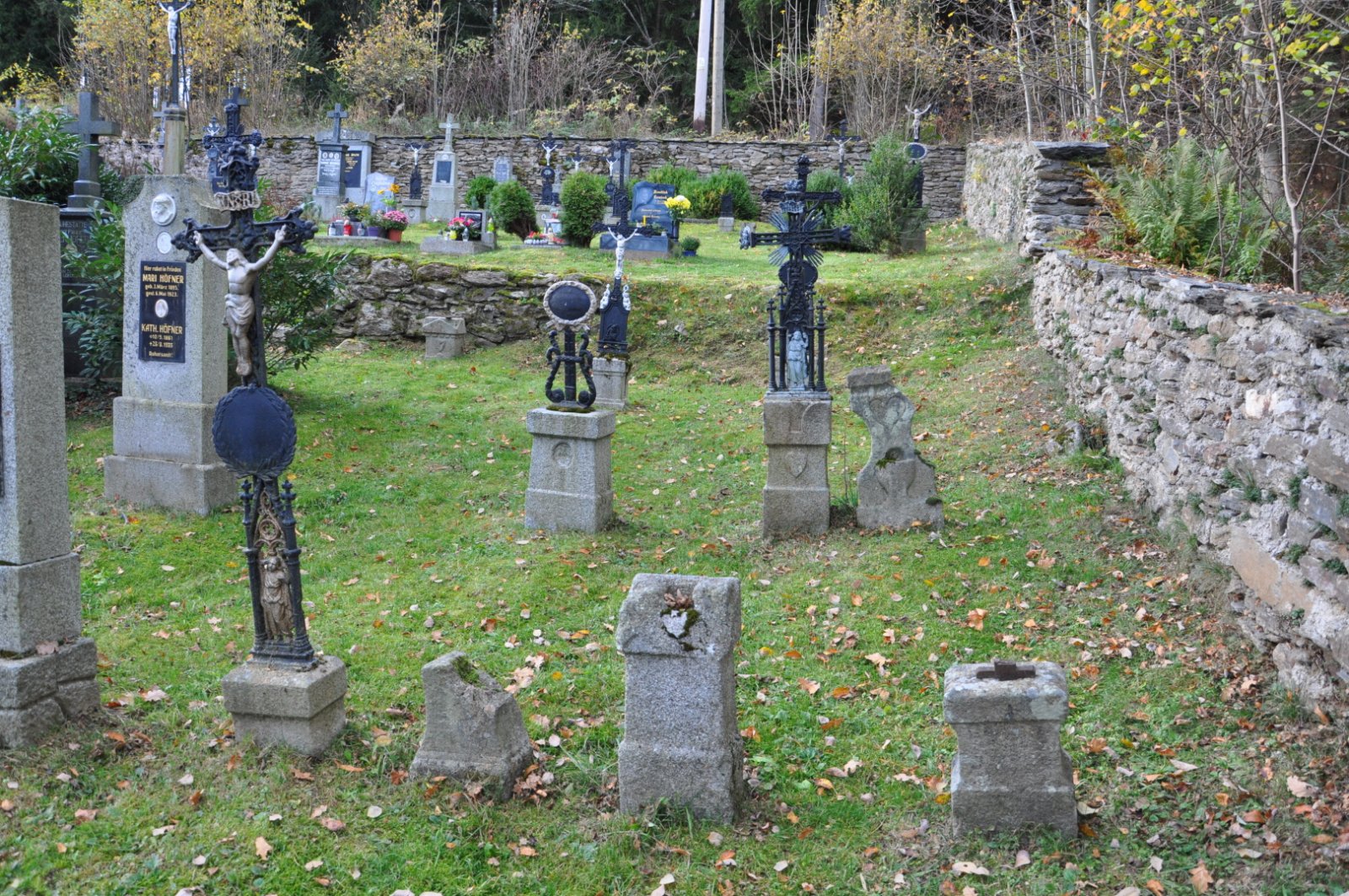 - Udržována vč. náhrobků na nebo u zdi