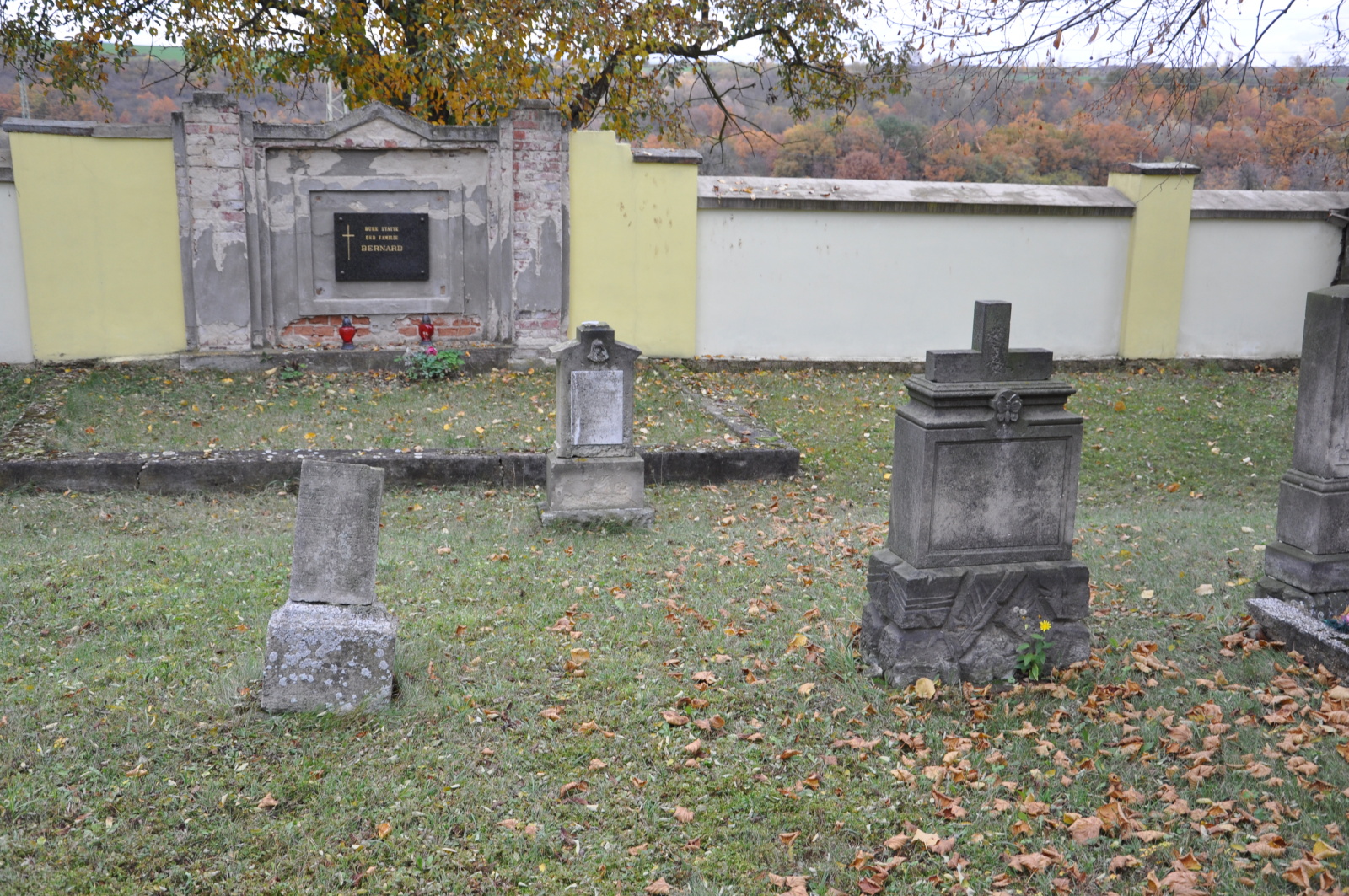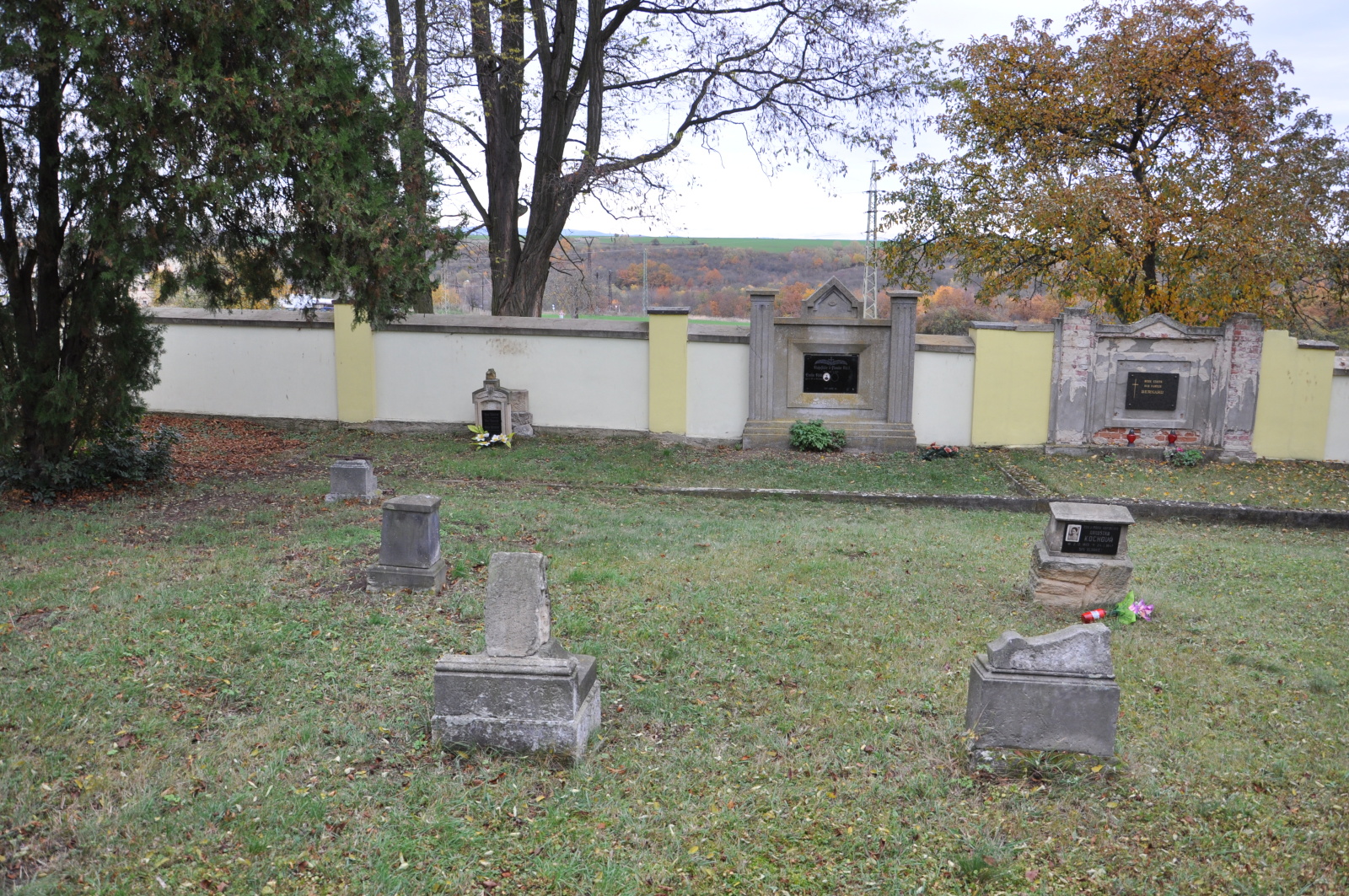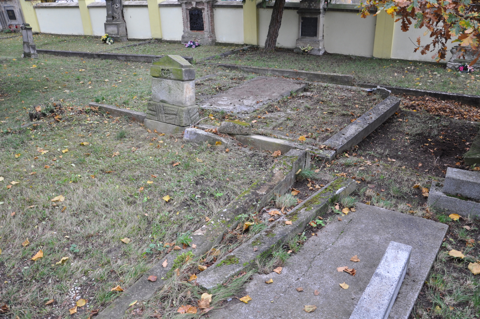 - Obnovena vč. náhrobků a desek na/u zdi