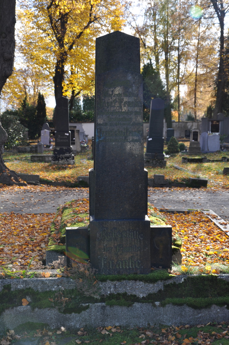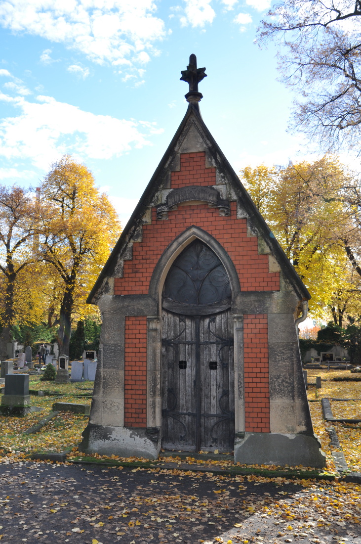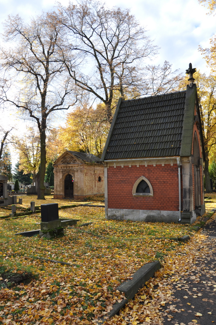 Na chomutovském městském hřbitově byly po vzoru velkých ústředních hřbitovů pražských a vídeňských budovány honosné rodinné hrobky a náhrobníky. Mezi nejkrásnější neogotické a neoklasicistní hrobky patří rodinná hrobka rodiny Markových, výstavním náhrobníkem je kamenný náhrobek známého archeologa, historika a filologa Antona Gnirse. Tento náhrobek z dílny krásenského sochaře Williho Russe byl v nedávných letech restaurován. V roce 1932 byly z Mladějova do Chomutova převezeny ostatky nejslavnějšího chomutovského rodáka Františka Josefa Gerstnera a uloženy byly v novém reprezentativním hrobě na městském hřbitově.