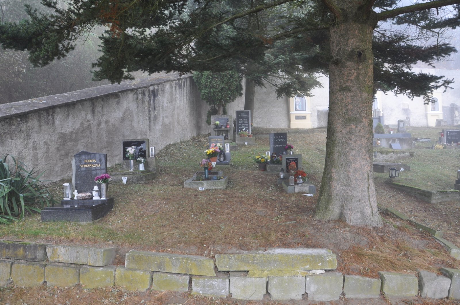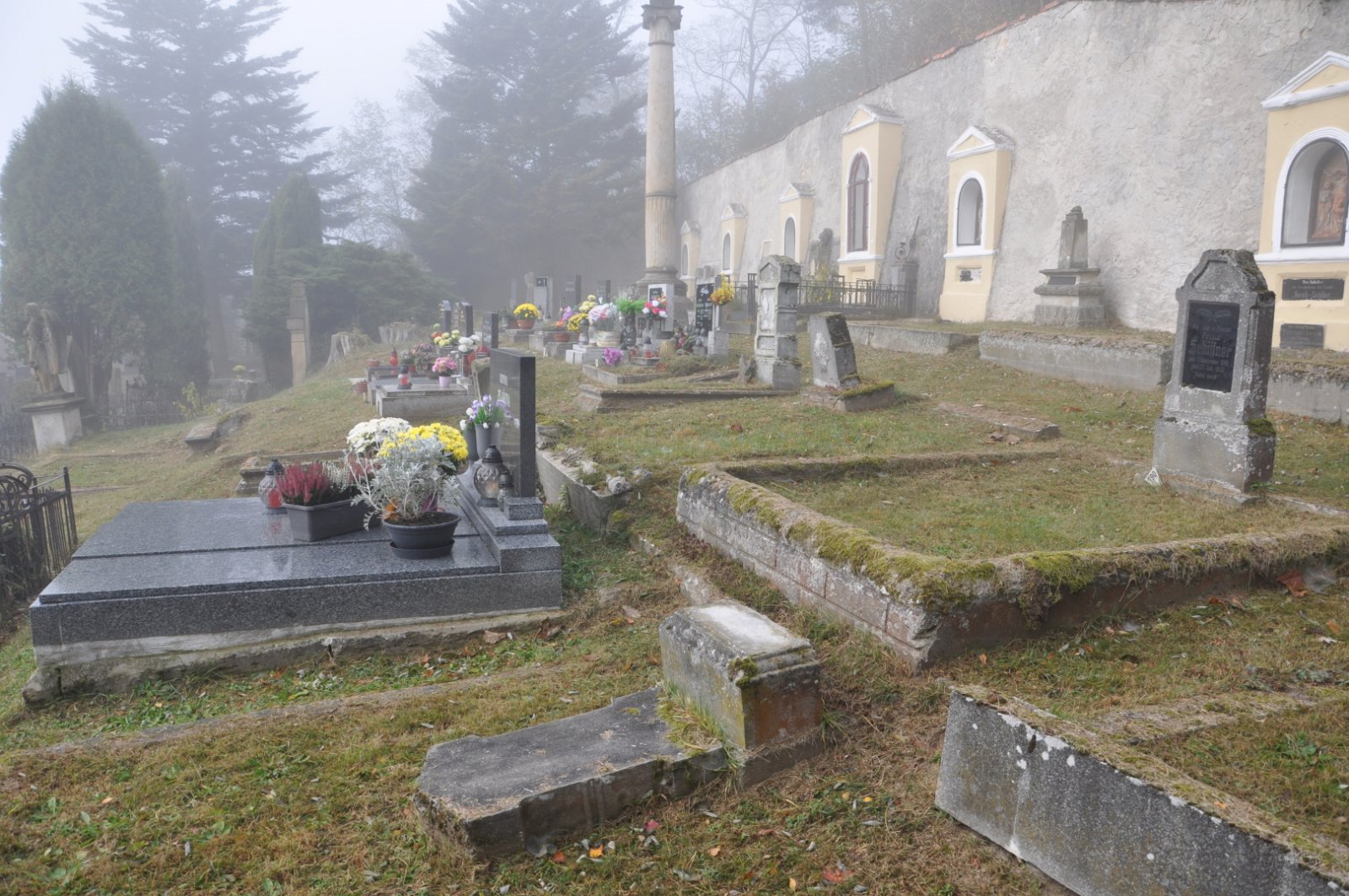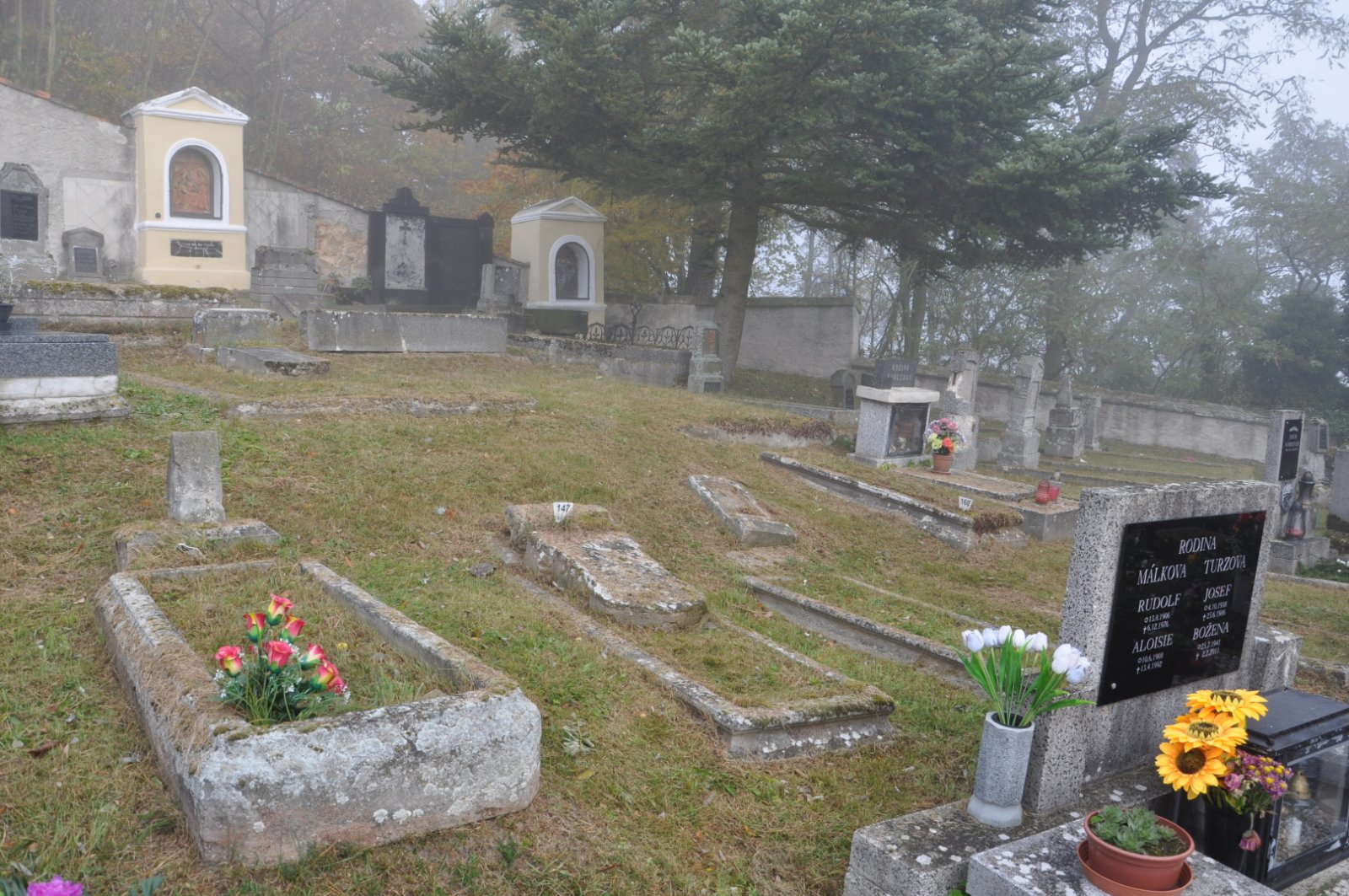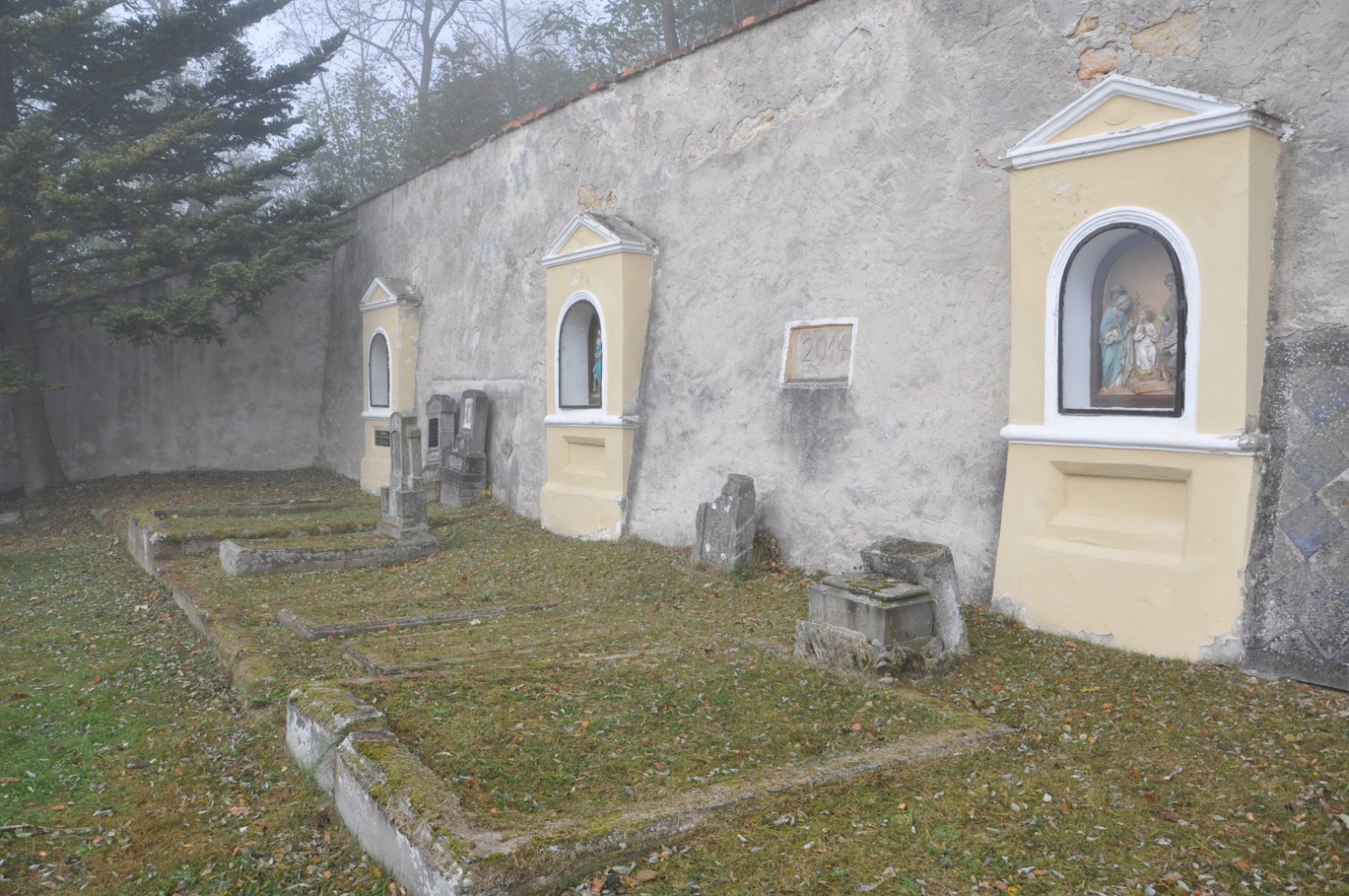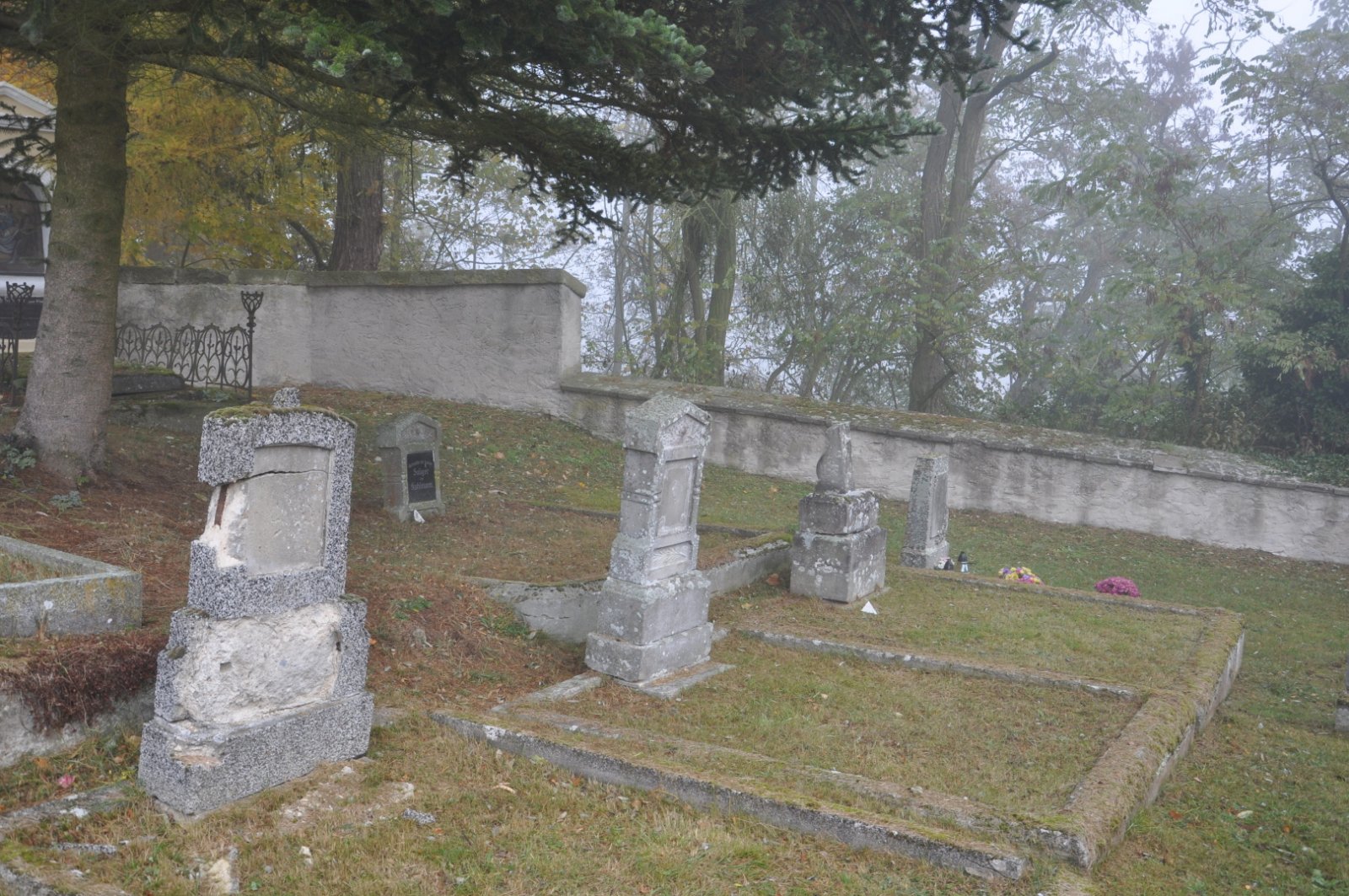 - Obnovena vč. náhrobků a desek na/u zdi