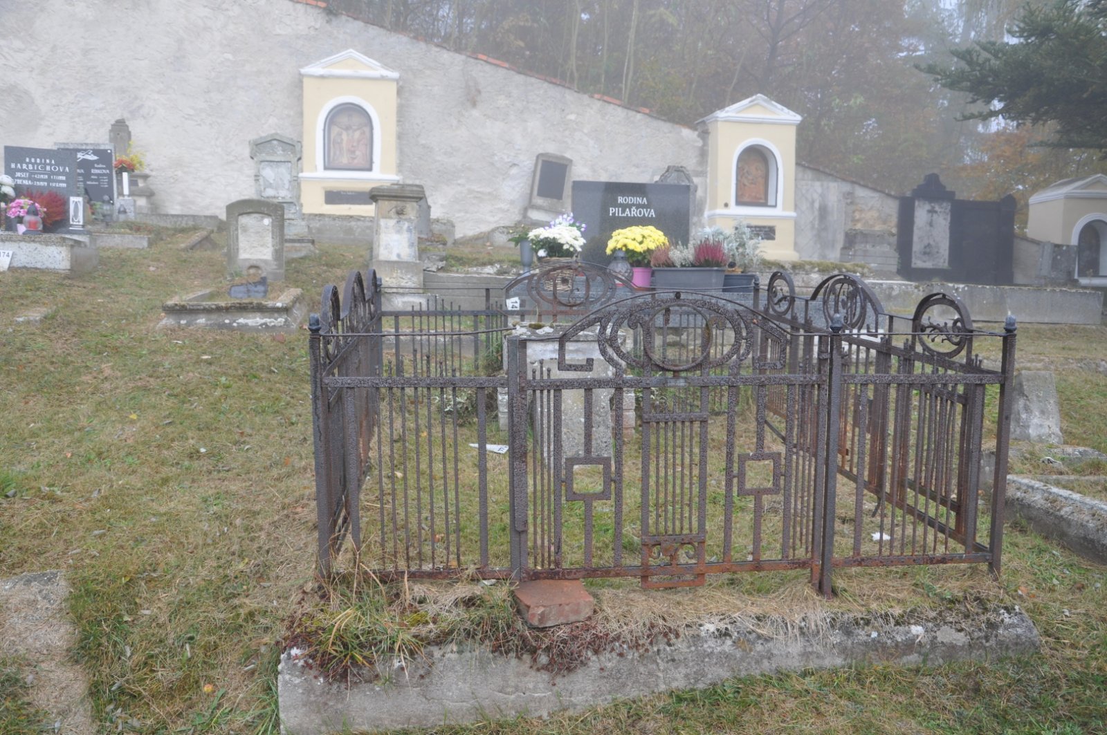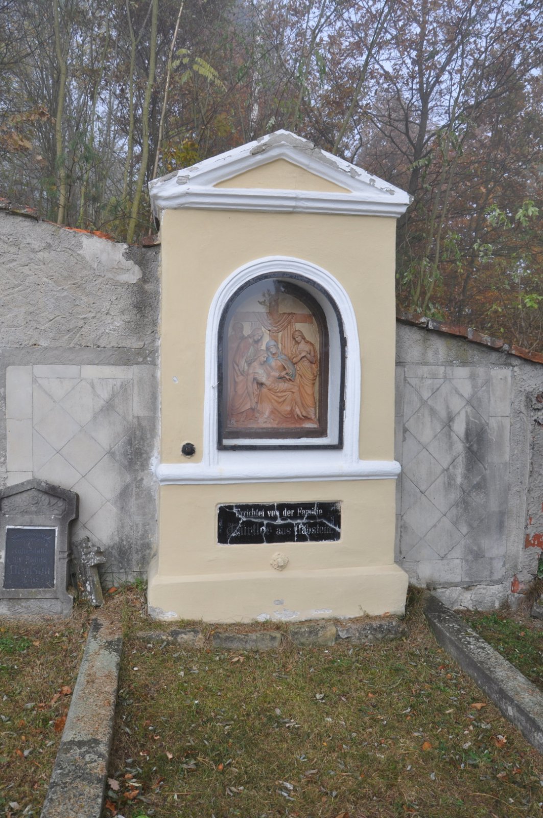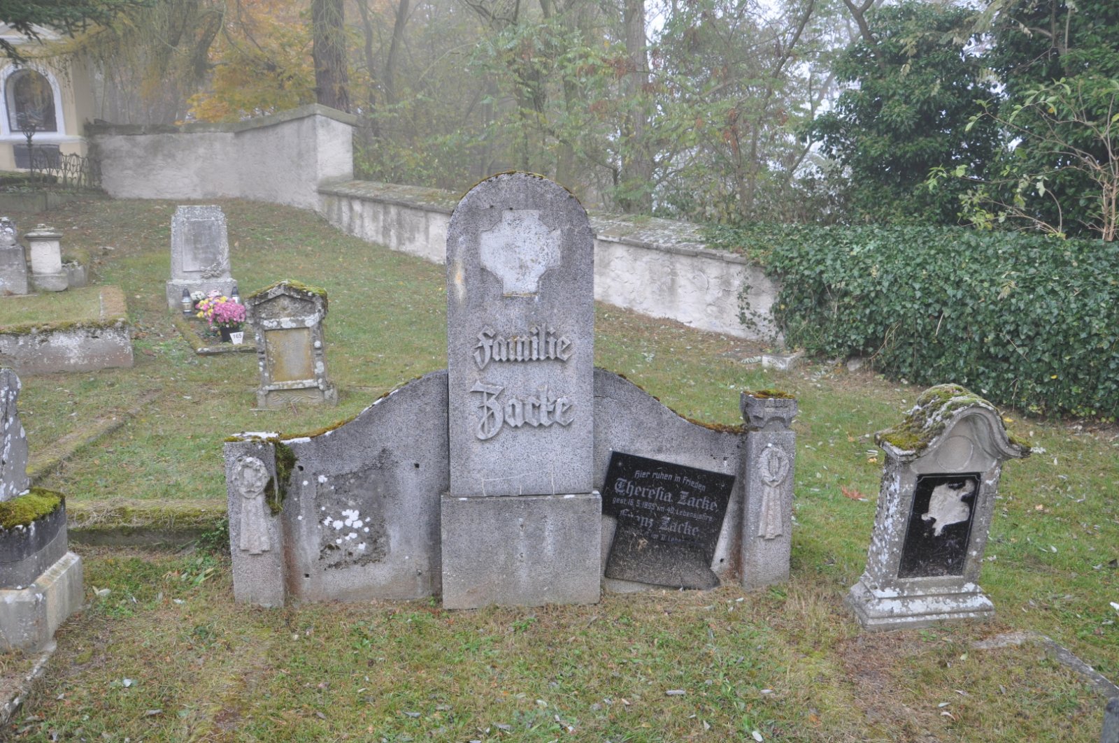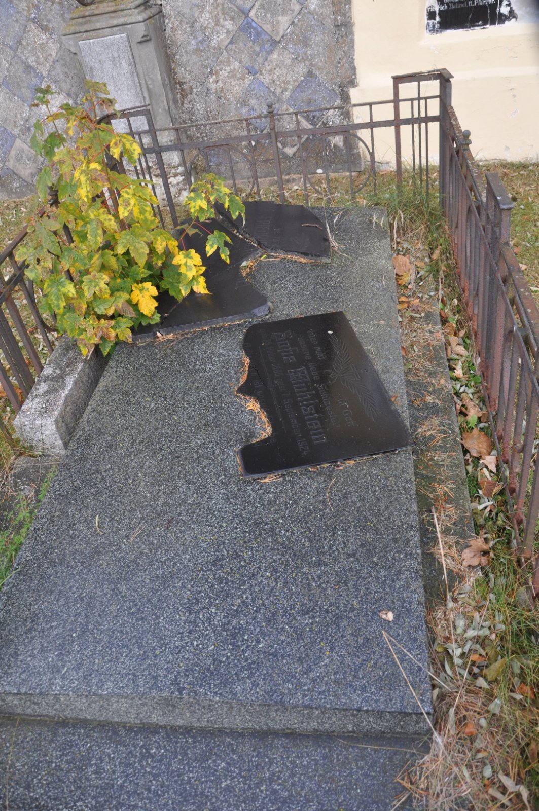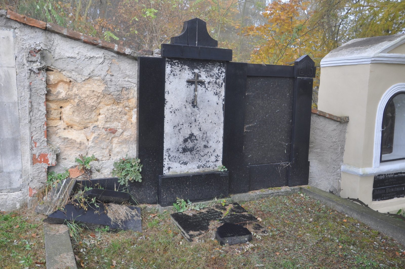 - Obnovena vč. náhrobků a desek na/u zdi