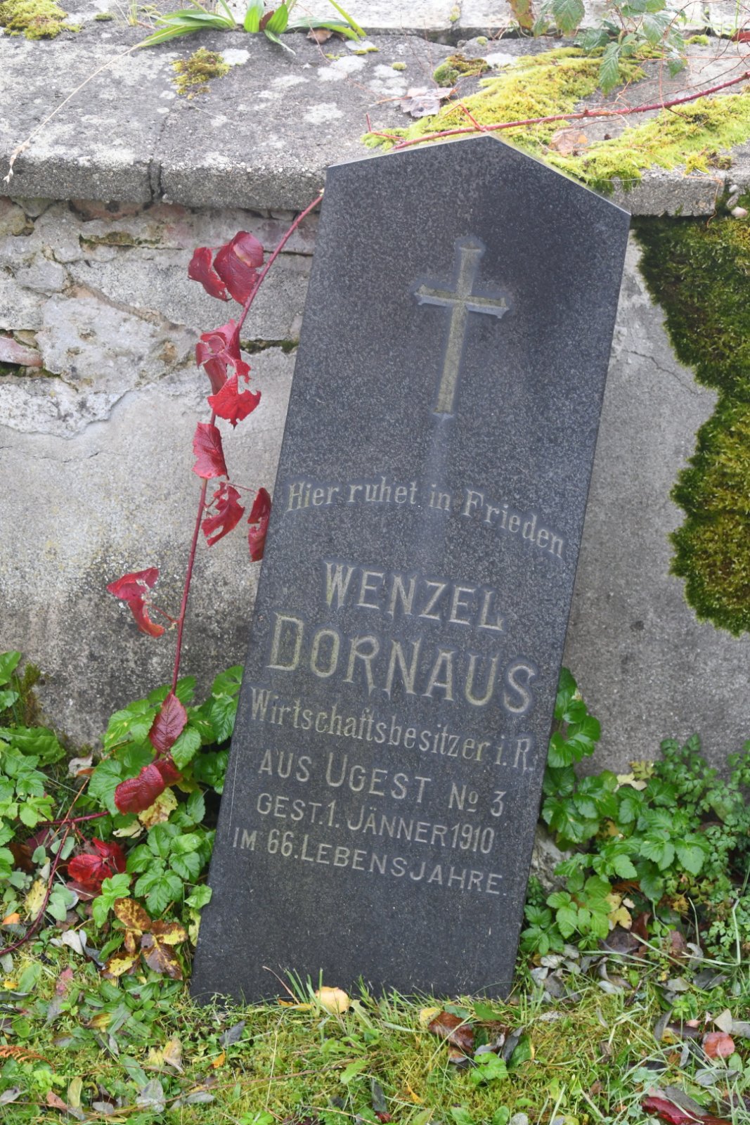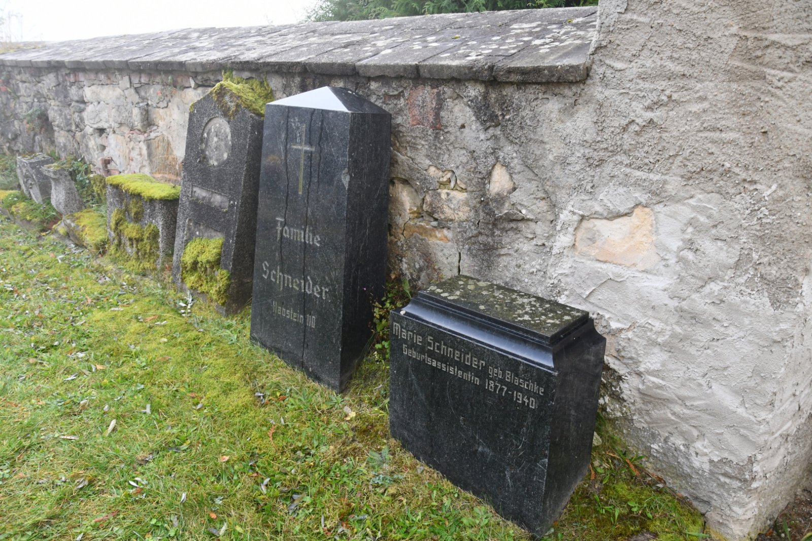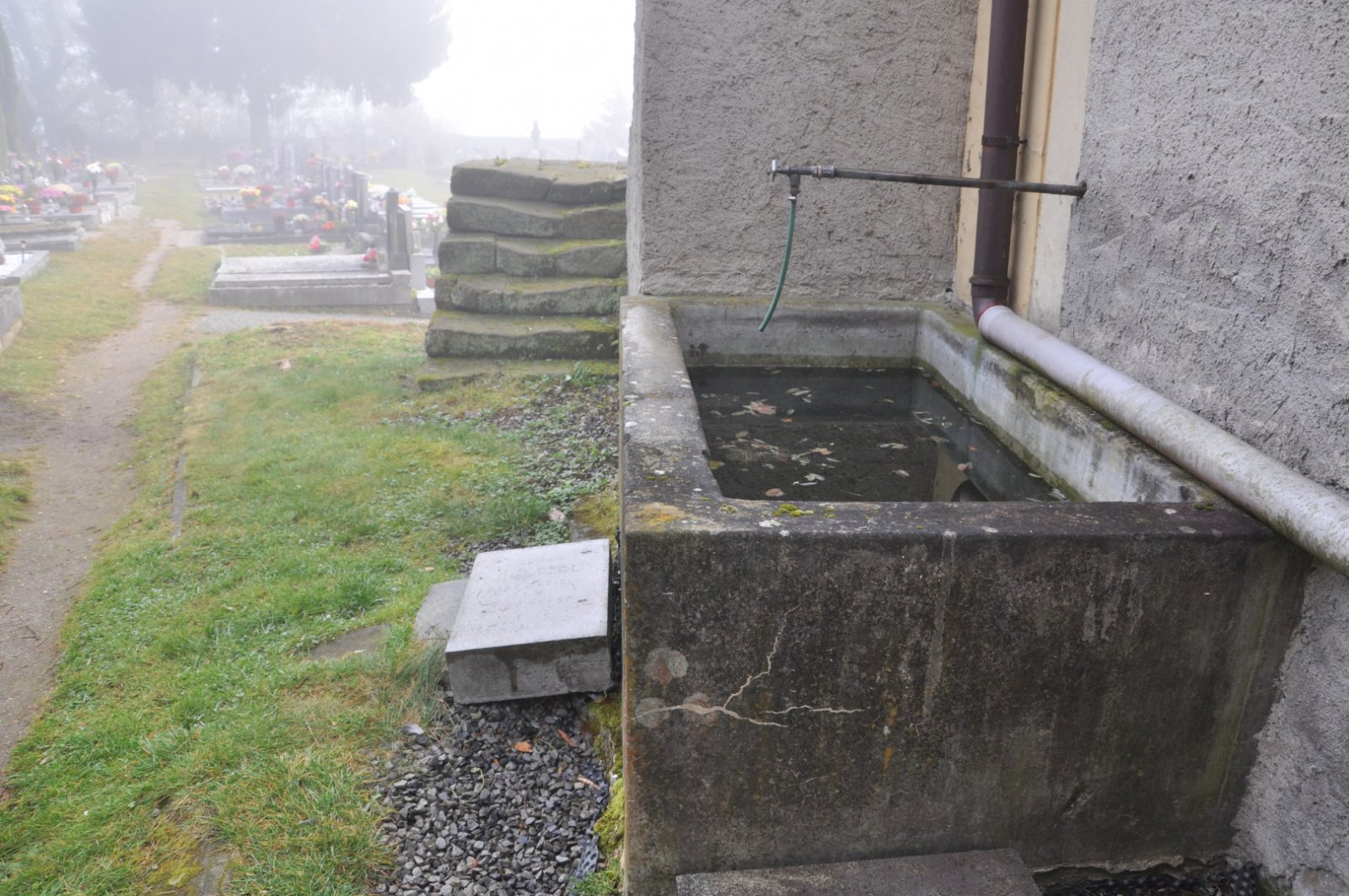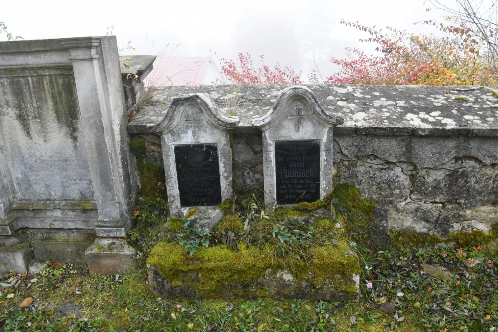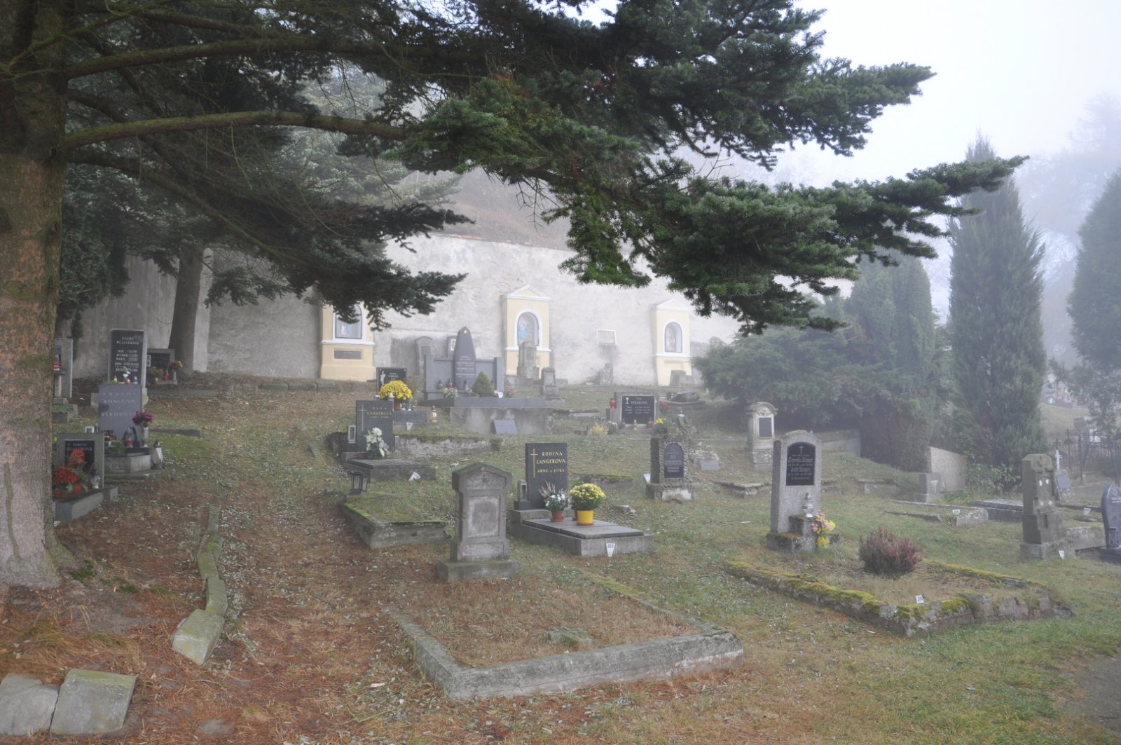 - Obnovena vč. náhrobků a desek na/u zdi