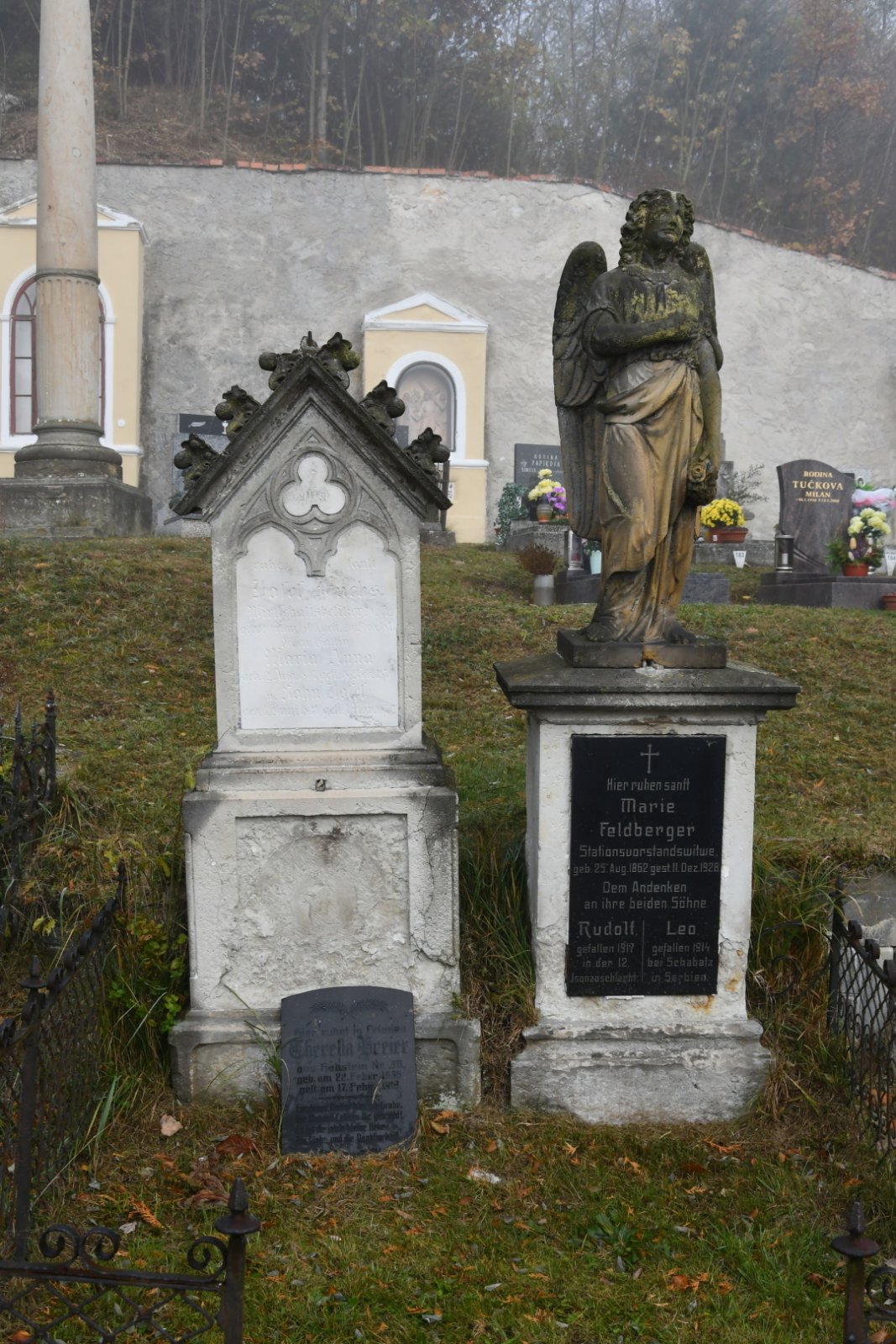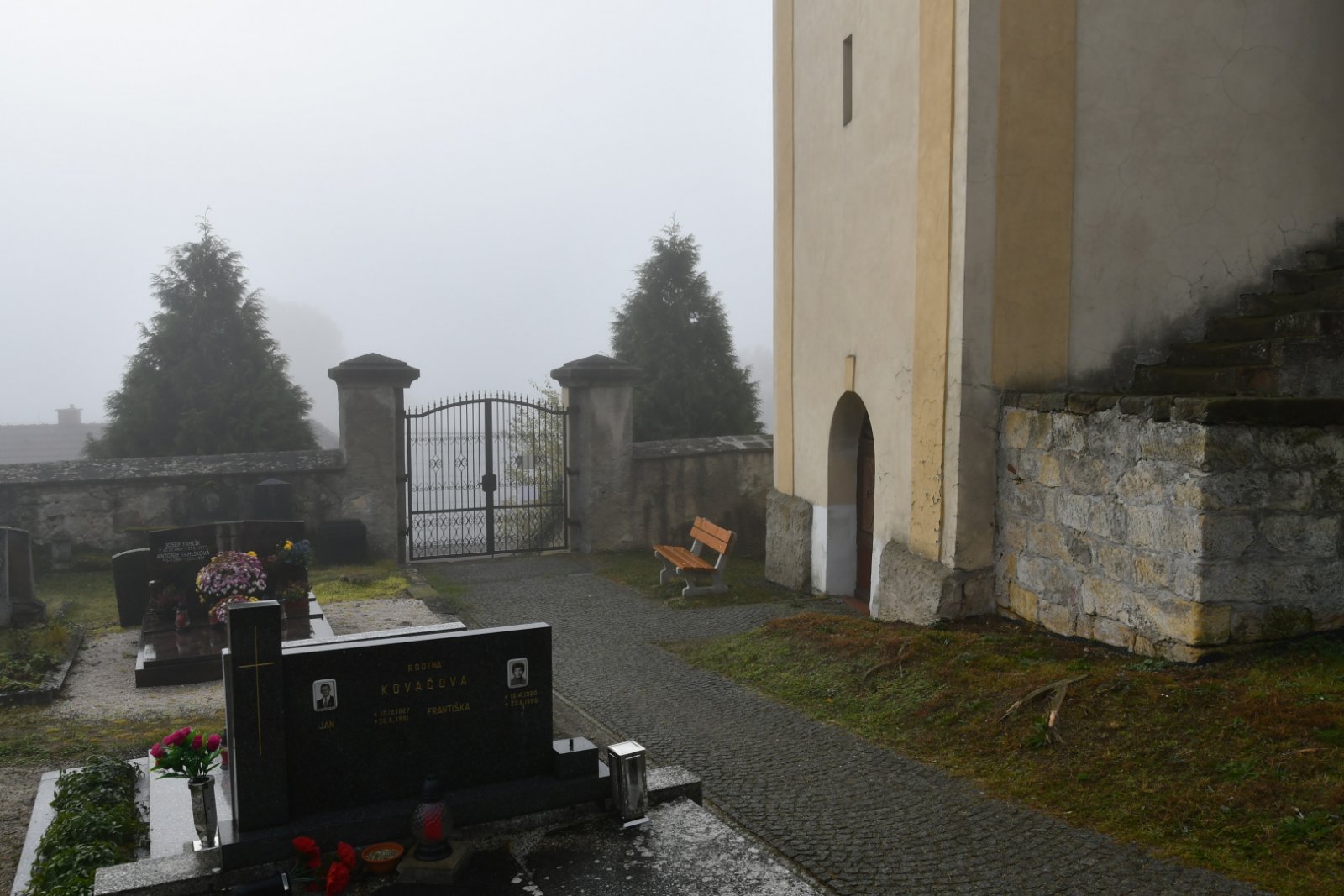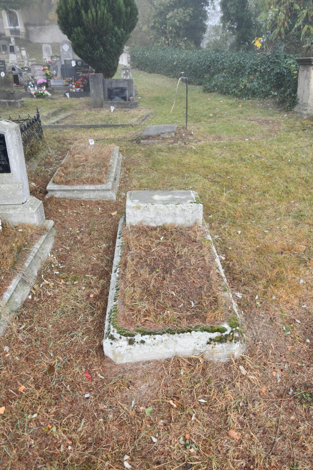 - Obnovena vč. náhrobků a desek na/u zdi