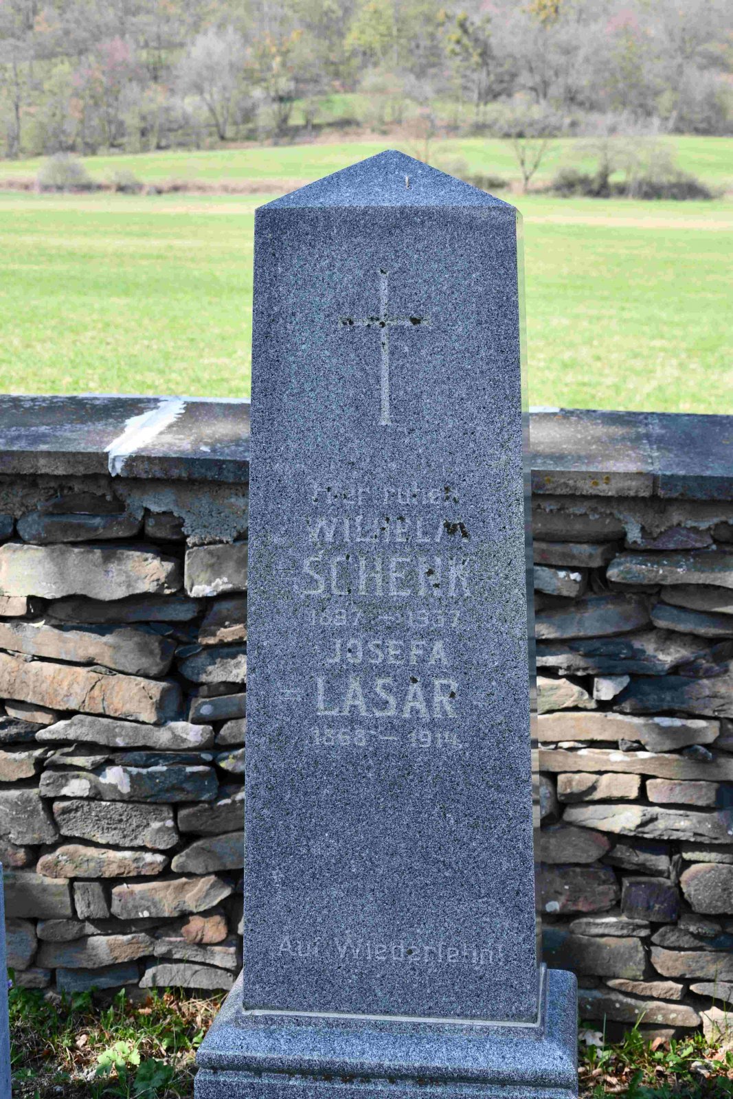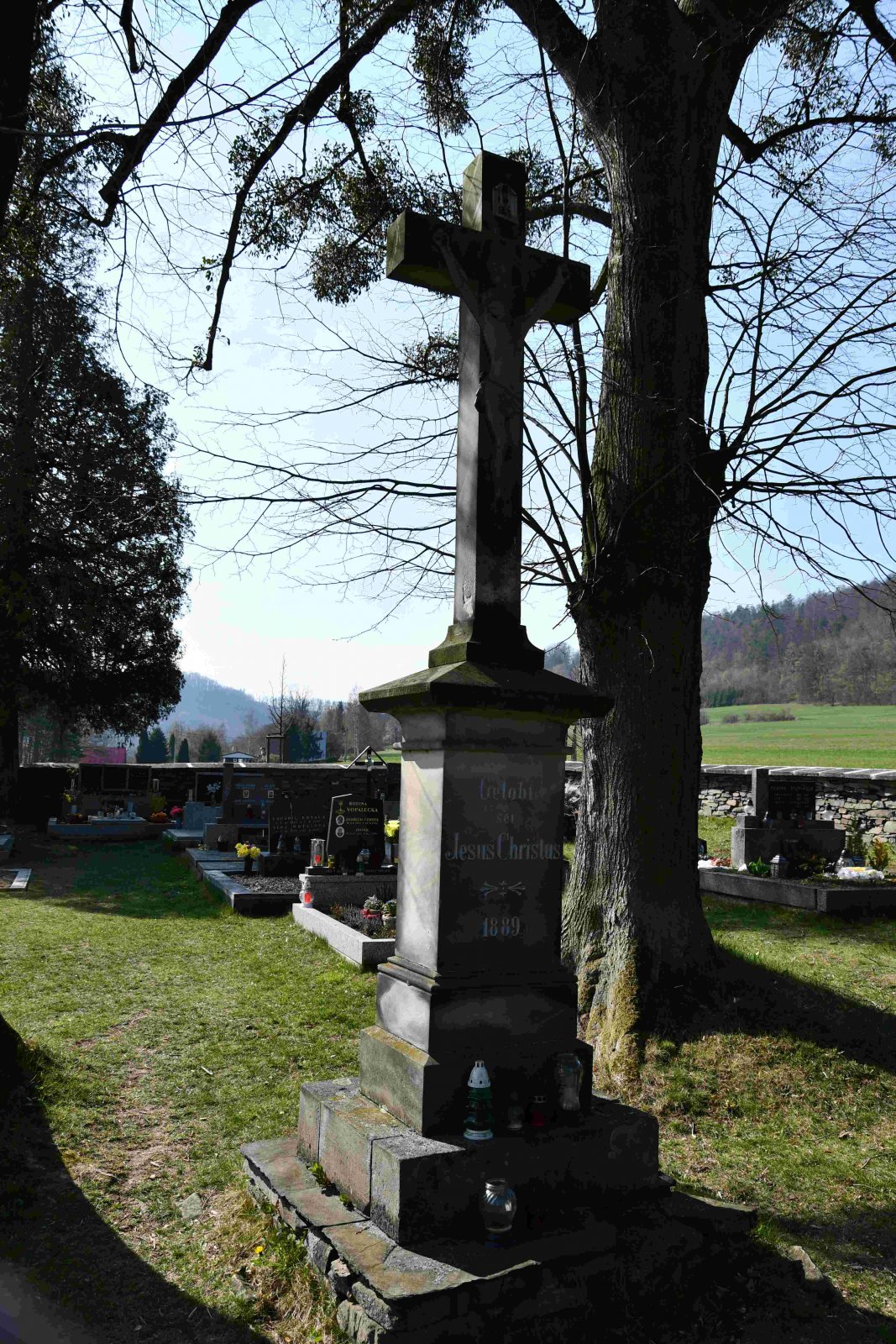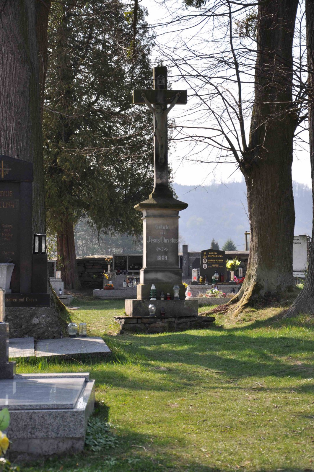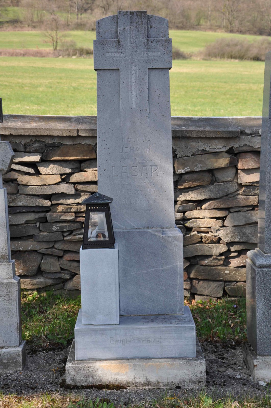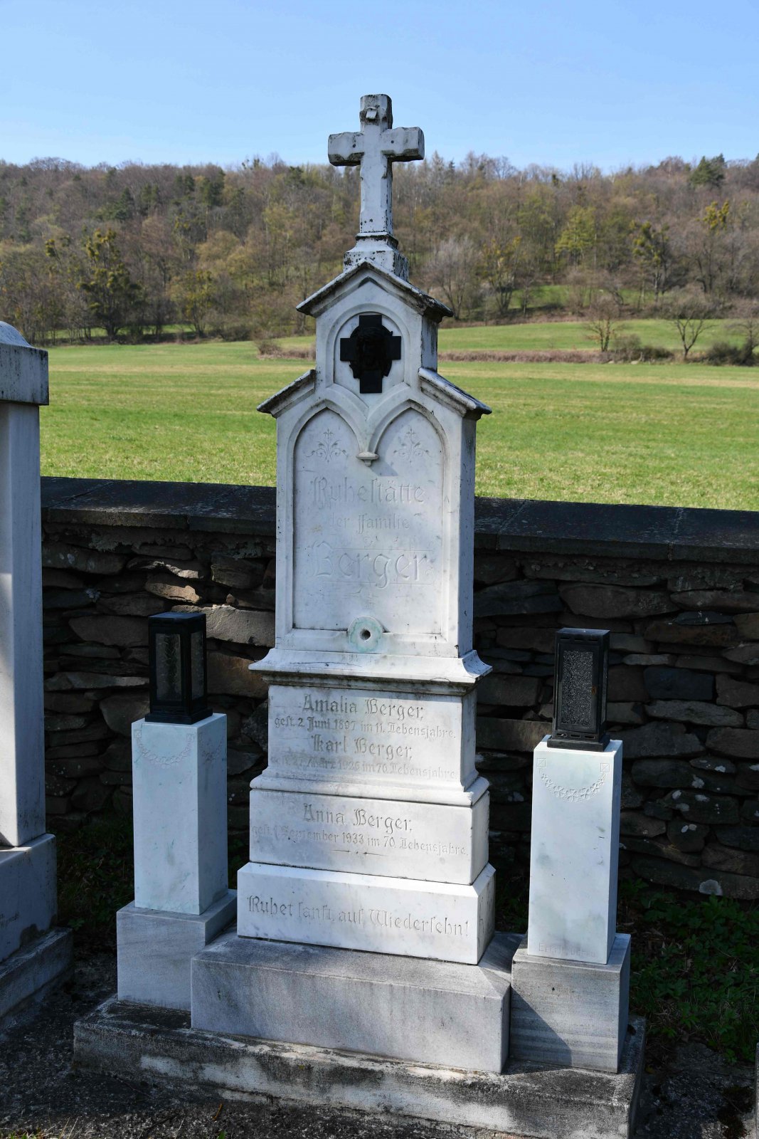 Malý stále využívaný hřbitov se nachází u polní cesty za obcí. Hřbitovní brána a márnice je udržovaná, hřbitov obklopuje kamenná zeď, uprostřed je velký kamenný centrální kříž. Hřbitov je celkově udržovaný. Část z poměrně velkého počtu původních německých náhrobků, které se na hřbitově stále nacházejí, je přemístěna a znovu postavena u hřbitovní zdi.