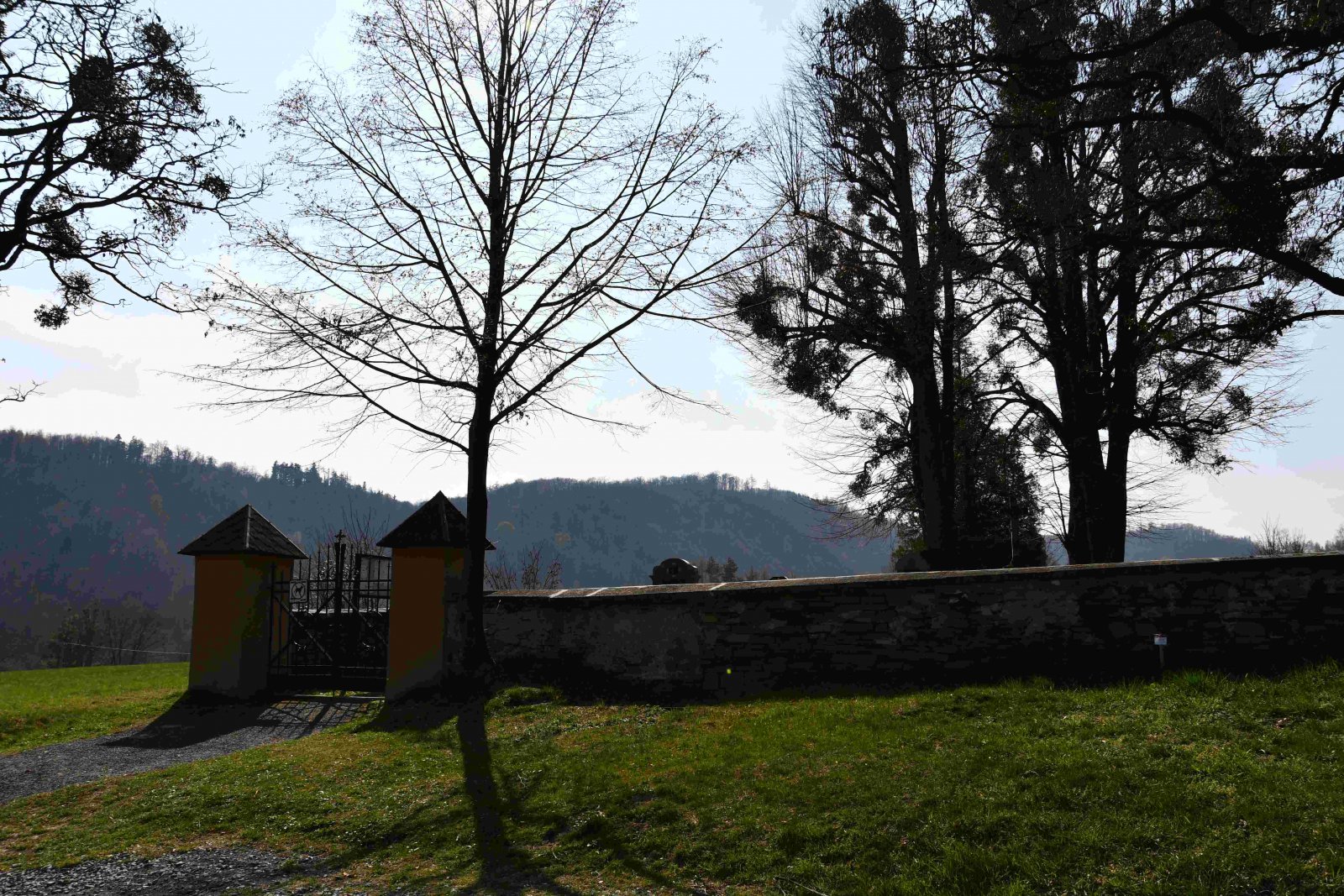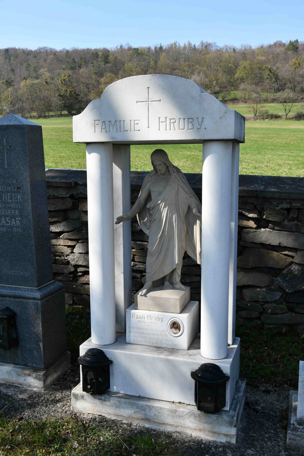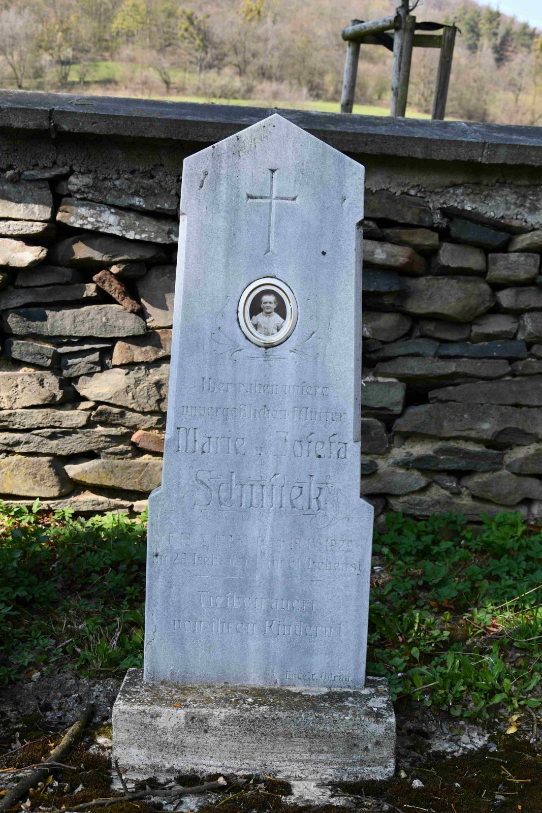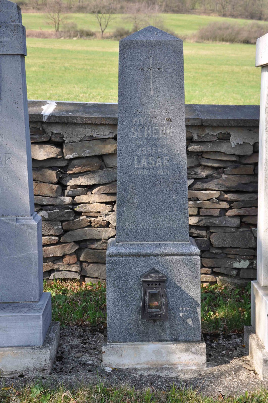 Malý stále využívaný hřbitov se nachází u polní cesty za obcí. Hřbitovní brána a márnice je udržovaná, hřbitov obklopuje kamenná zeď, uprostřed je velký kamenný centrální kříž. Hřbitov je celkově udržovaný. Část z poměrně velkého počtu původních německých náhrobků, které se na hřbitově stále nacházejí, je přemístěna a znovu postavena u hřbitovní zdi.