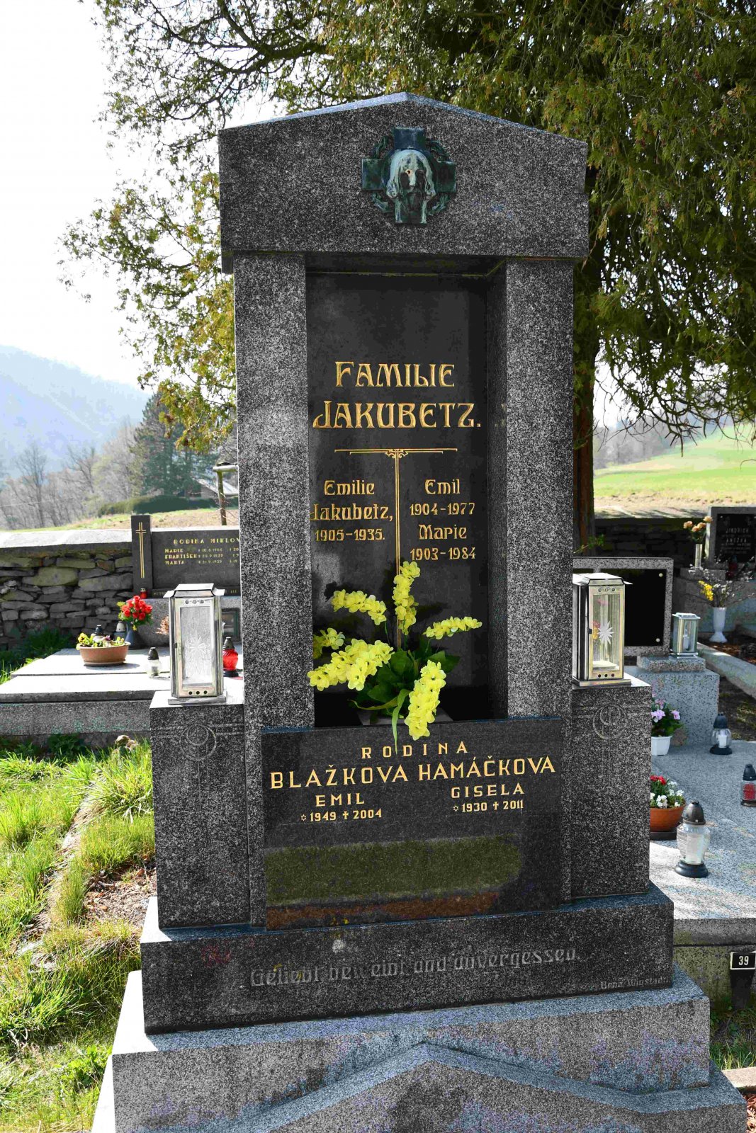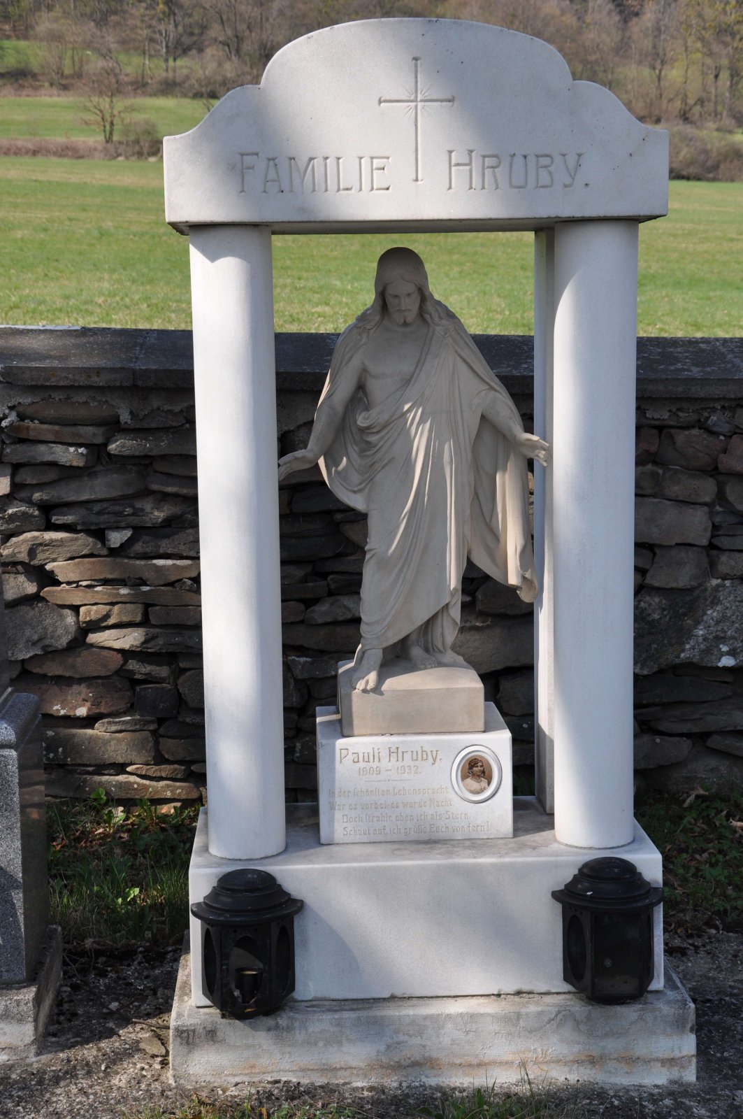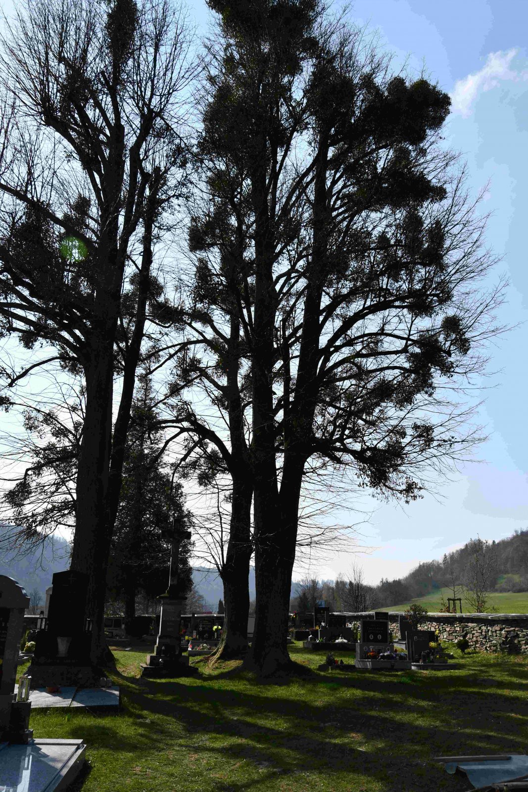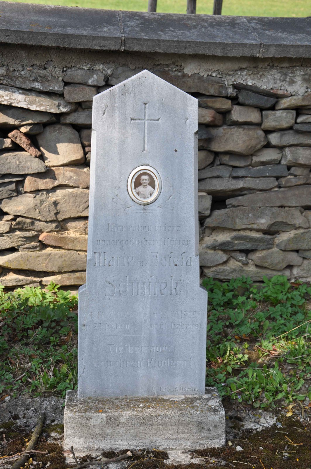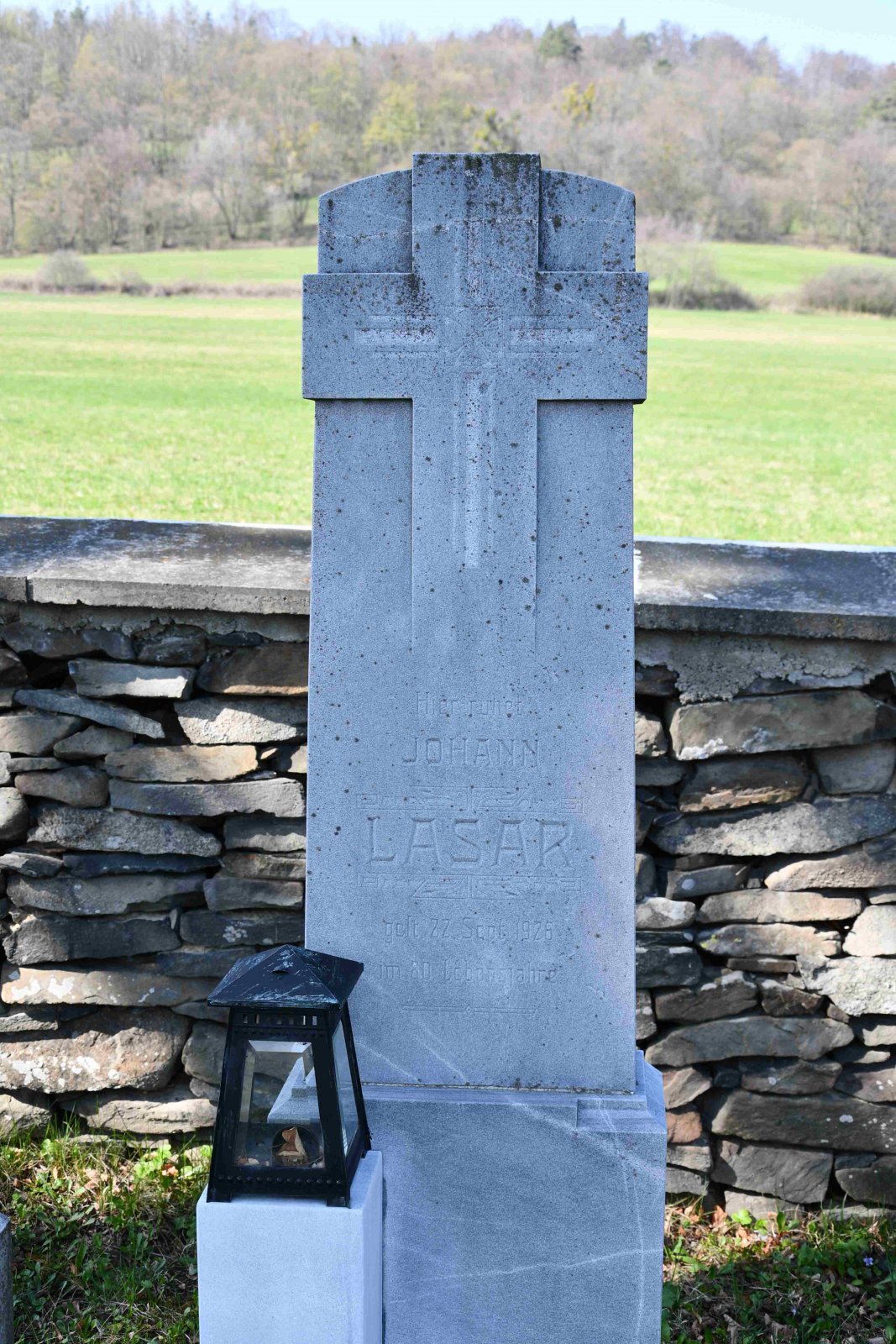 Malý stále využívaný hřbitov se nachází u polní cesty za obcí. Hřbitovní brána a márnice je udržovaná, hřbitov obklopuje kamenná zeď, uprostřed je velký kamenný centrální kříž. Hřbitov je celkově udržovaný. Část z poměrně velkého počtu původních německých náhrobků, které se na hřbitově stále nacházejí, je přemístěna a znovu postavena u hřbitovní zdi.