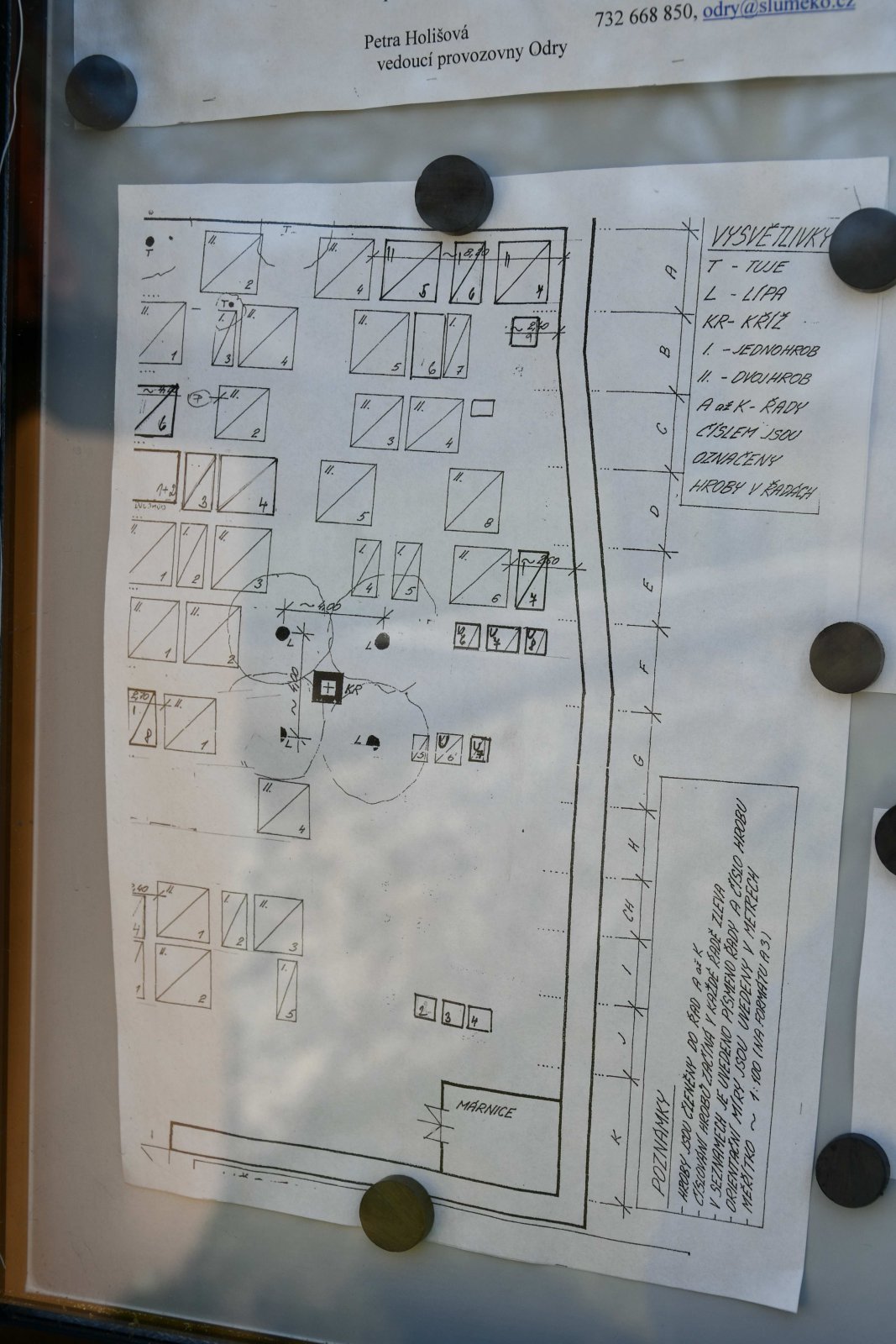 | Město Odry Městský úřad Odry Masarykovo náměstí 16/25, 742 35 Odry Tel.: +420 556 768 111 / E-mail: podatelna@odry.cz URL: www.odry.cz Správce hřbitova Slumeko s.r.o. Tel.: +420 731 905 810, E-mail: odry@slumeko.cz | |