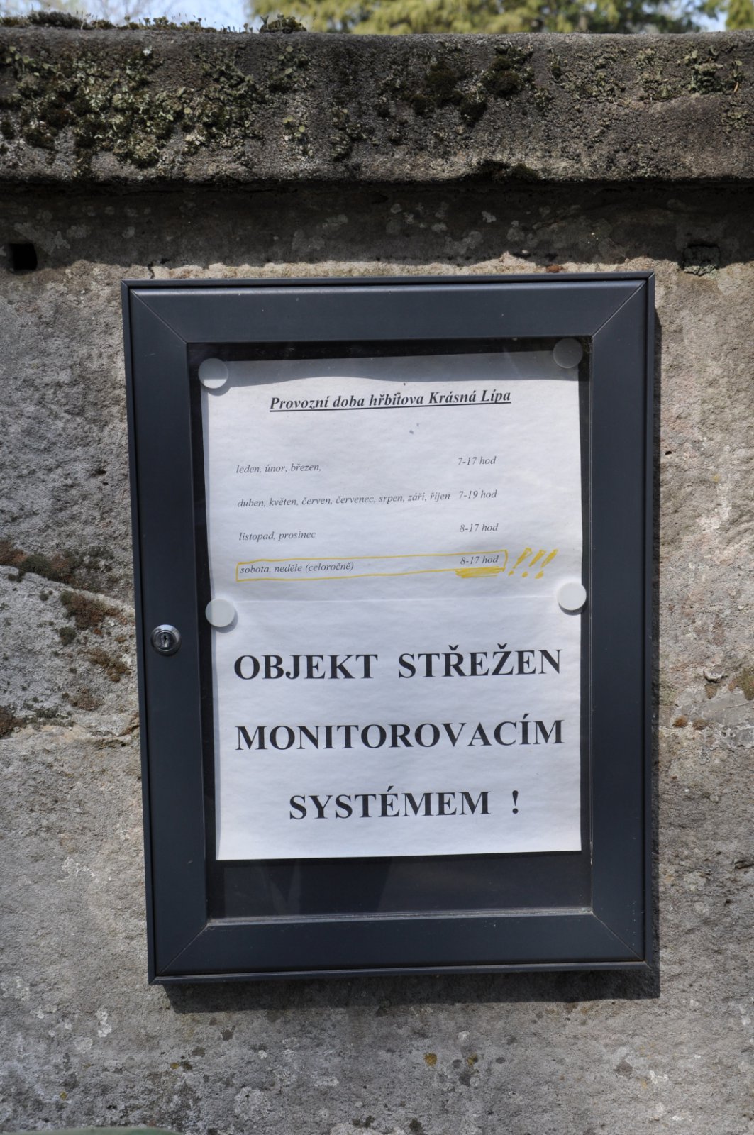 • Otevírací doba hřbitova vyvěšena