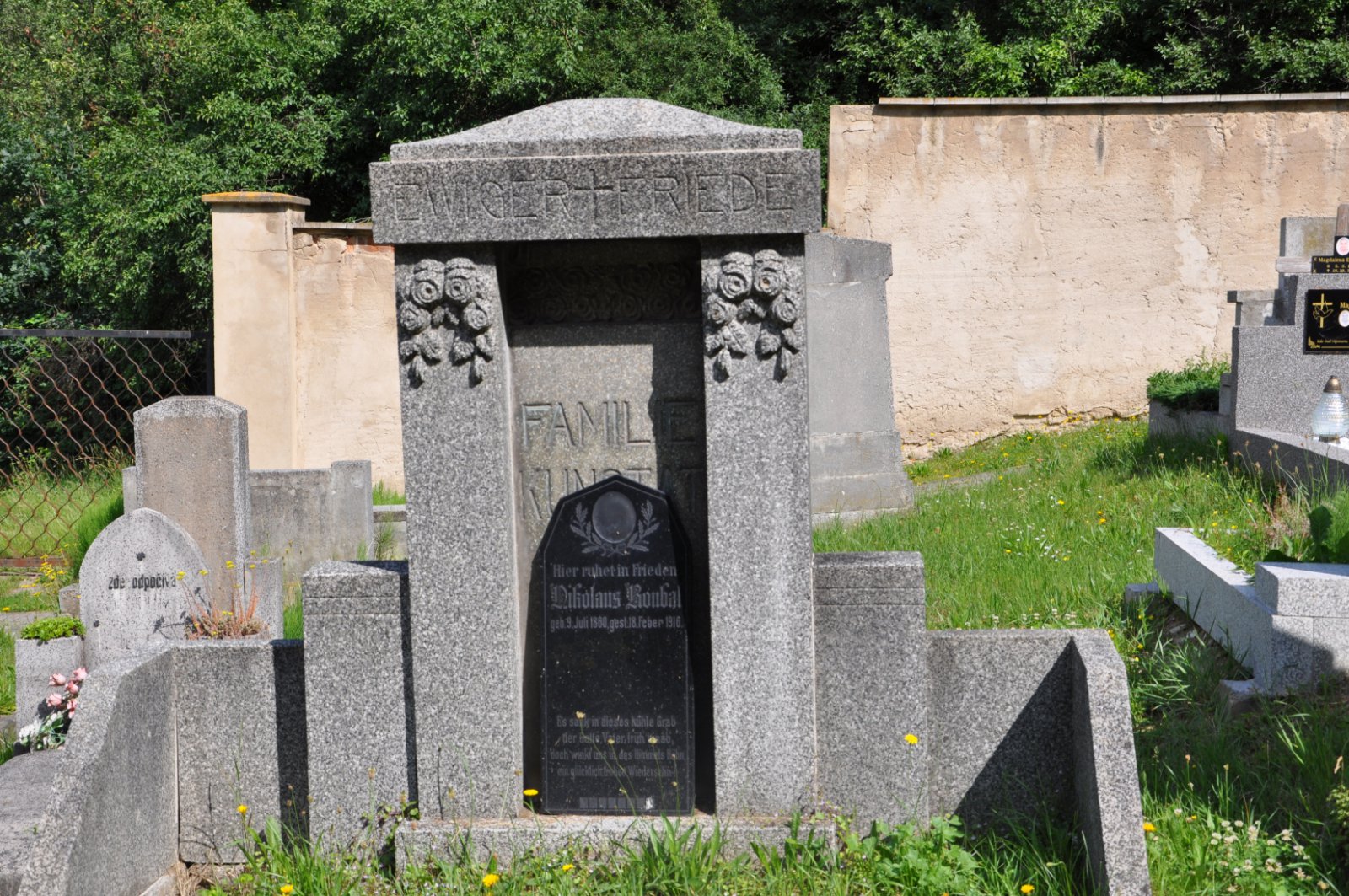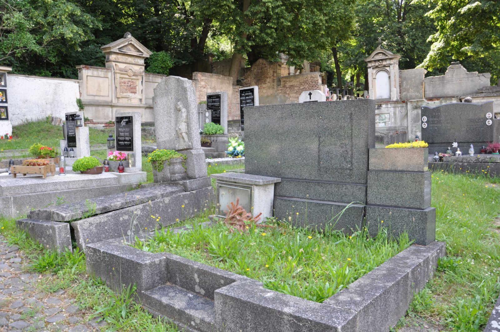 - Obnovena vč. náhrobků a desek na/u zdi