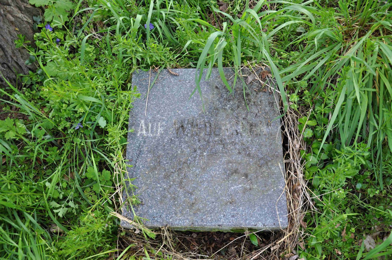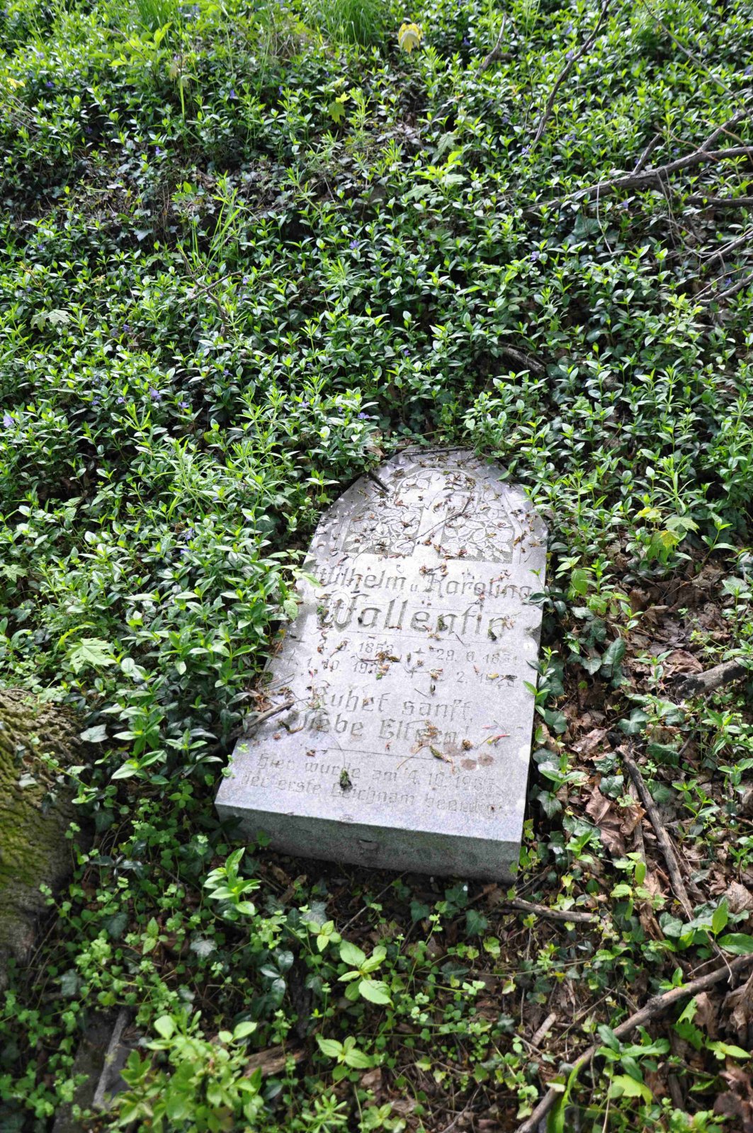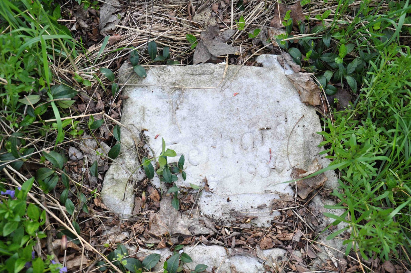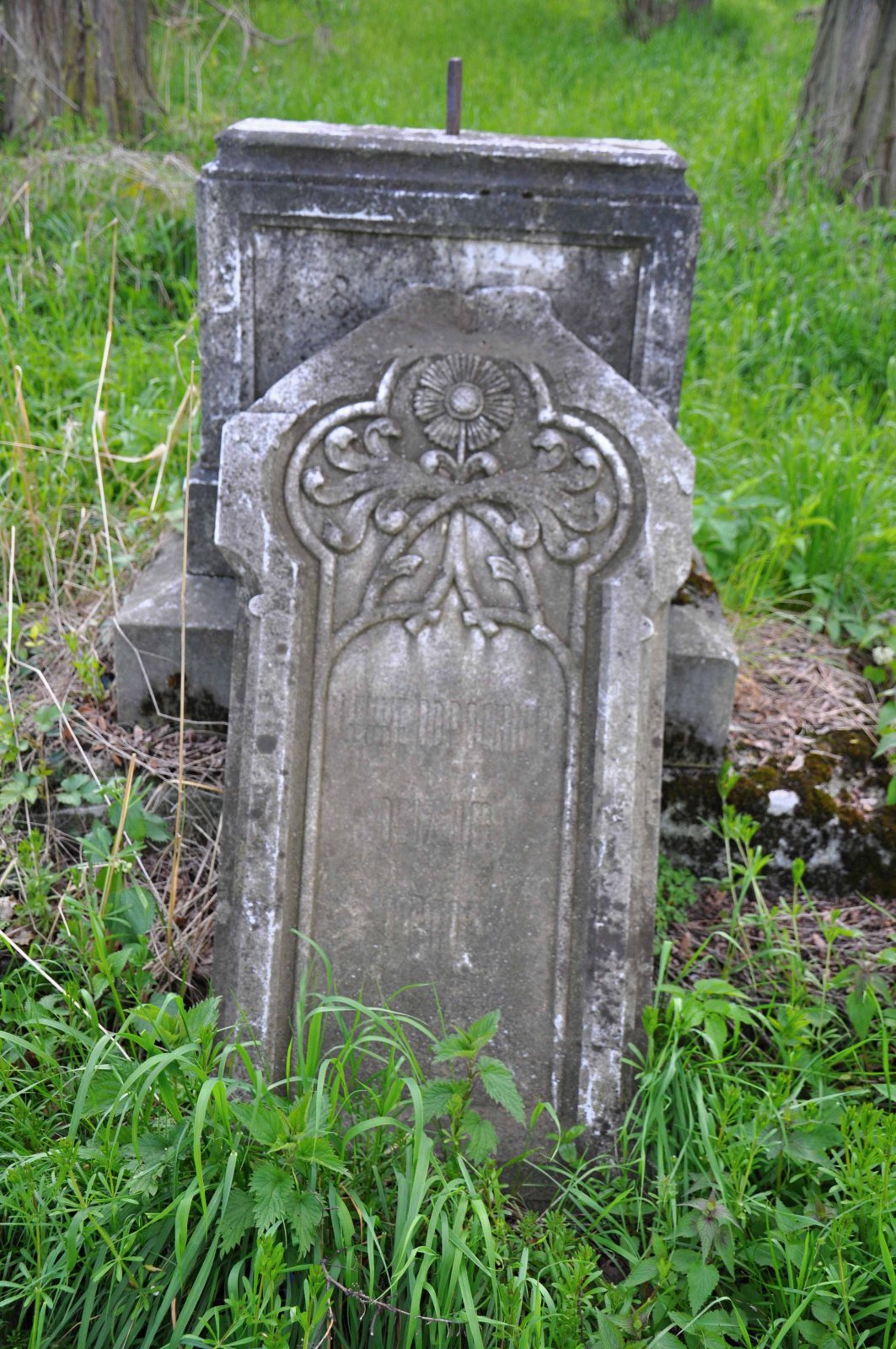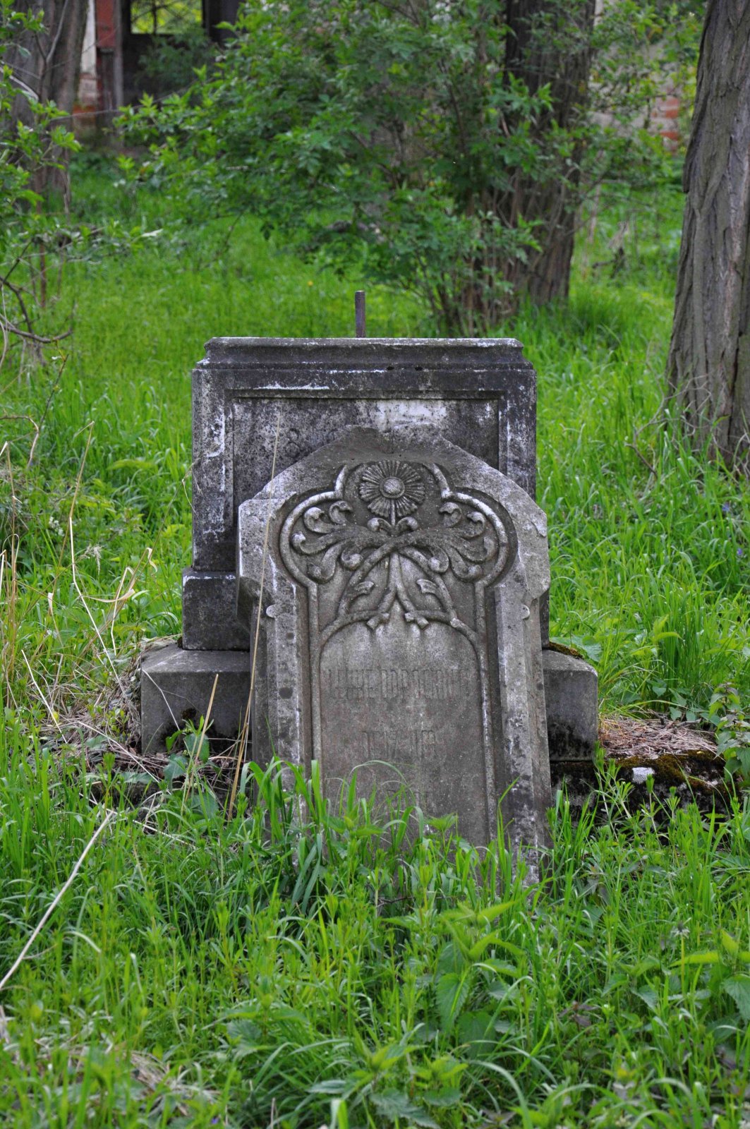 Zničený hřbitov se nachází za obcí u polní cesty.