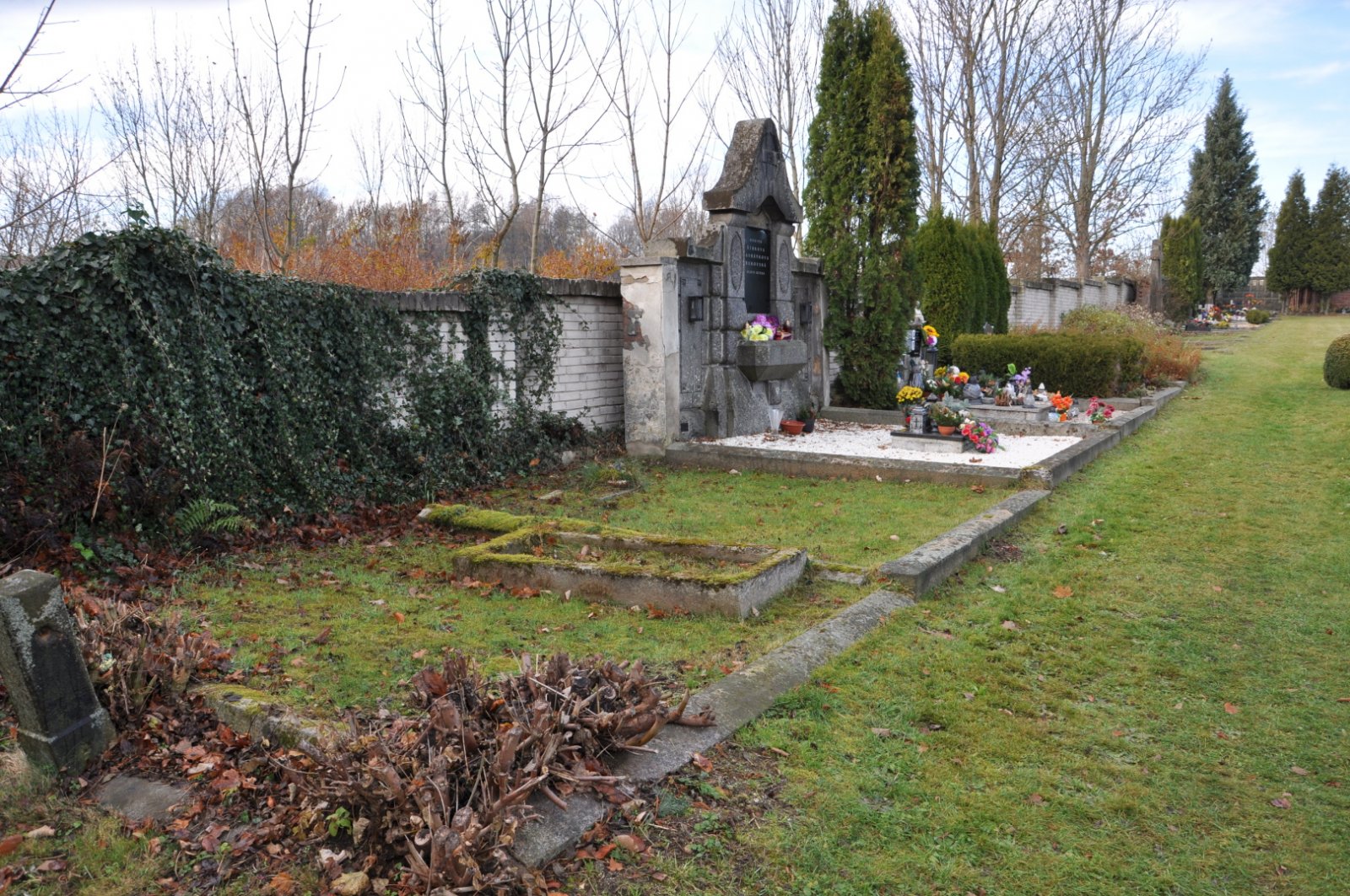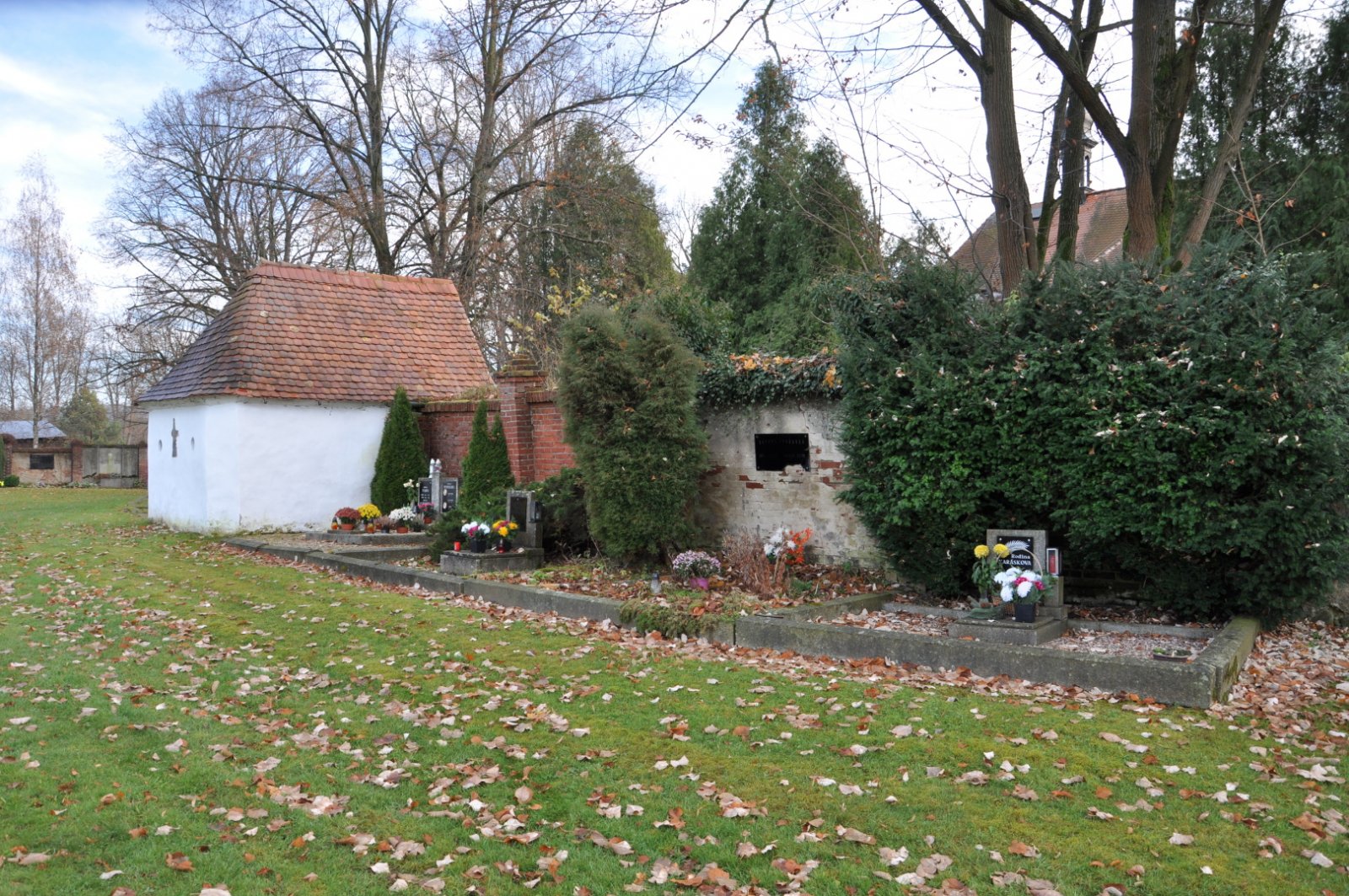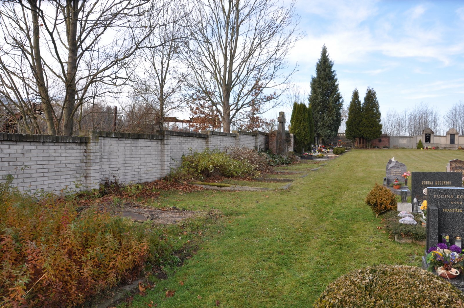 - Vyčištěná plocha hřbitova