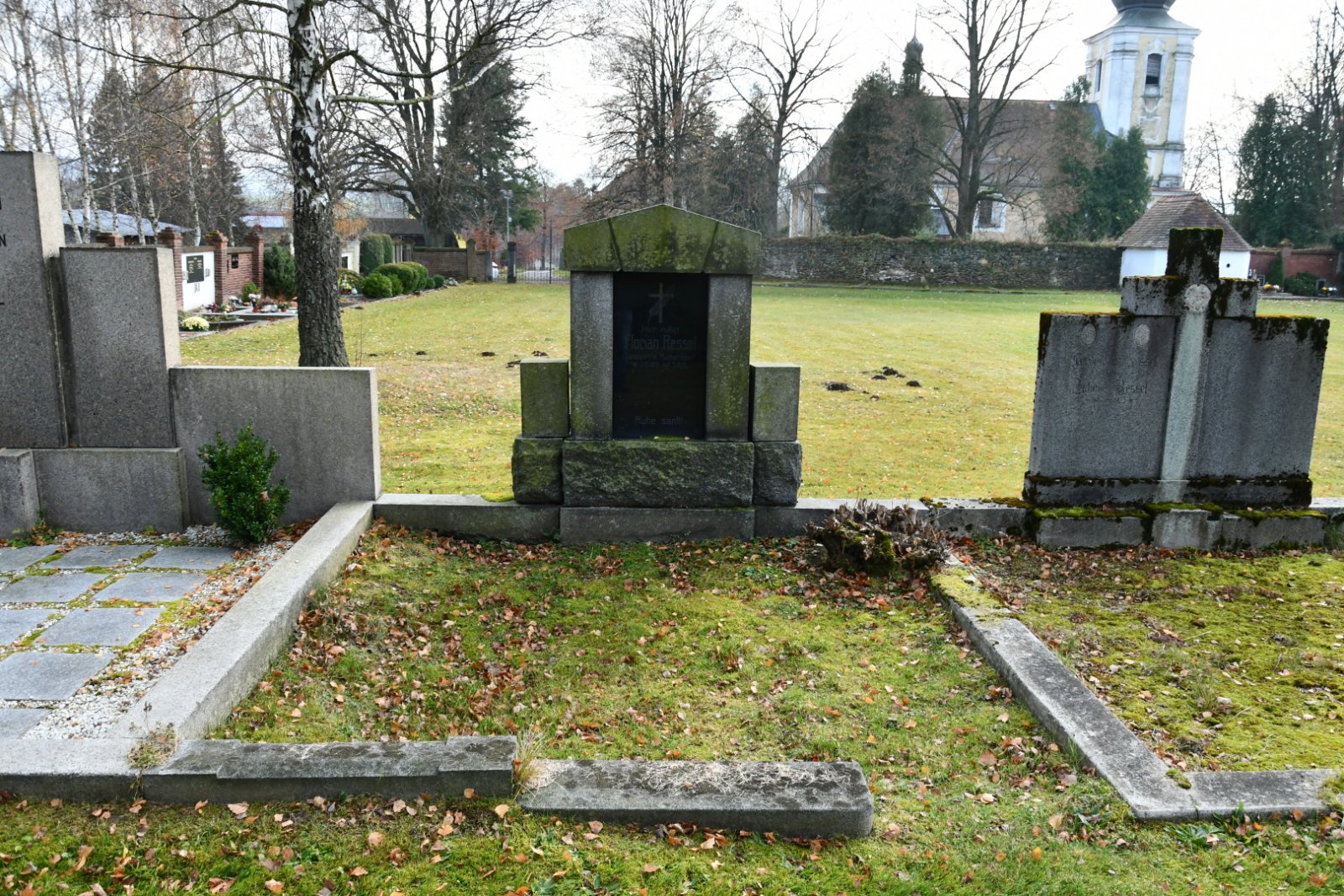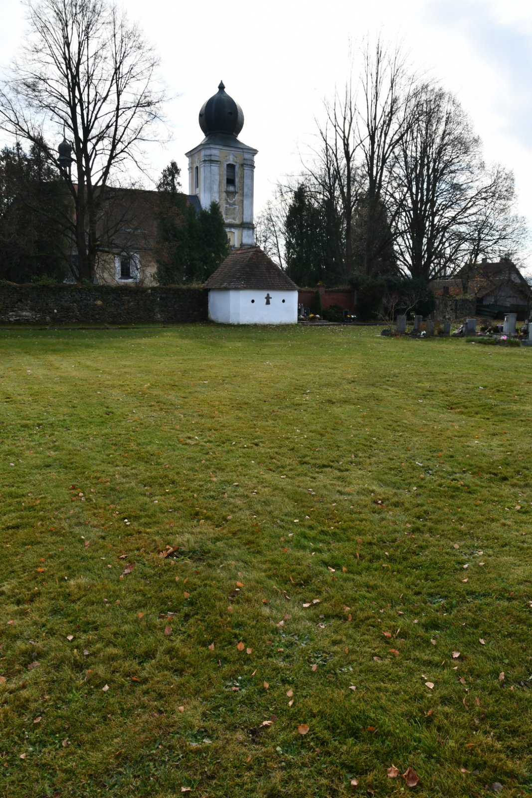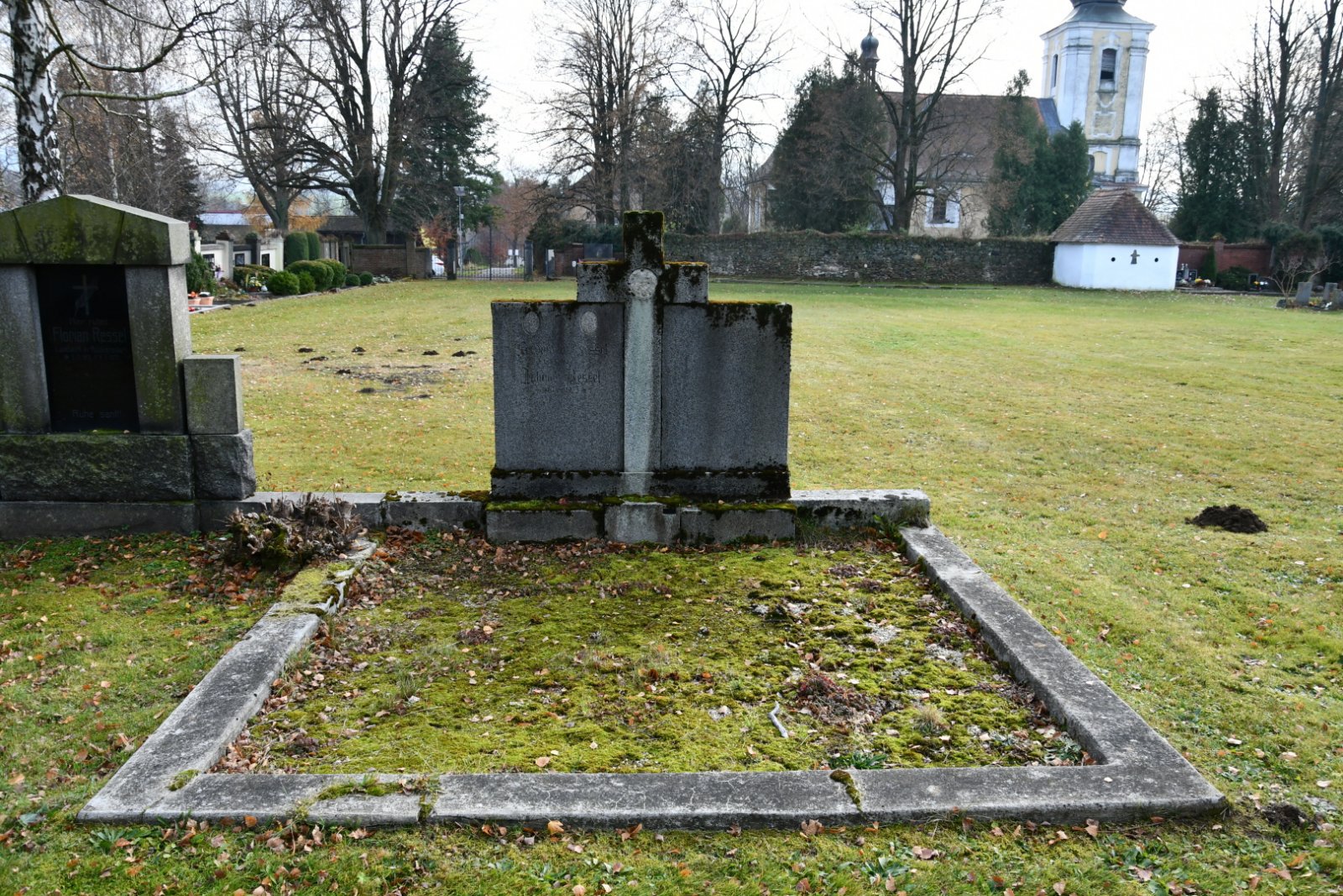 - Vyčištěná plocha hřbitova