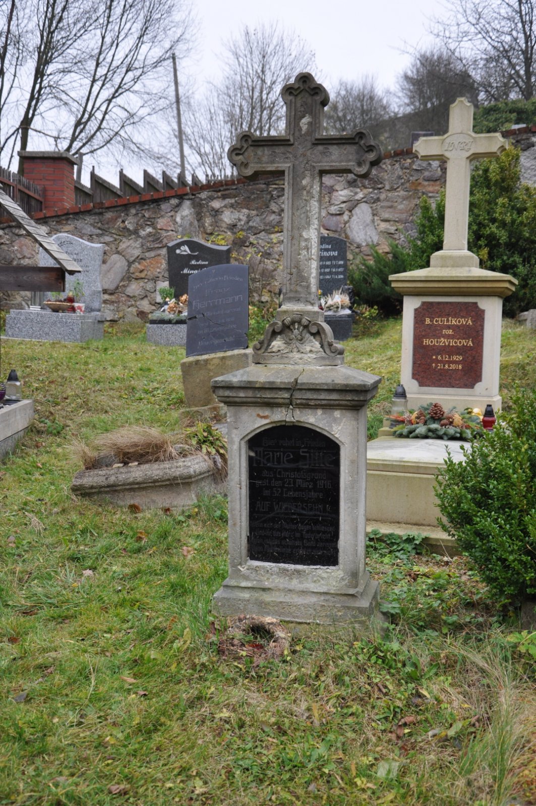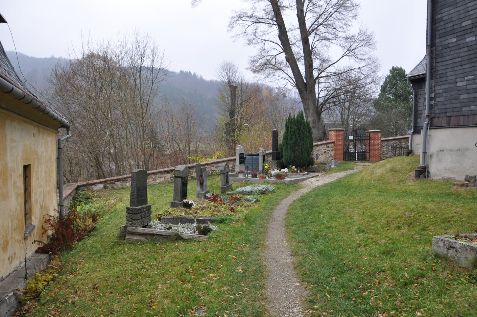 - Nová (nepůvodní) hřbitovní zeď