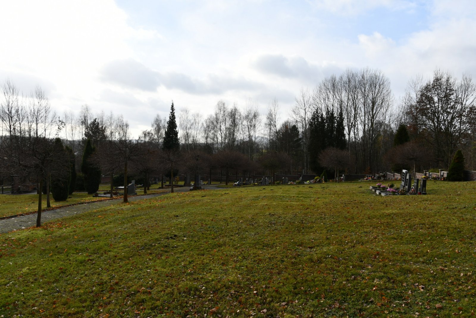 - Vyčištěná plocha hřbitova