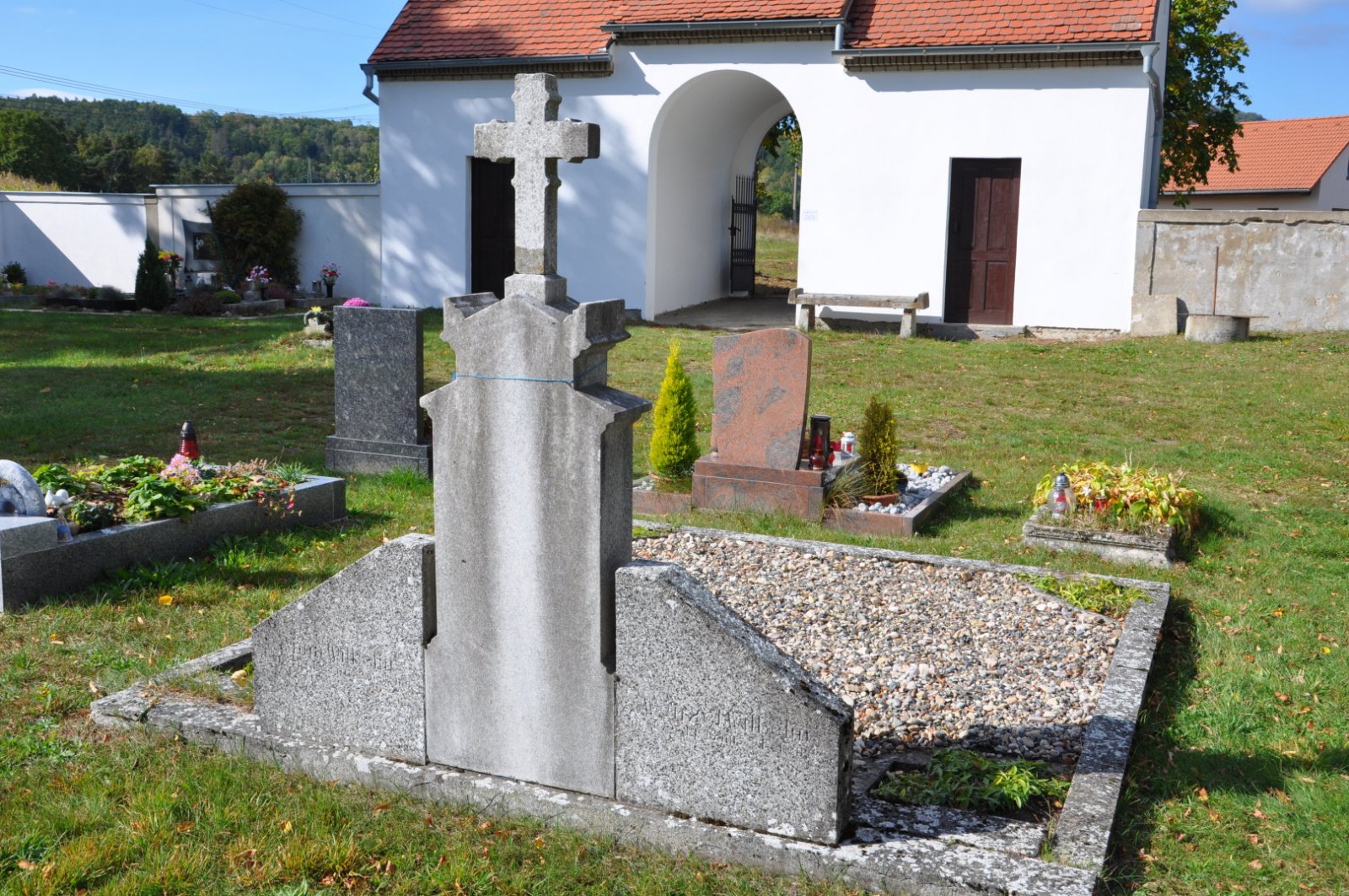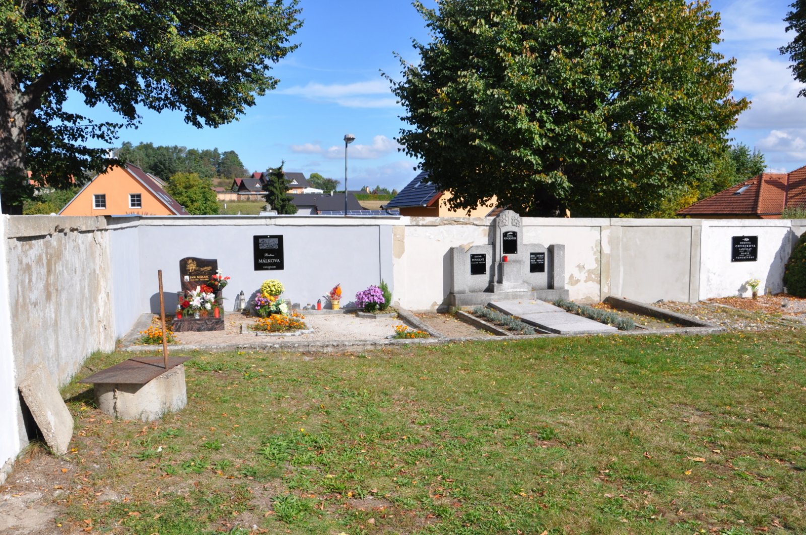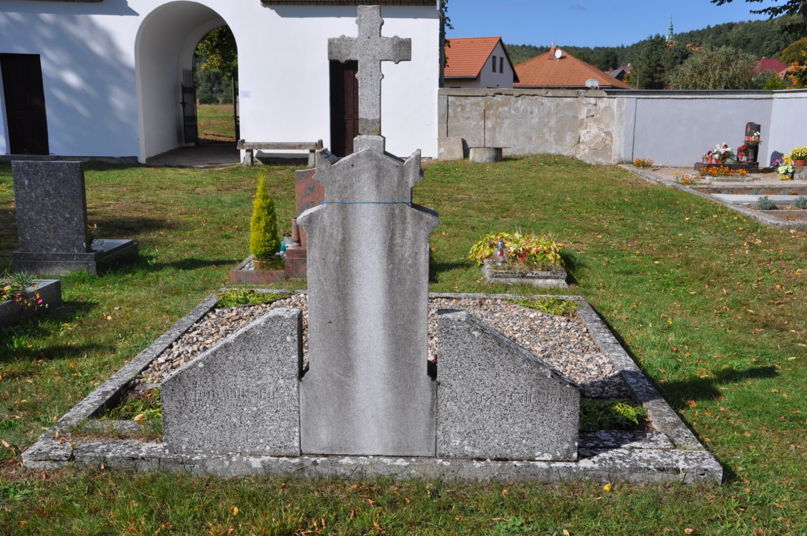 - Obnovena vč. náhrobků a desek na/u zdi