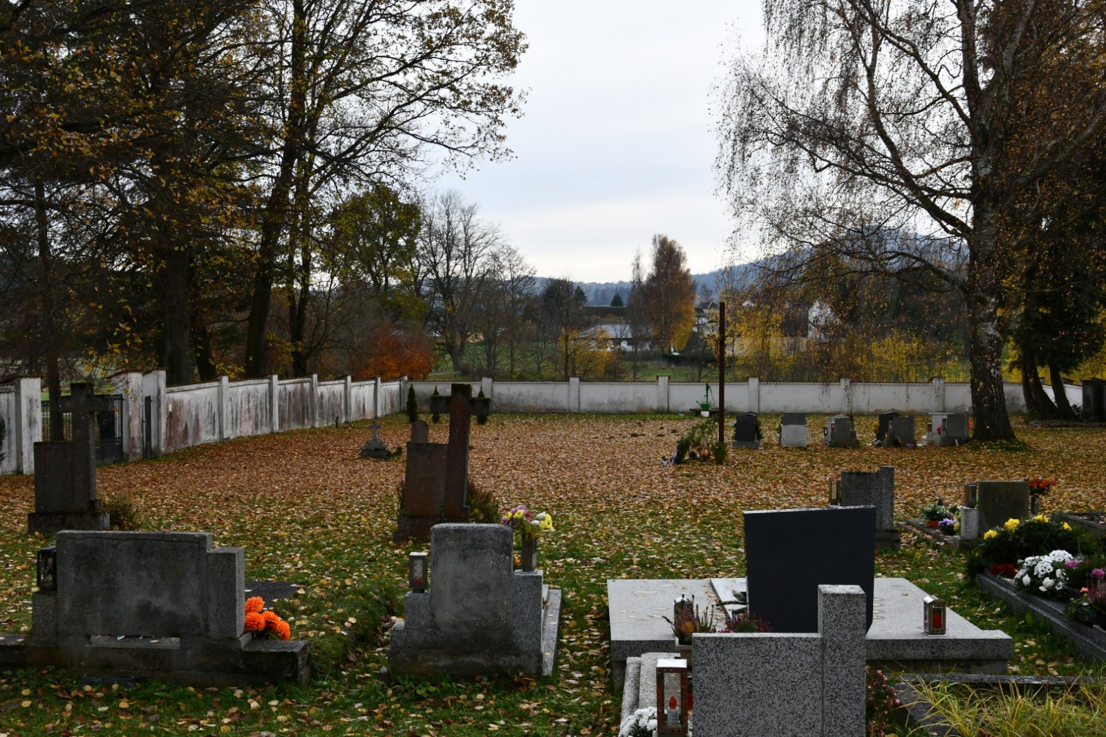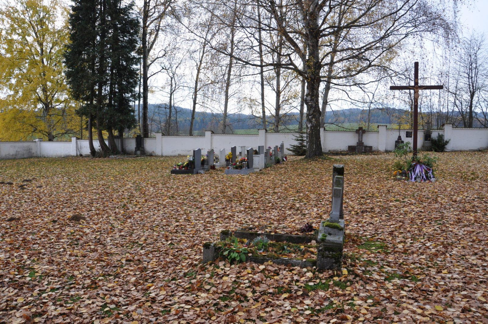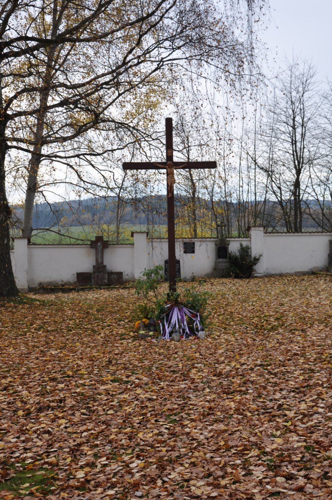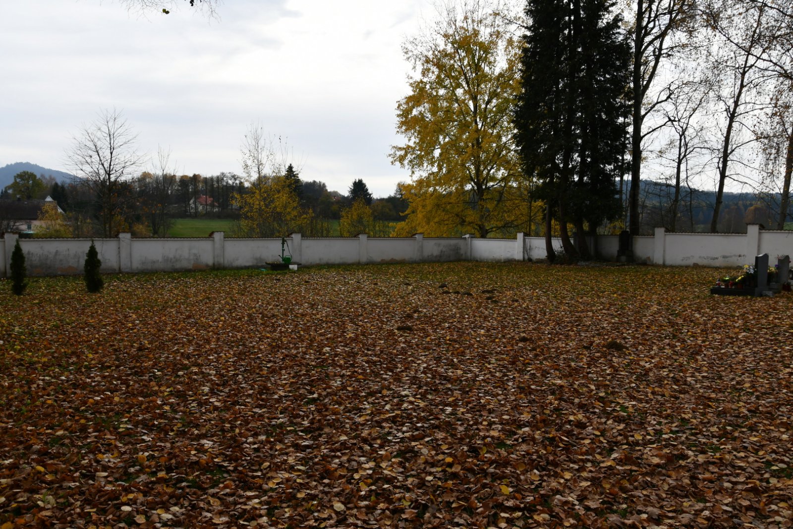 - Vyčištěná plocha hřbitova