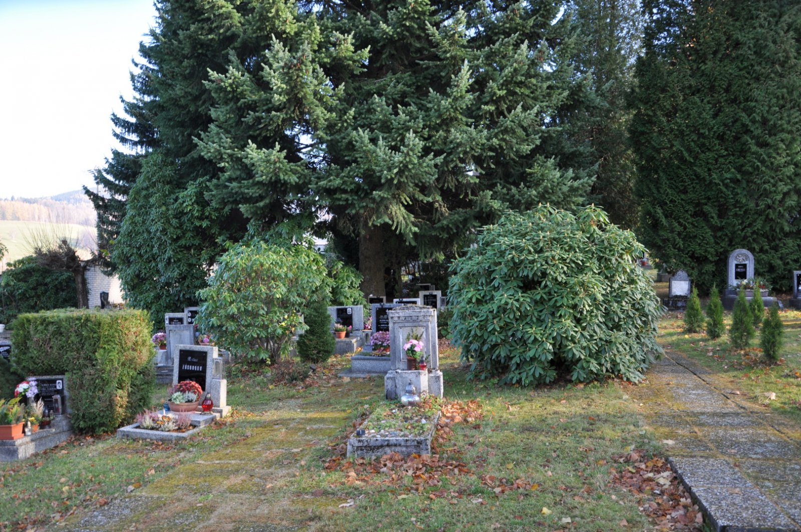 - Vyčištěná plocha hřbitova