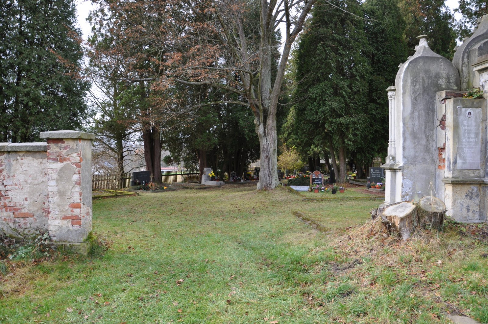 - Nová (nepůvodní) hřbitovní zeď