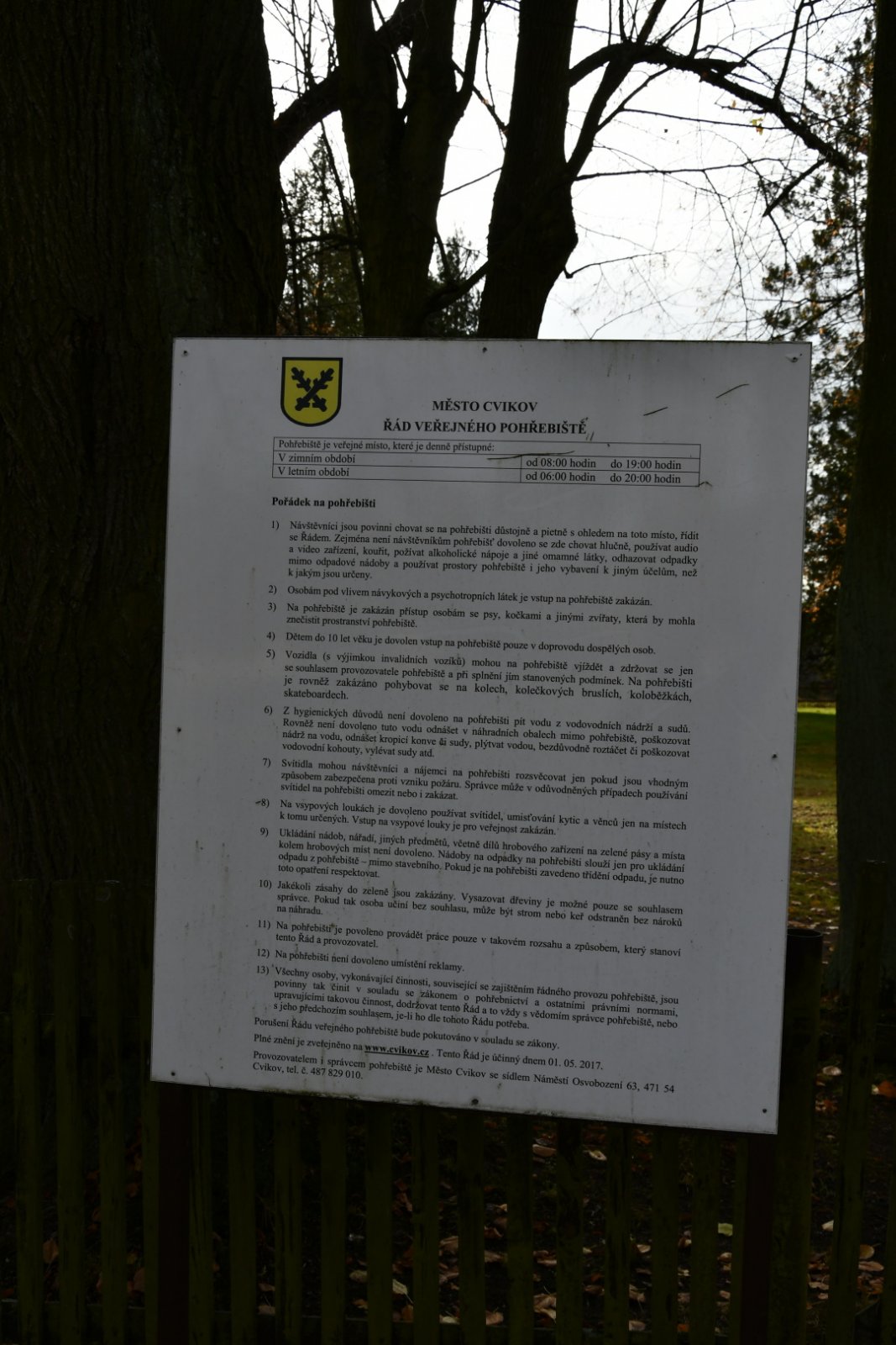 - Kontakt na správce hřbitova na místě