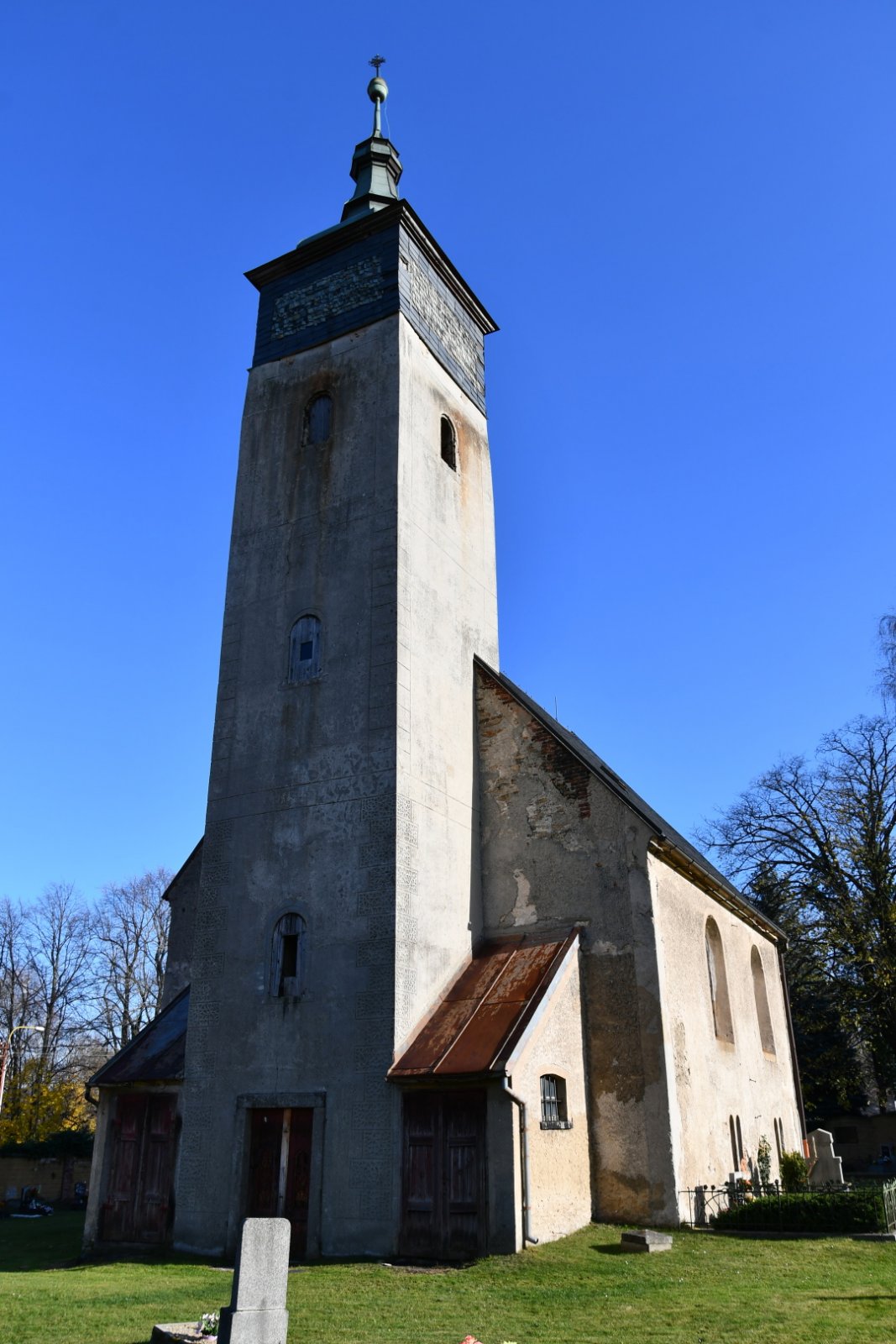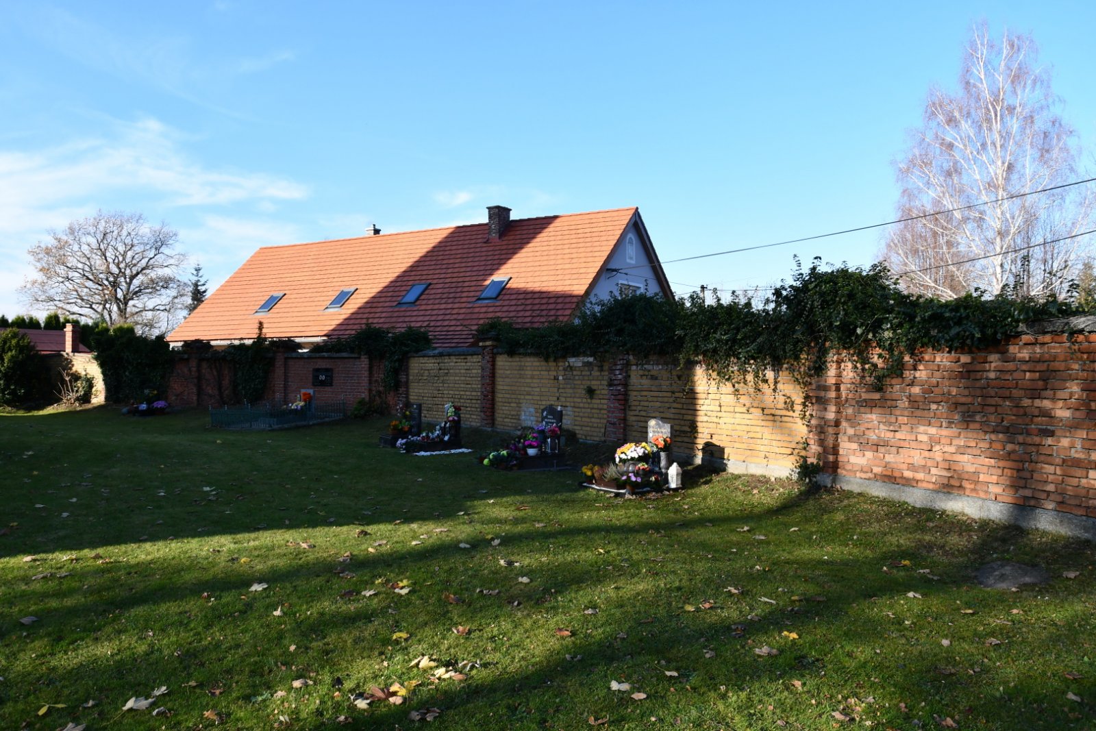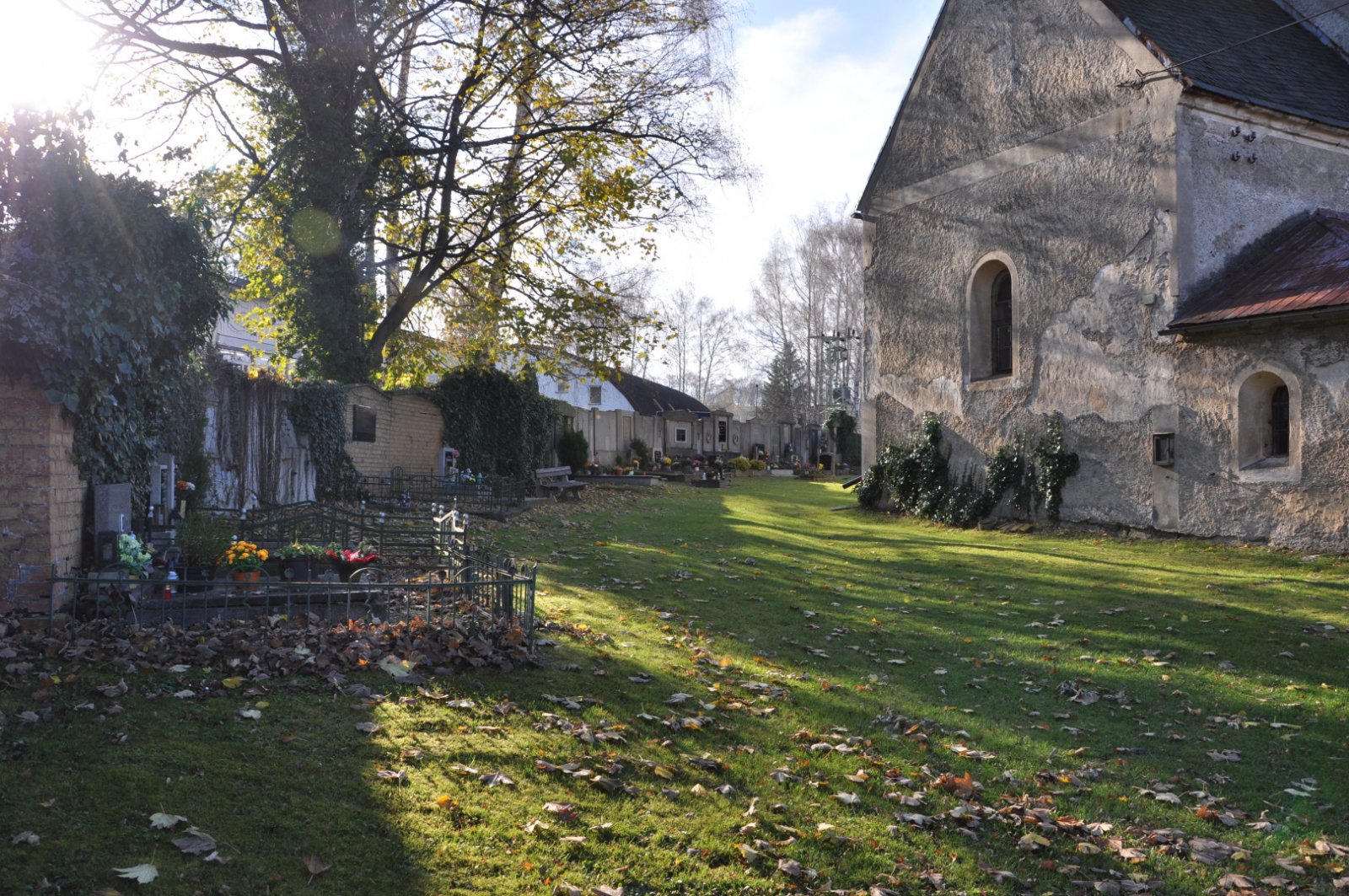 - Vyčištěná plocha hřbitova