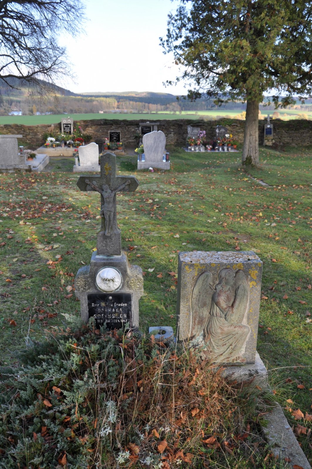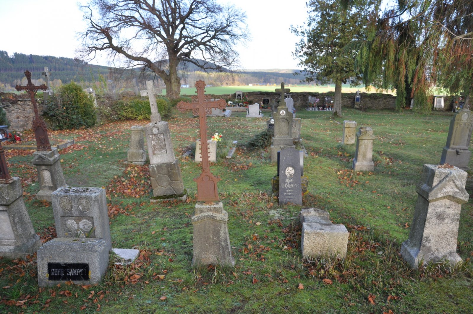 - Vyčištěná plocha hřbitova