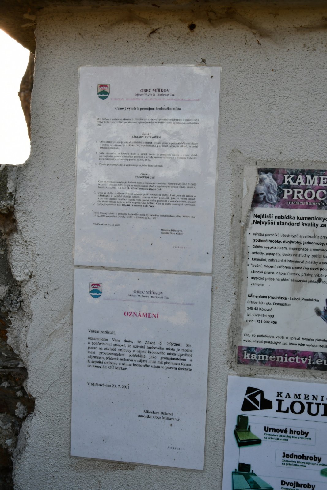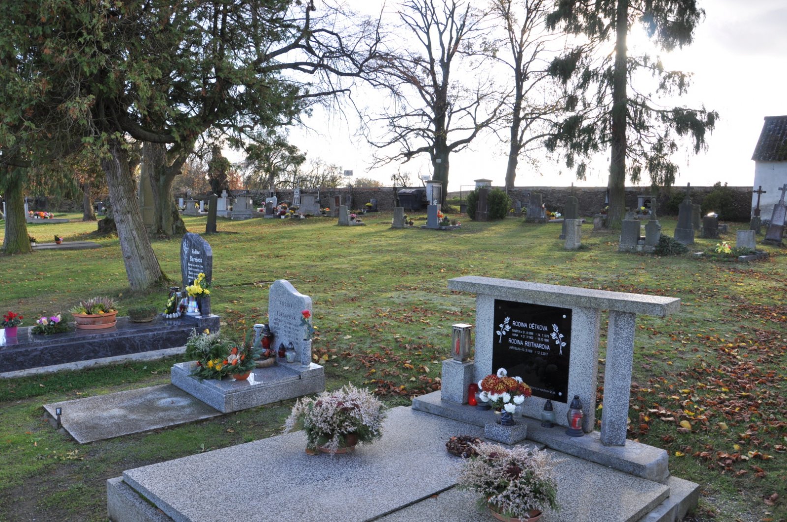 - Kontakt na správce hřbitova na místě