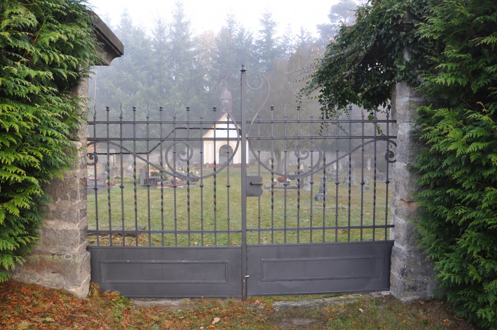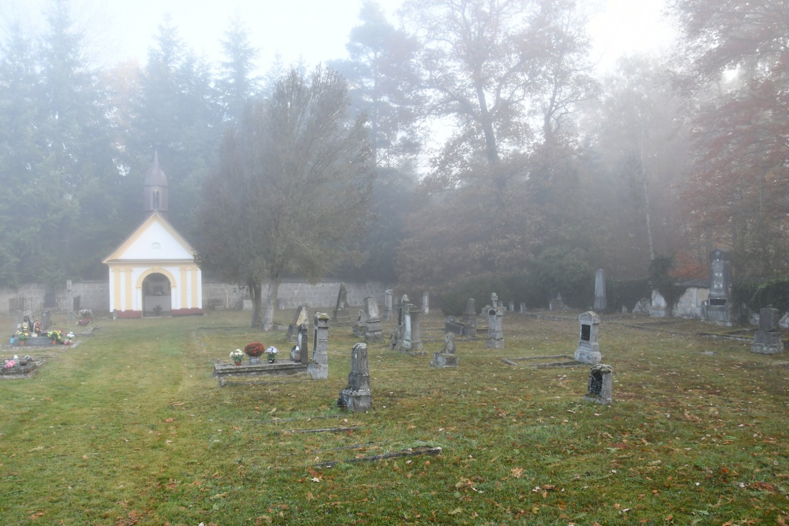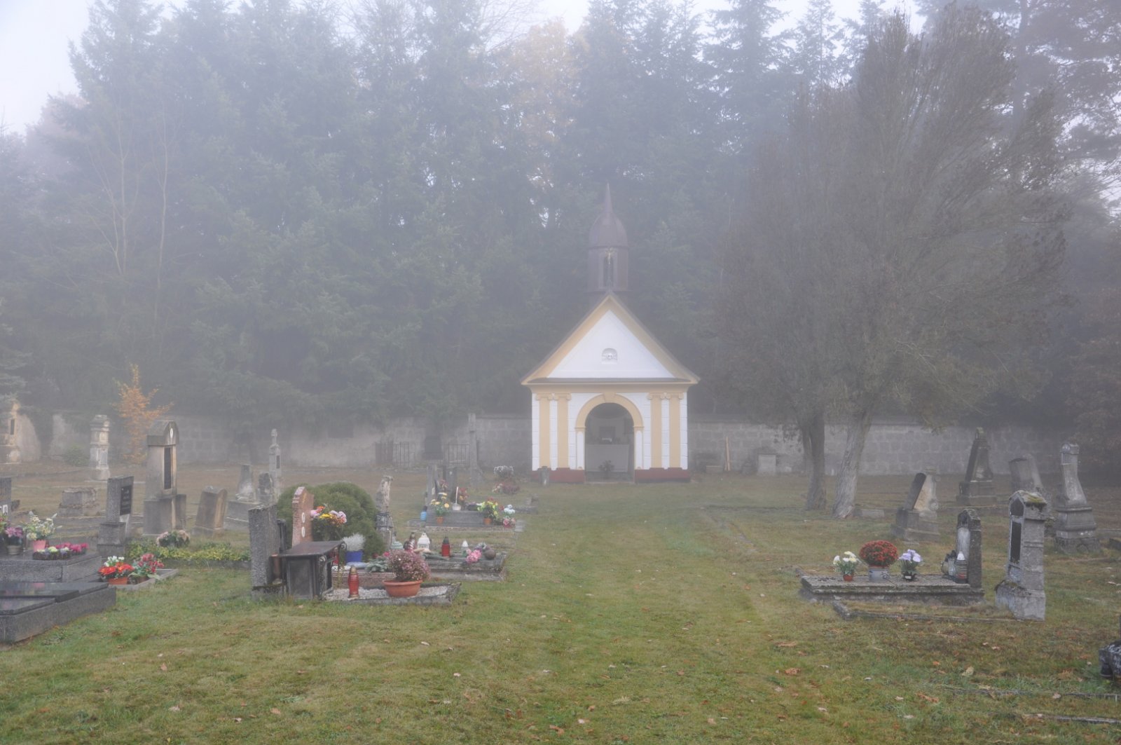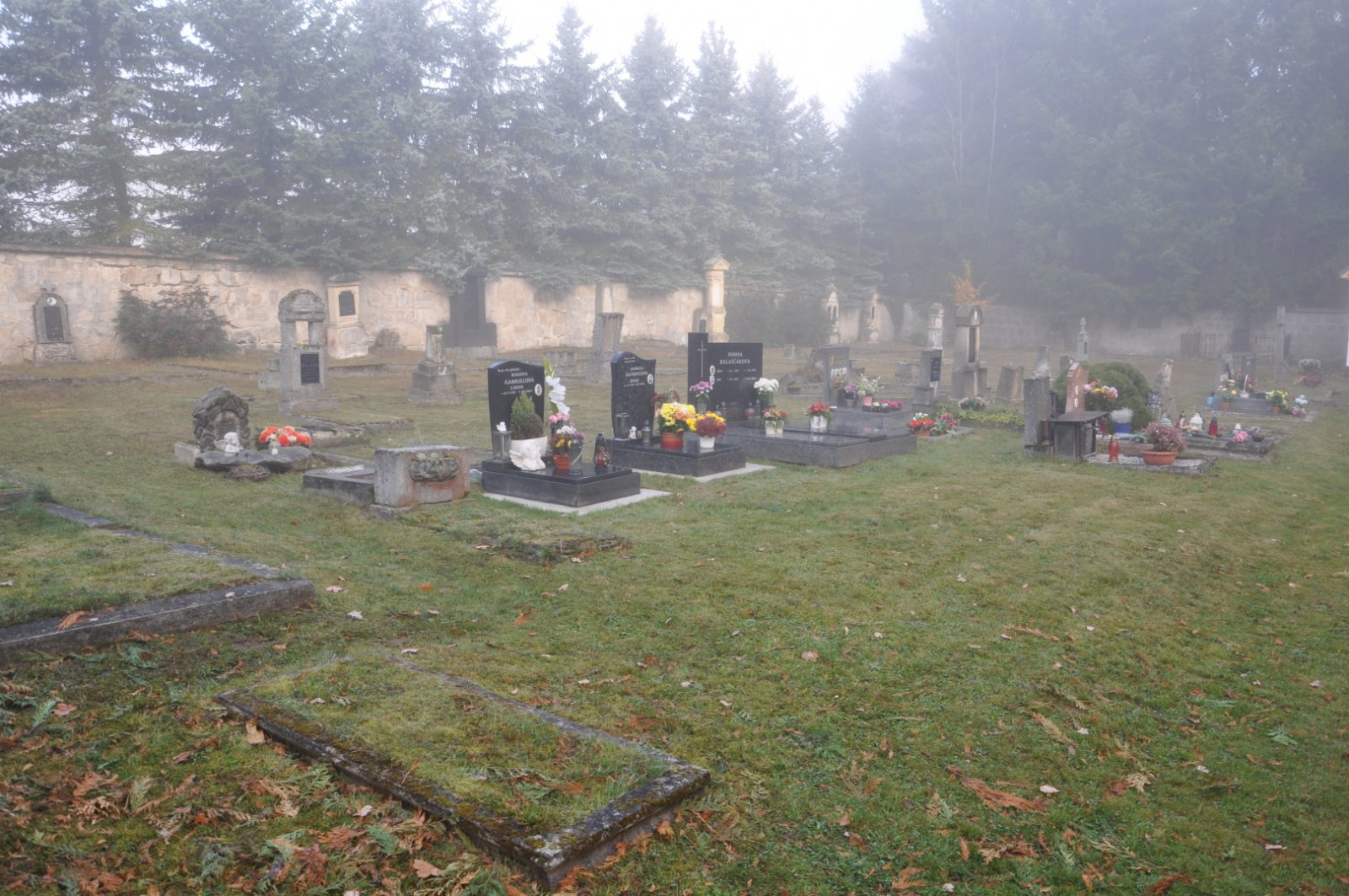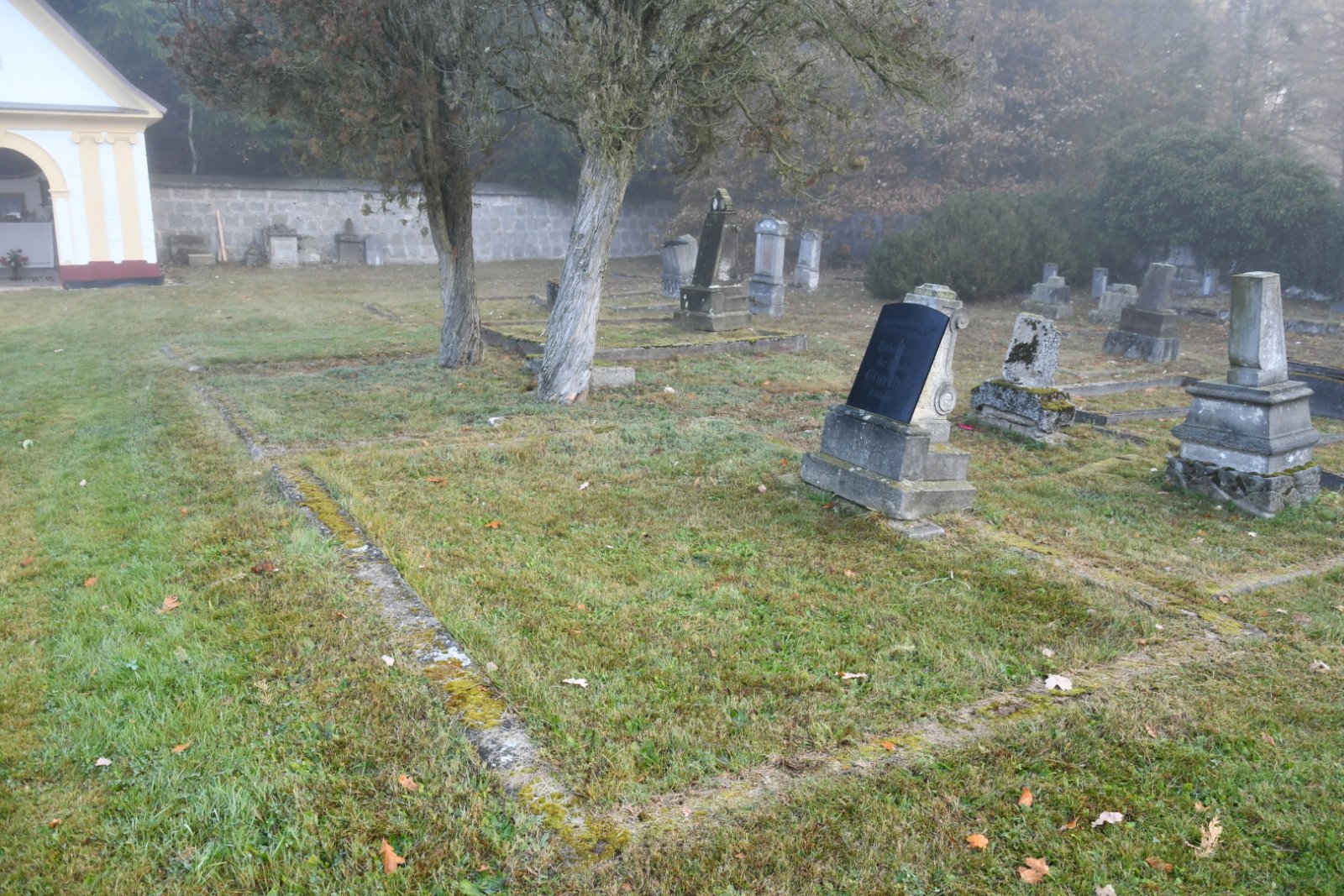 - Vyčištěná plocha hřbitova