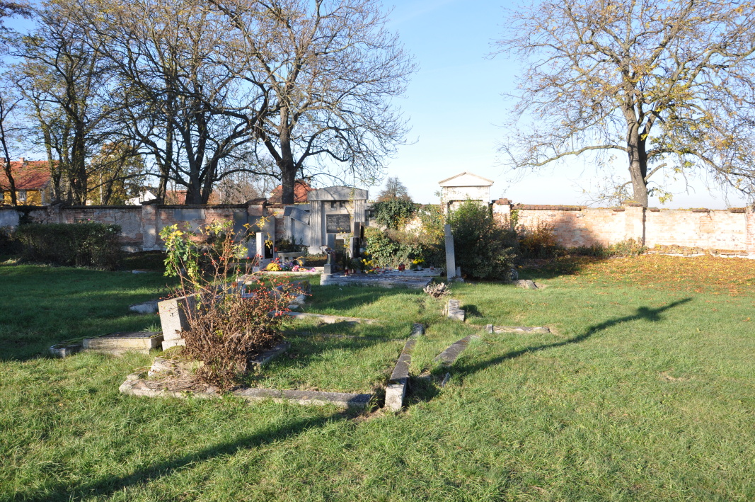 Obecní hřbitov se nachází u silnice směrem na Milčeves. Hřbitov je vymezený hřbitovní zdí ve špatném stavu. Ve špatném stavu je rovněž márnice. Hřbitov je stále fungující. Na ploše je možné najít poměrně velké množství rozpadajících se náhrobků a hrobek, většinou německých a to zejména u zdi.